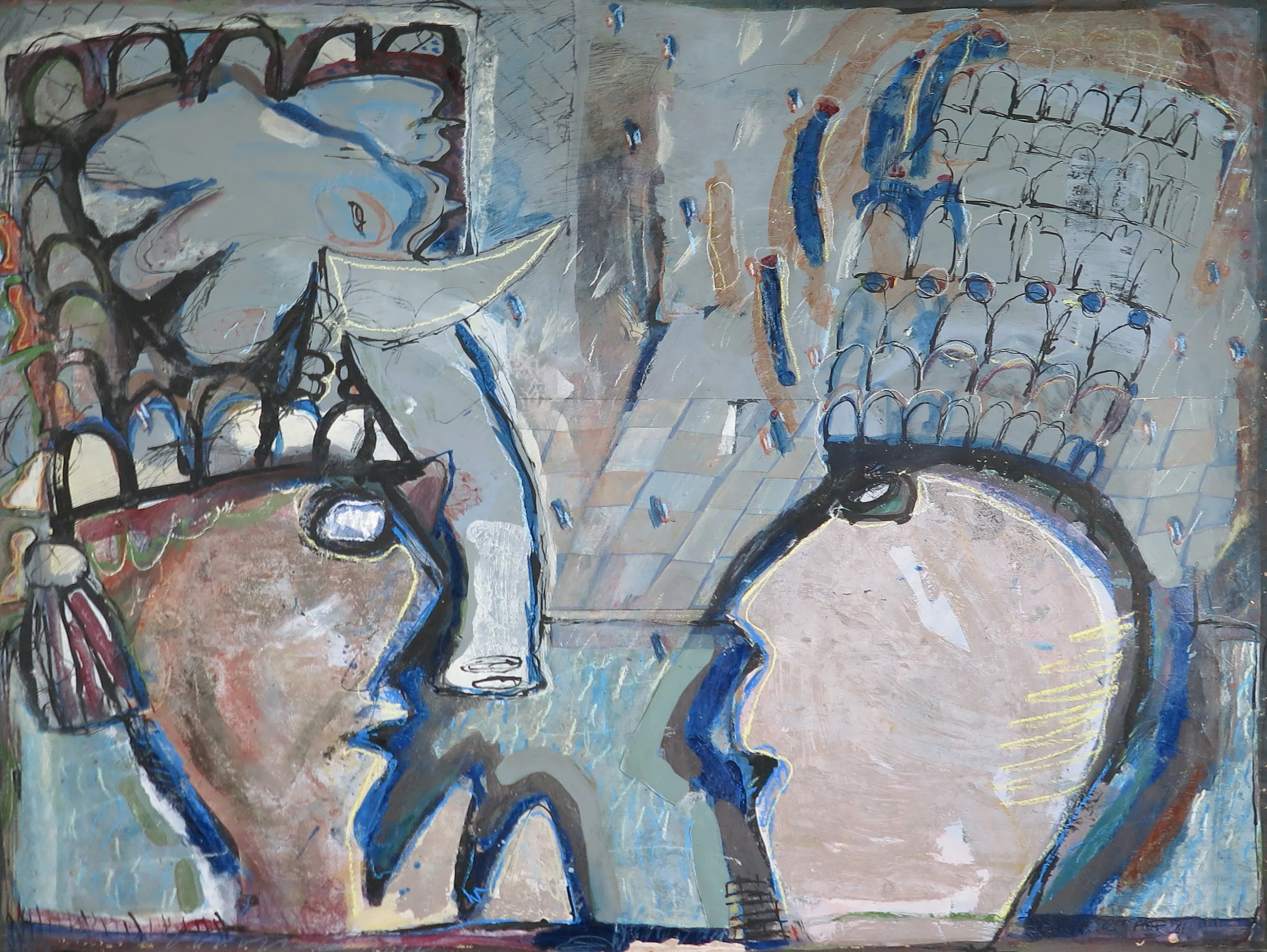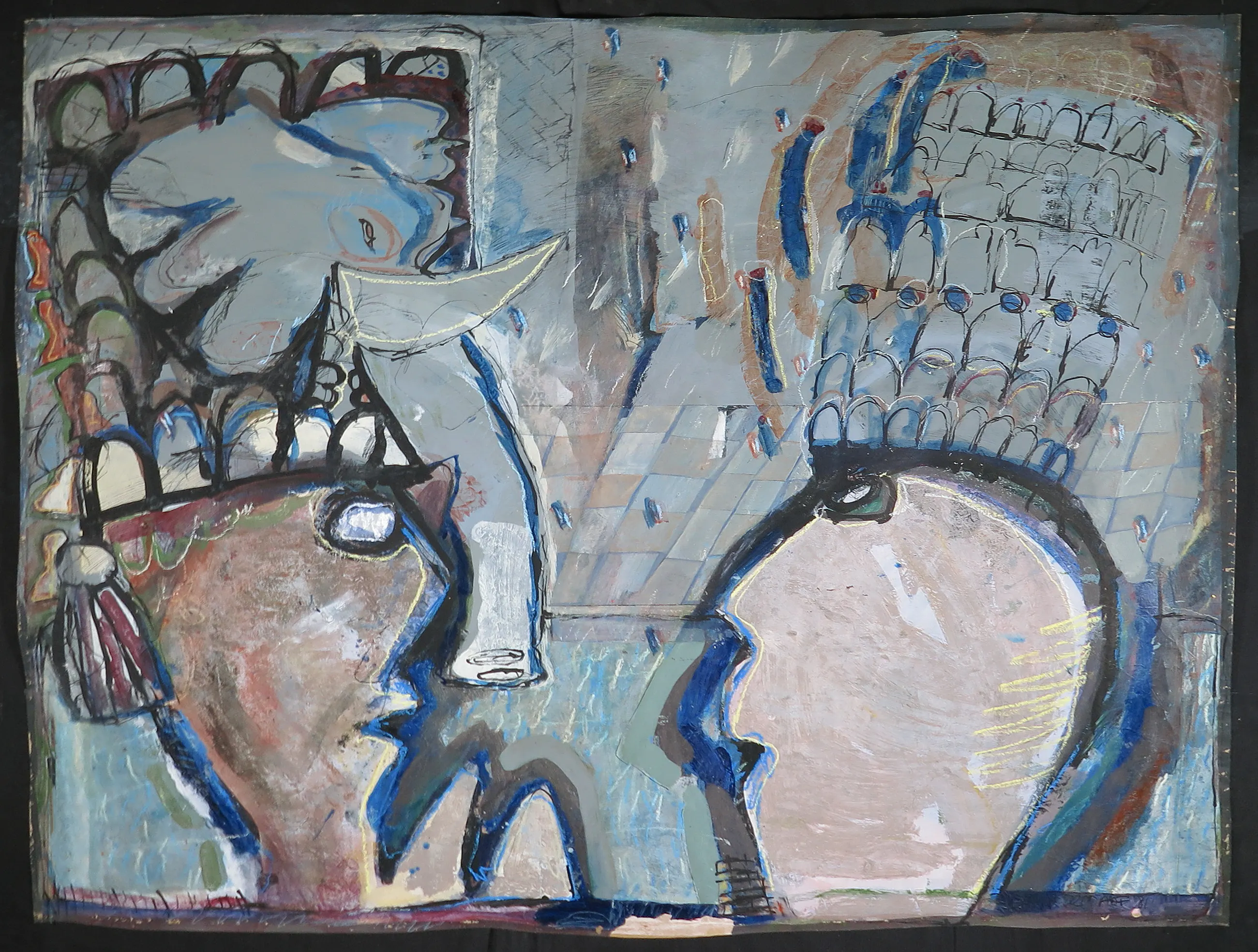 | Let op: Het werk is opgerold bewaard en wordt daarom ook in rol geleverd. Door de manier van bewaring heeft het werk wat bolling en opgekrulde randen. Aan de randen wat afgebladderde verf te zien. Wat papierschade rondom de signatuur. | |||||||||