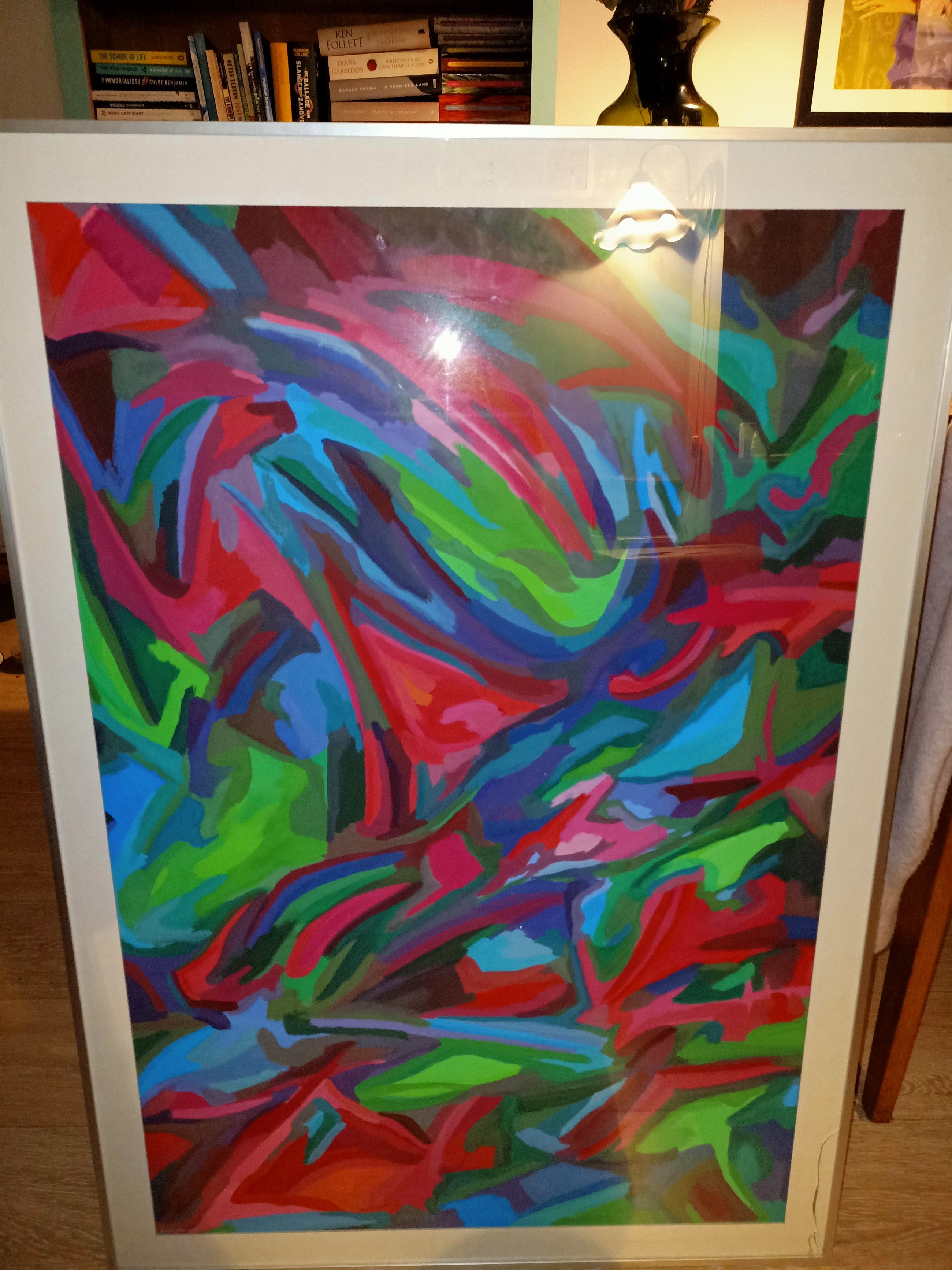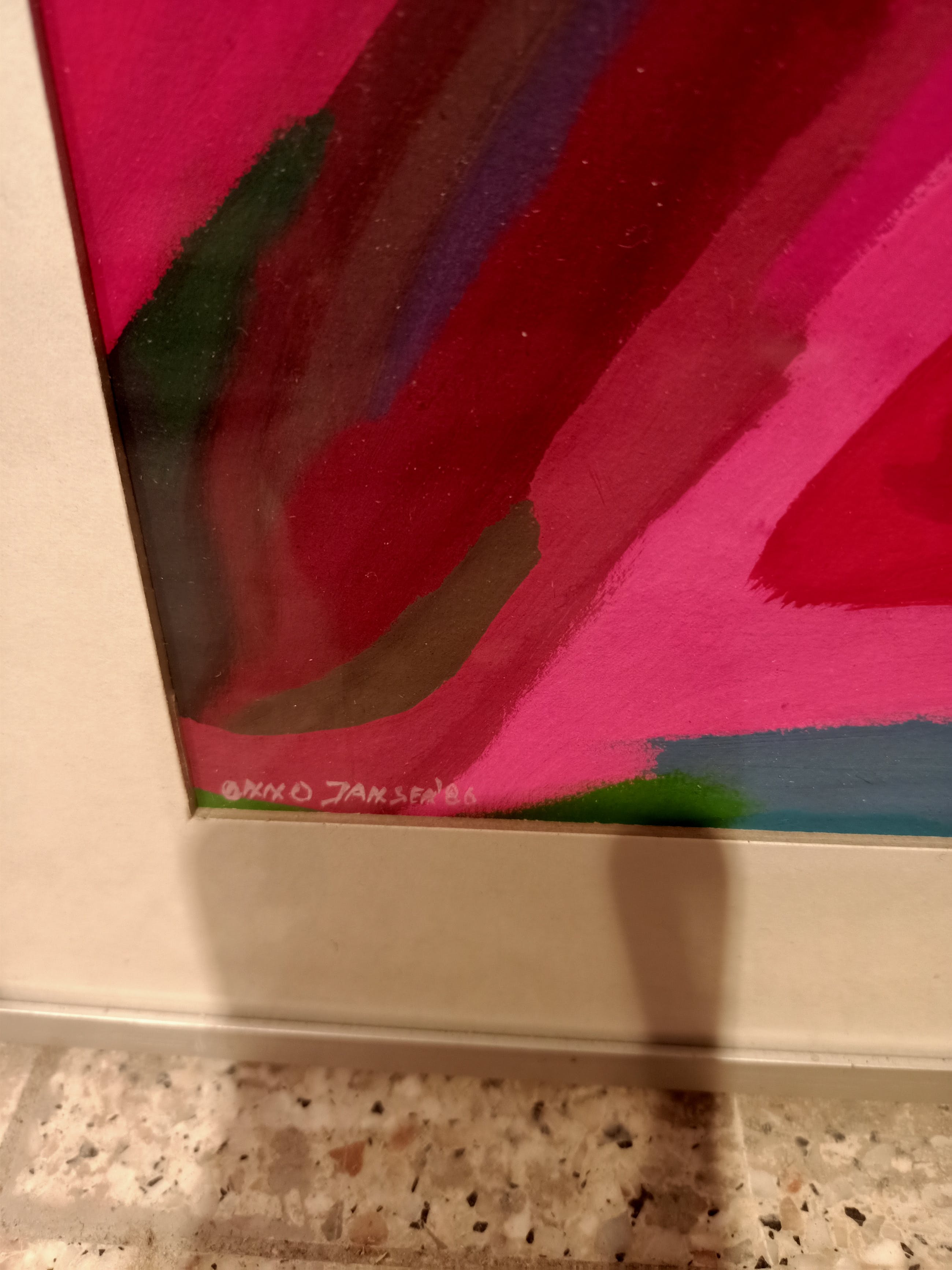 Werk zelf is in zeer goede staat alleen zit er een barstje in het glas.