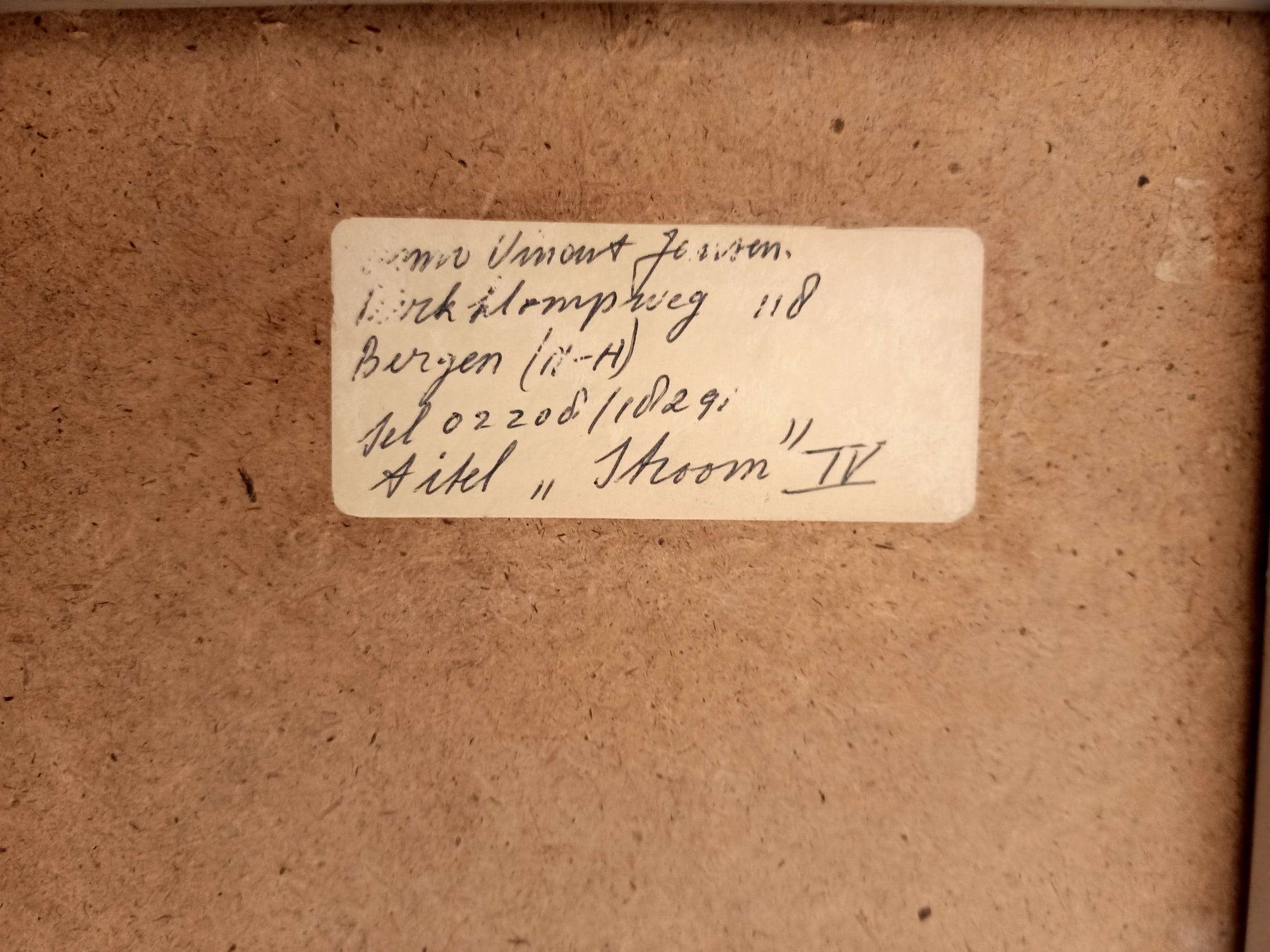 Het werk is af te halen op locatie. Als koper dient u zelf verpakkingsmateriaal mee te nemen. De locatie is: Amsterdam, Nederland