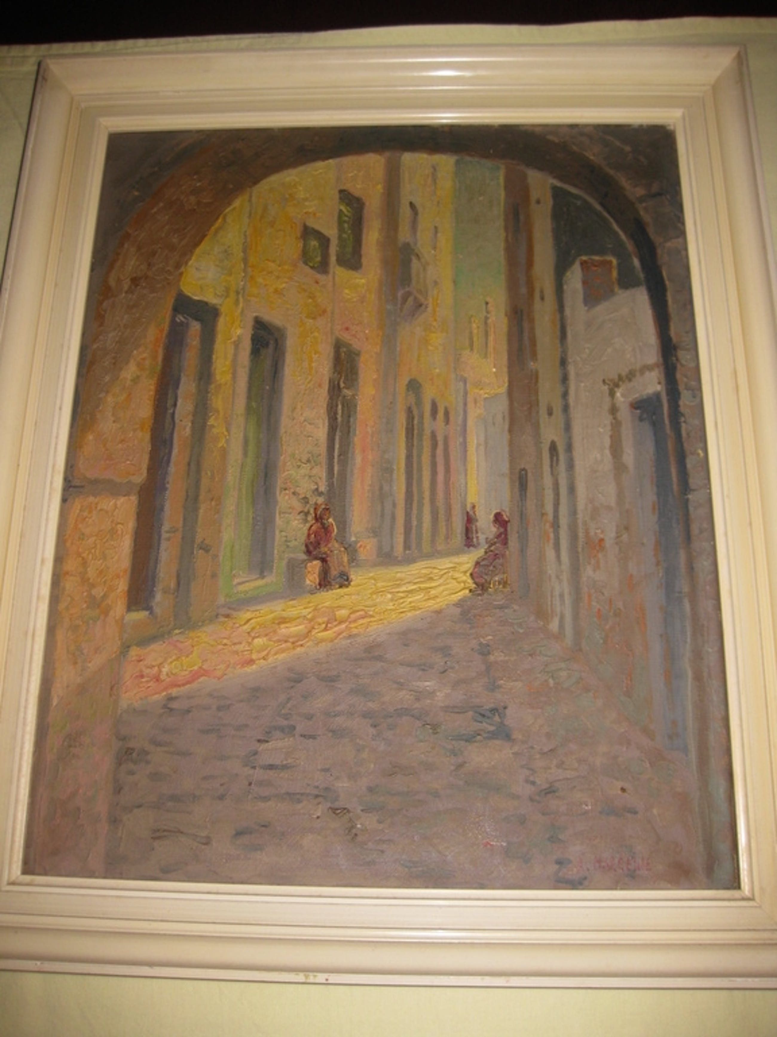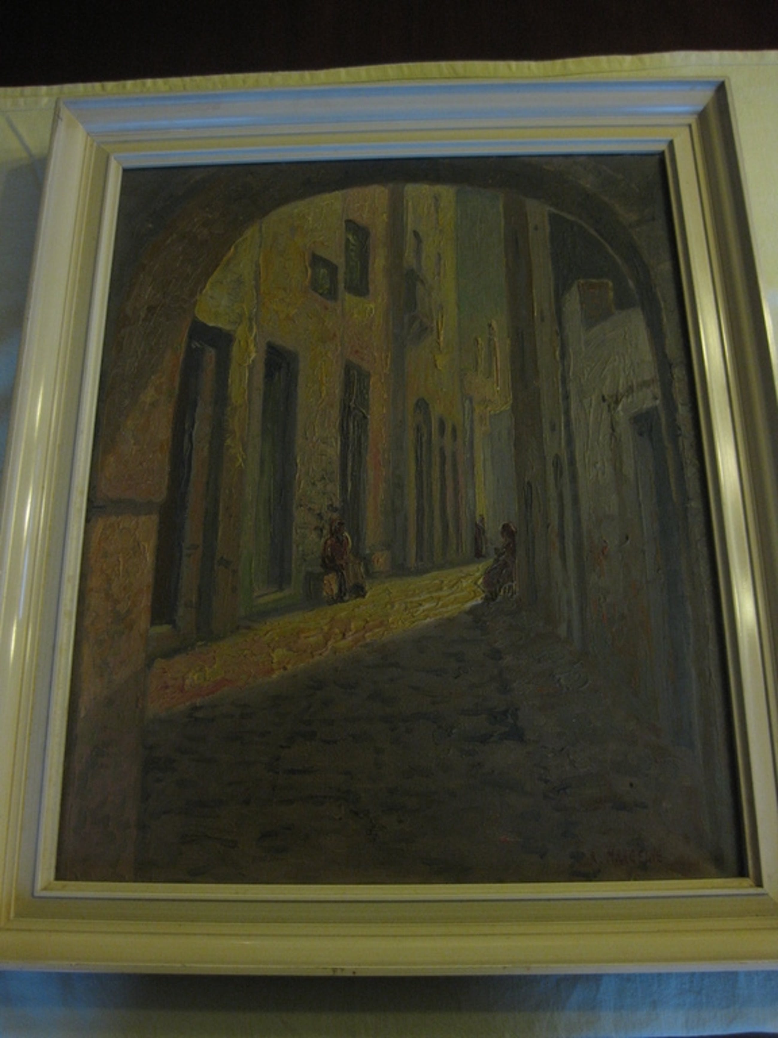 Voor schilderijen en ander ingelijst werk geldt het volgende: bij verzending kan ik geen garanties geven op het heel overkomen van het glas van een lijst, wel zal ik mijn uiterste best doen het werk zo goed mogeljik te verpakken. Kleine gebreken aan de lijst in de vorm van stootplekjes en krassen vermeld ik niet.