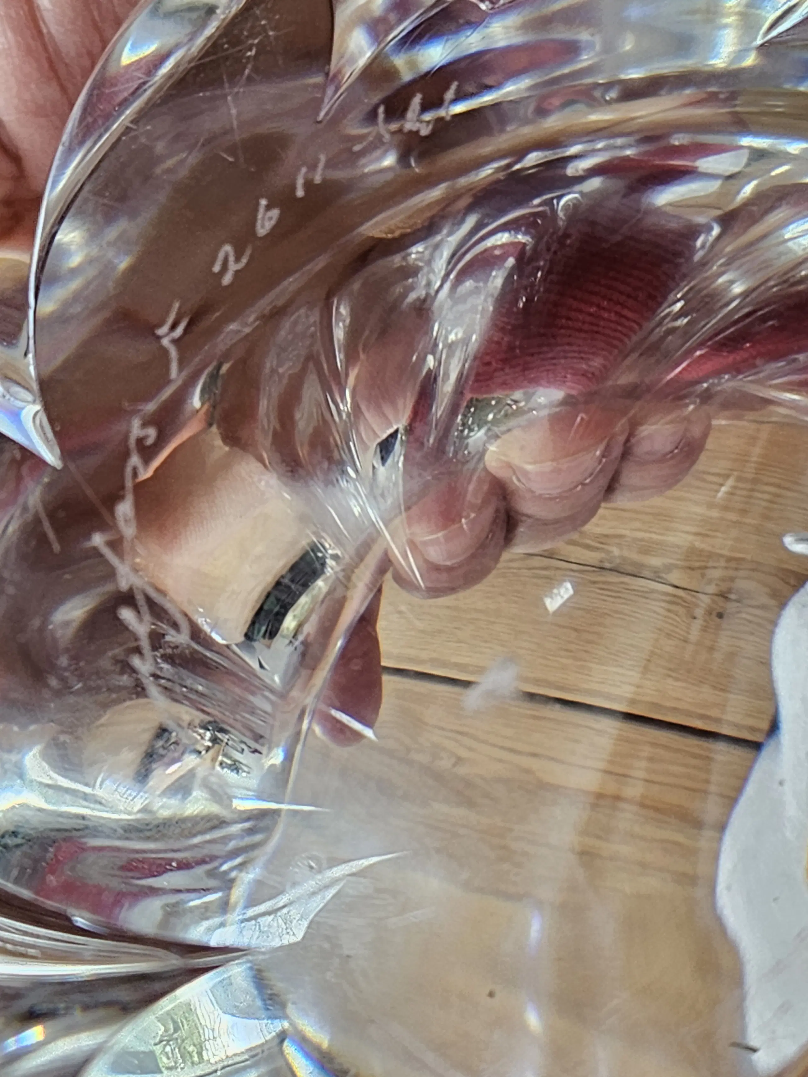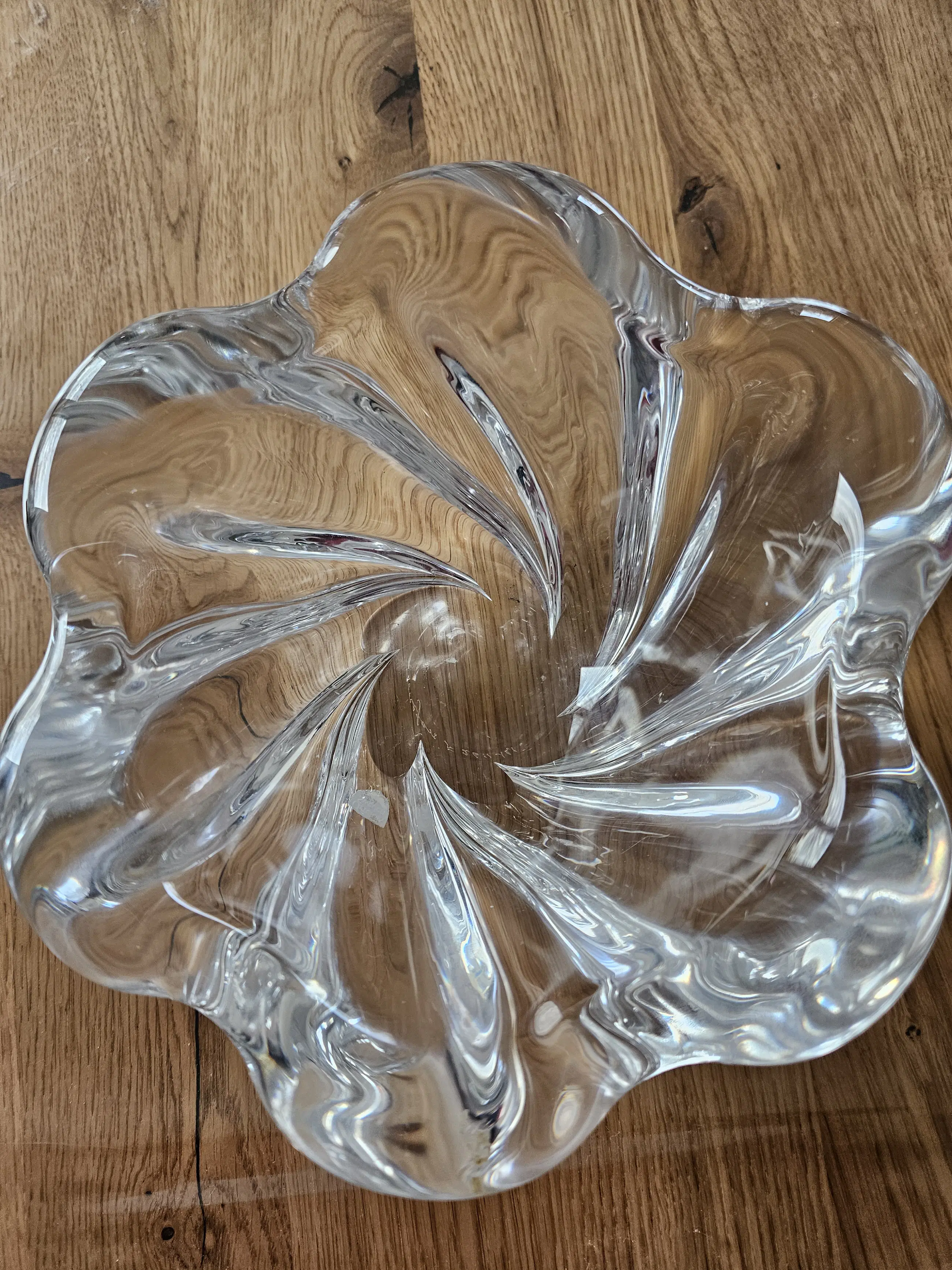 Mooie bonbonschaal in zeer goede staat. Onderaan gegraveerd en ook sticker aanwezig .