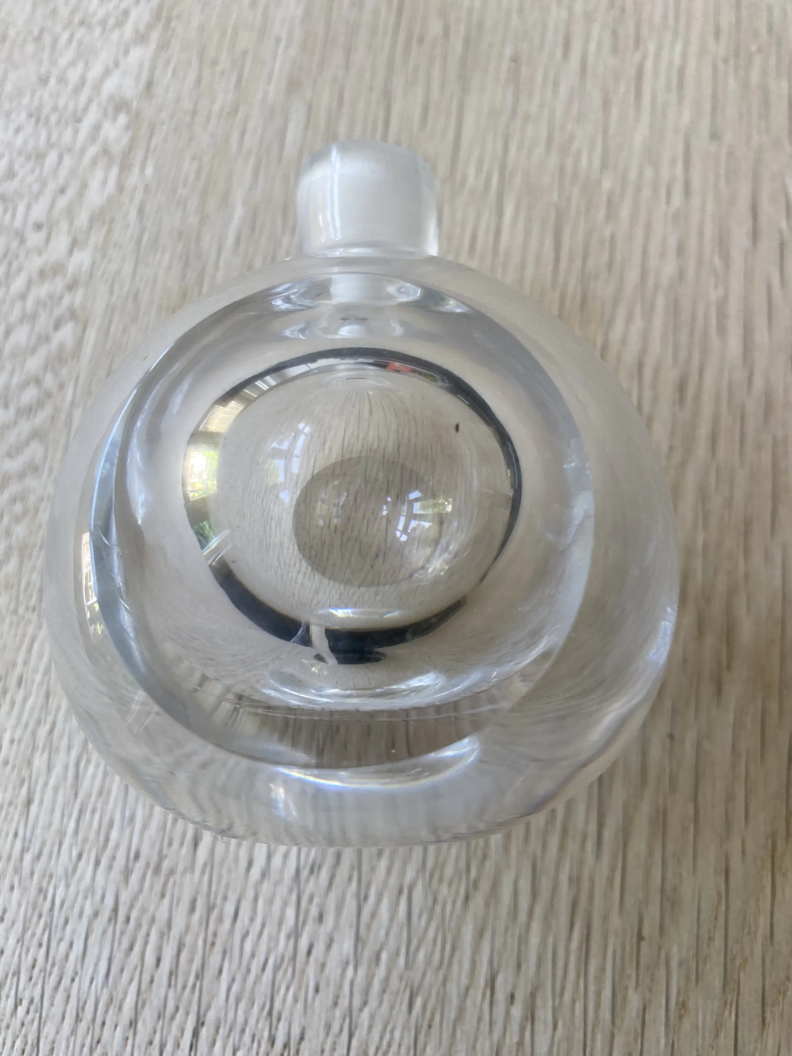 Heel mooi solifleur vaasje van helder kristal. Aan twee zijden afgeplat wat een speciaal optisch effect geeft. Met matglazen hals. Op onderzijde gesigneerd Orrefors. In prima conditie.