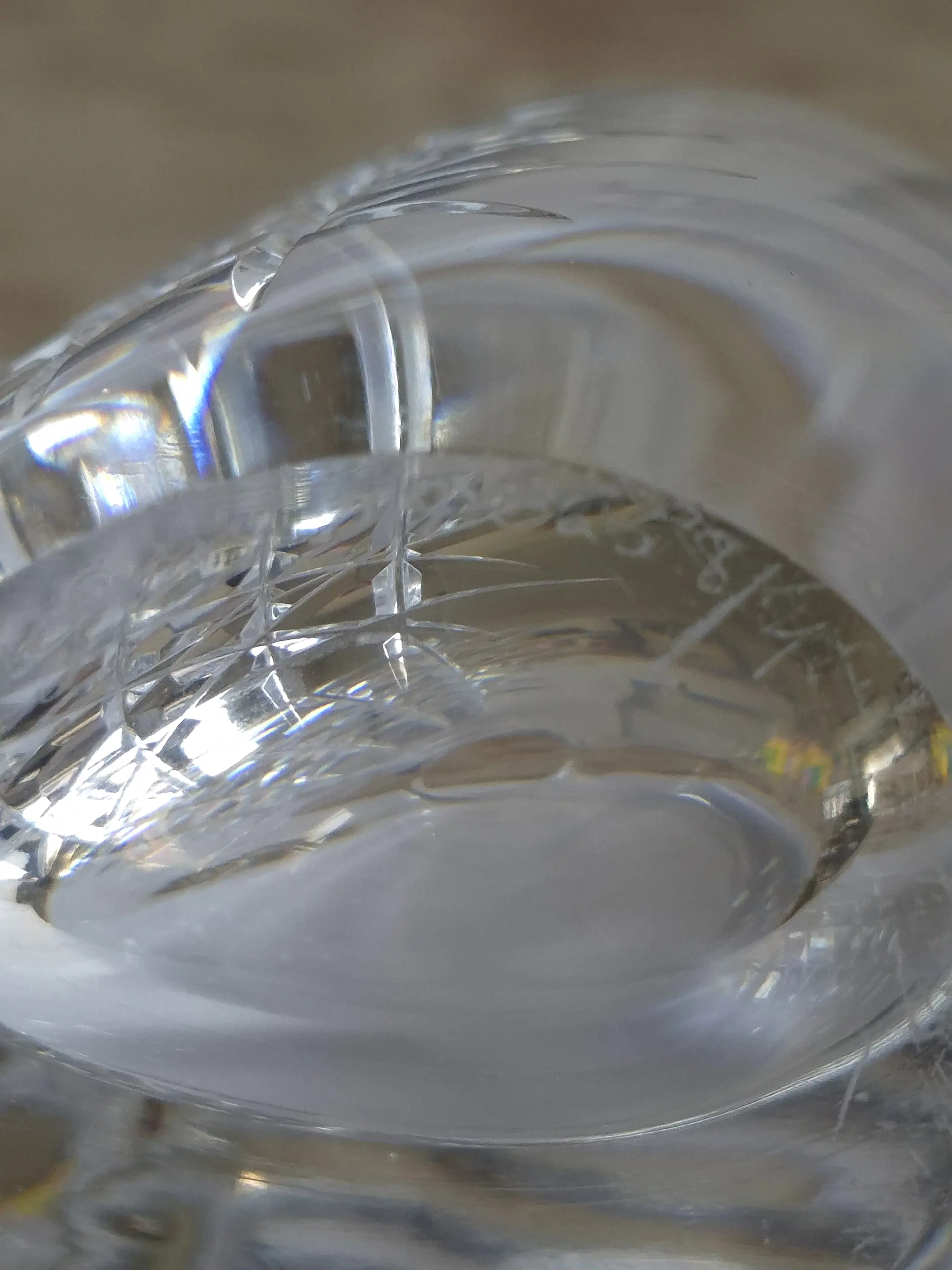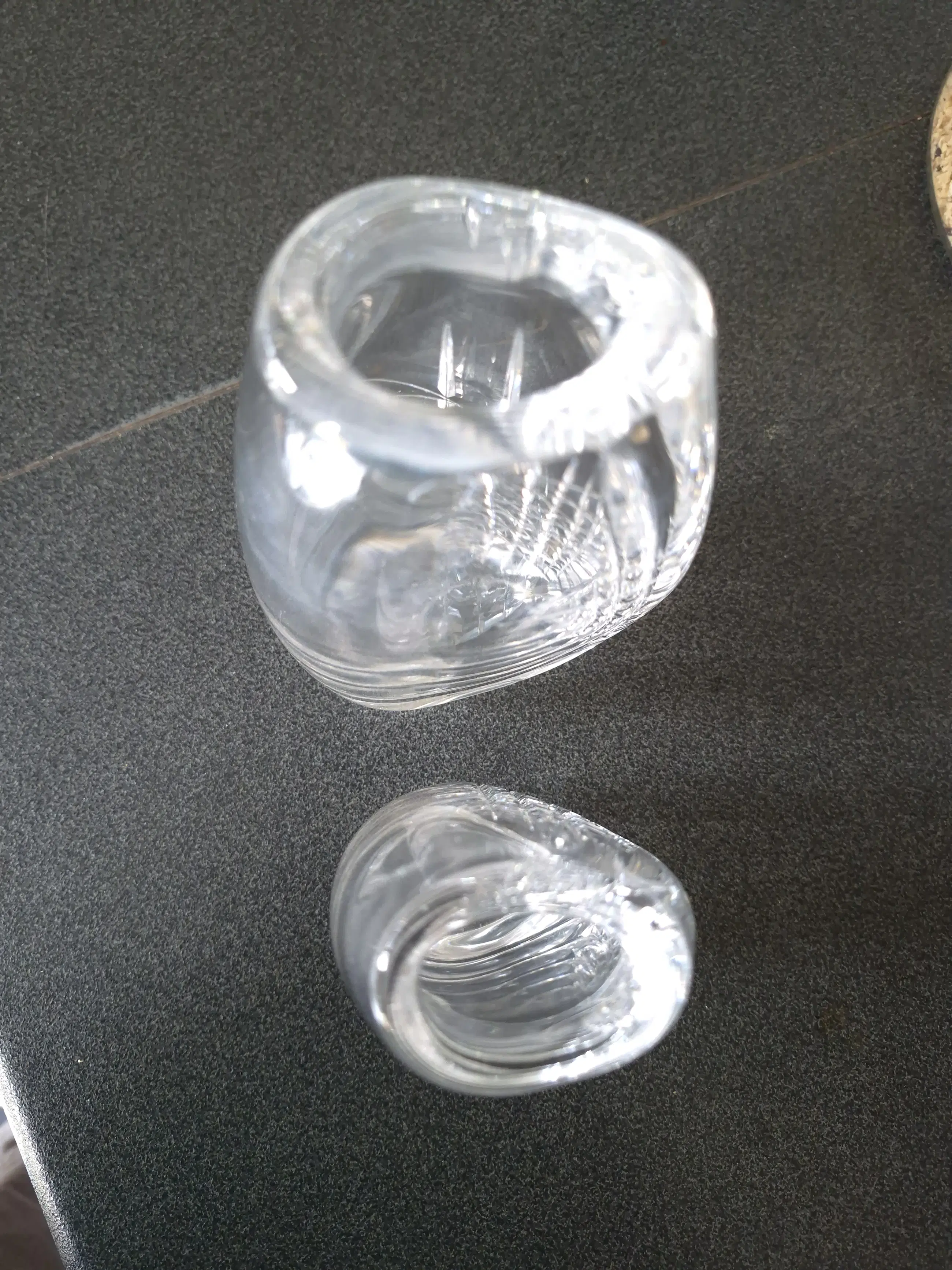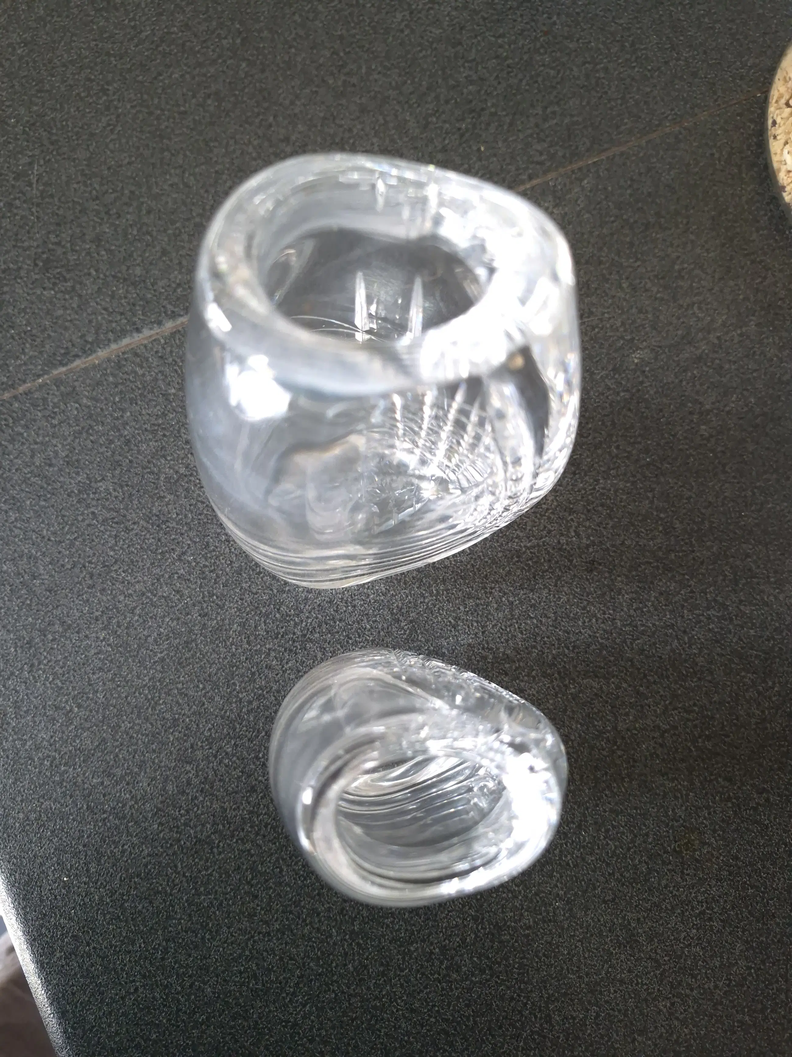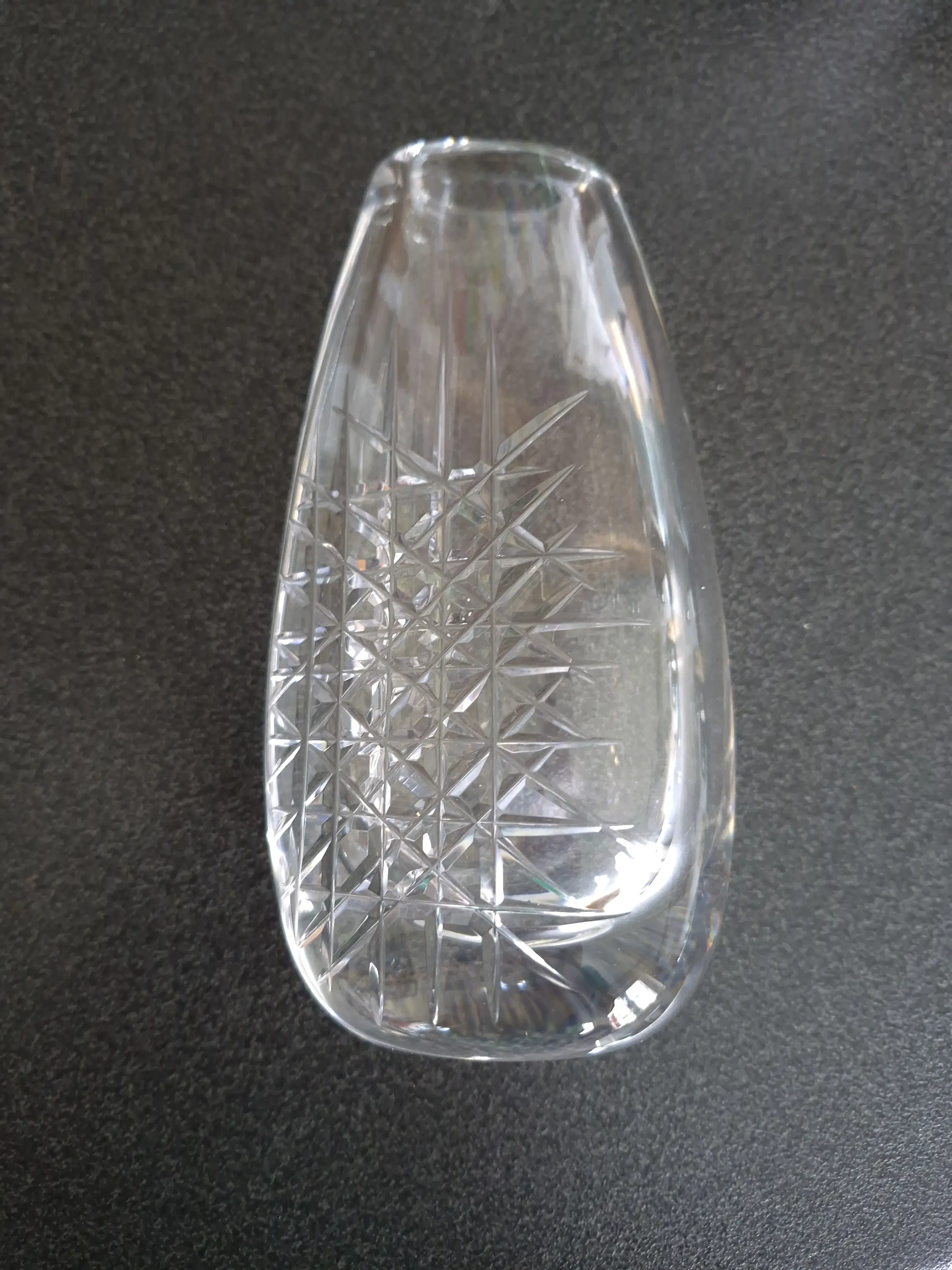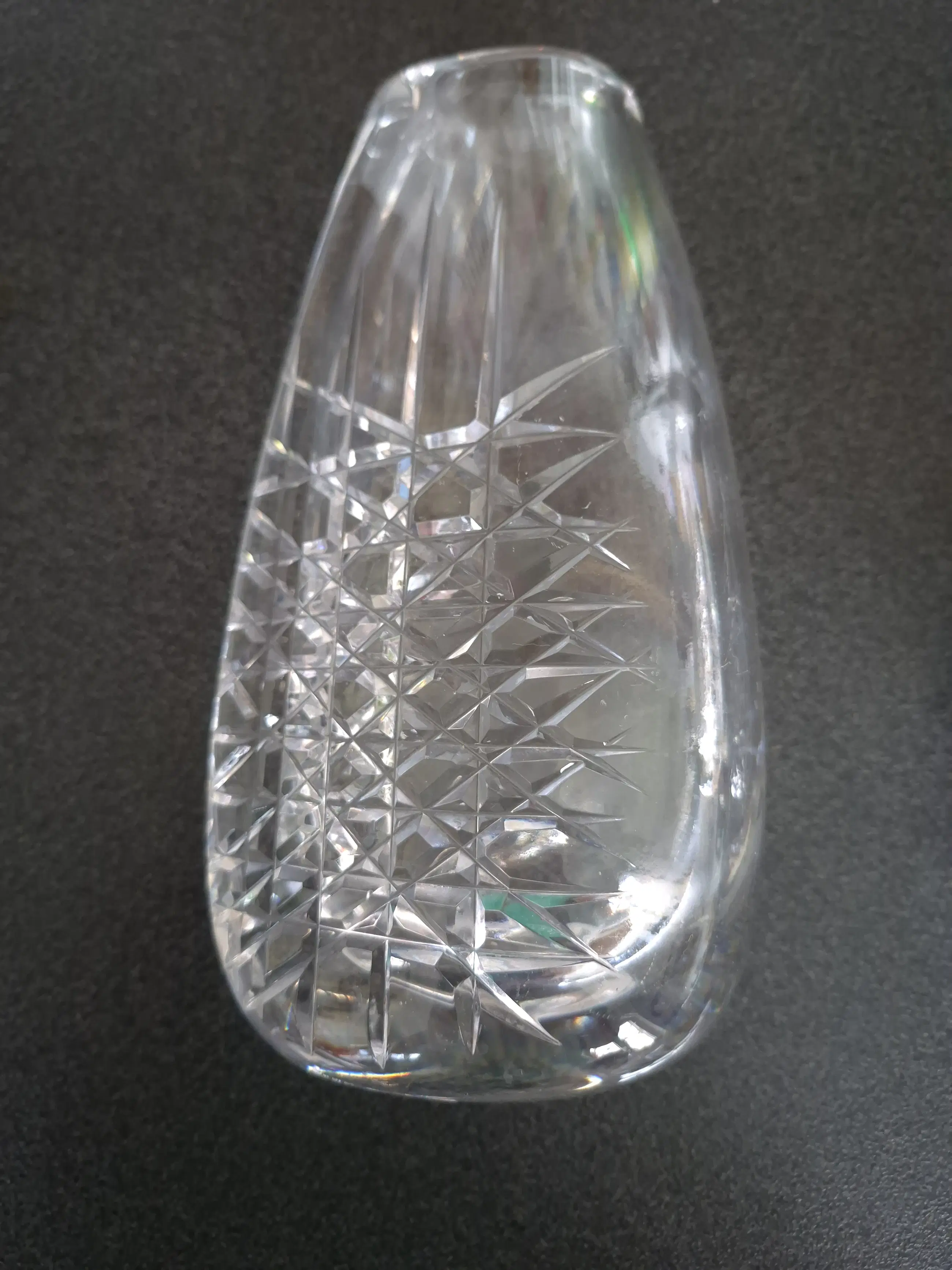 Twee mooie kristallzn vazen van de Zweedse glasfabriek Orrefors. De vazen zijn ontworpen door Ingeborg Lundin. De grootste vaas is 19cm hoog en10 cm breed. Beide vazen zijn gemerktaan de onderzijde Orrefors DA 3658/4