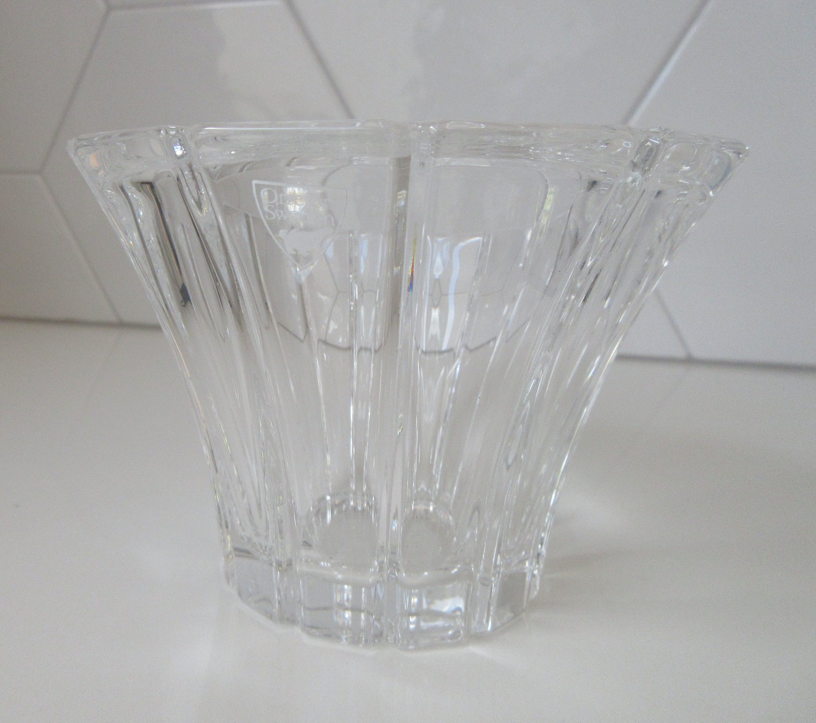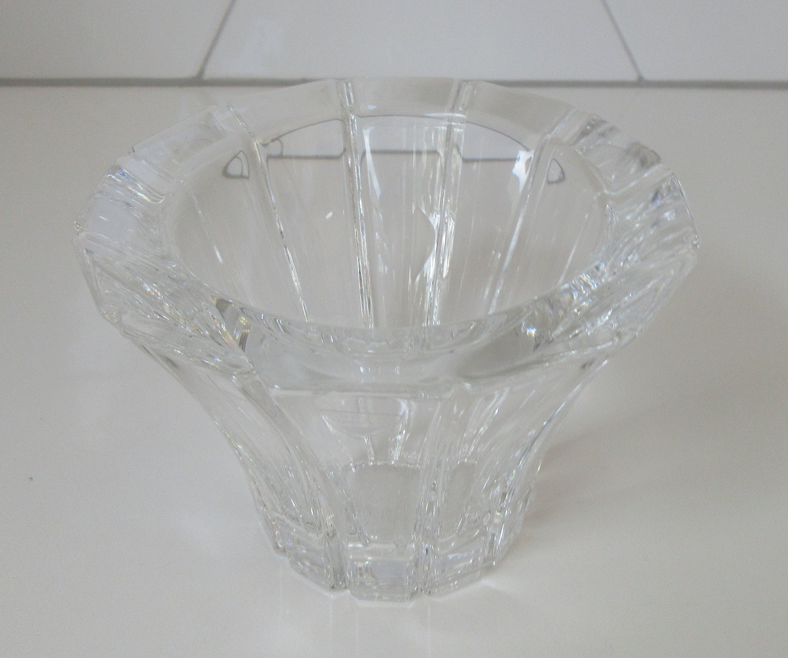 Geslepen schaaltje of waxinelichthouder model en ontwerper onbekend. Gemerkt met sticker en etsmerk onderaan de bodem.