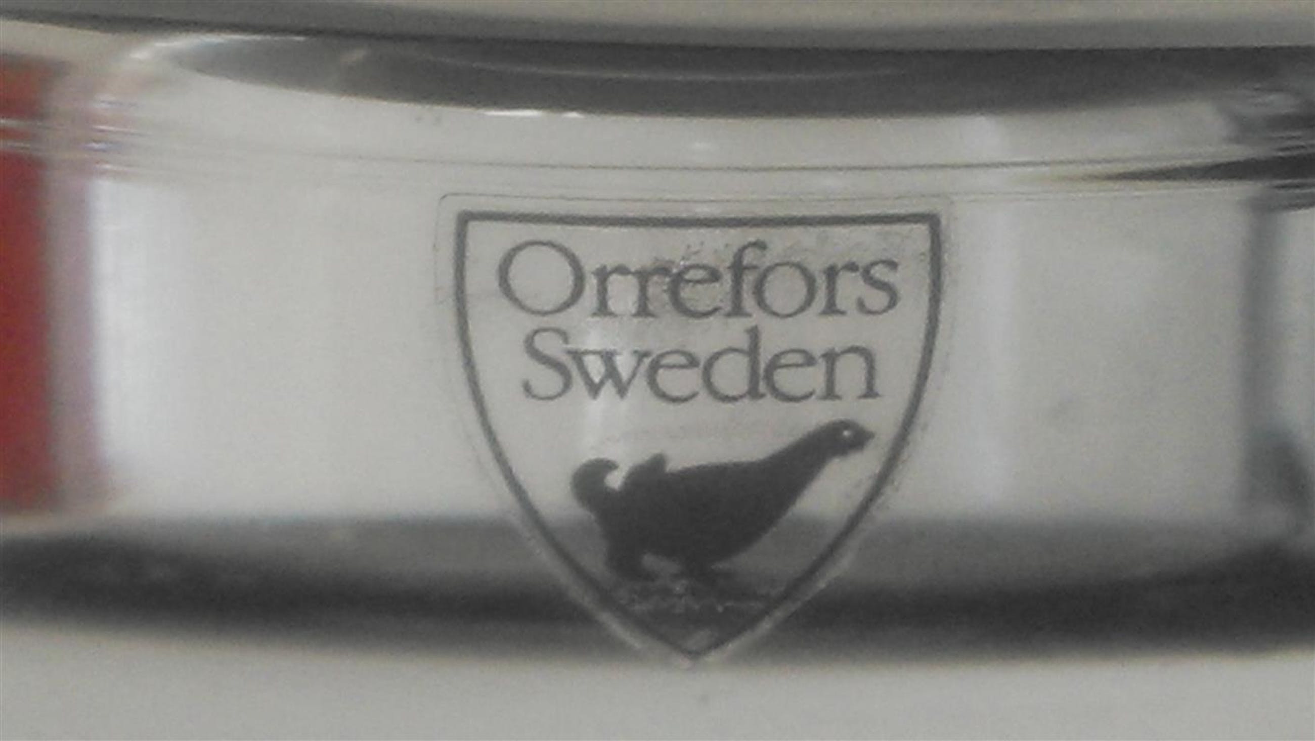Mooi helder eenvoudig strak ontwerp van Orrefors gemerkt en gegraveerd in de bodem
