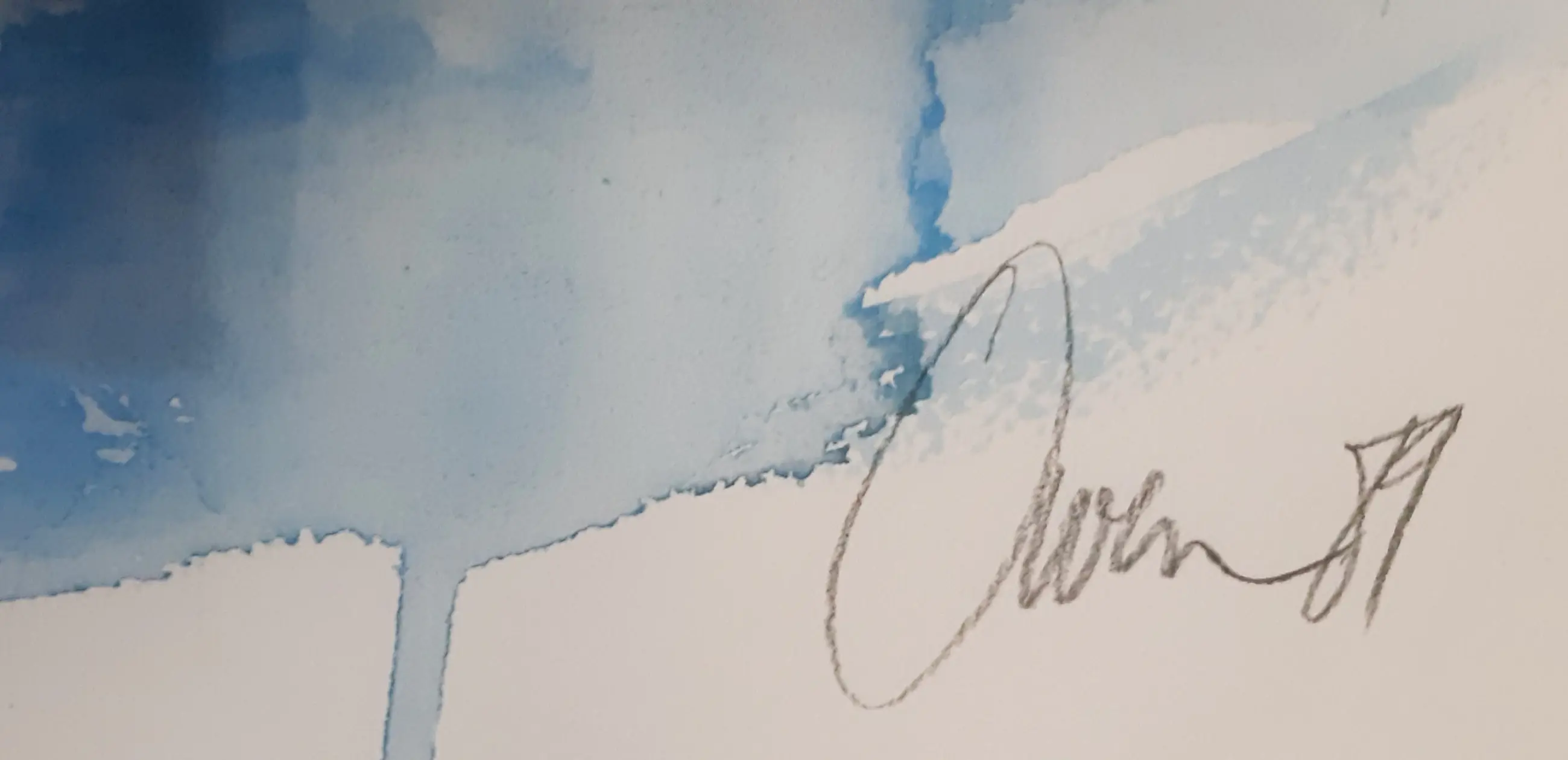 Fraaie zeefdruk van Ortho Owen 'Flying Dutchman uit 1989 Handgesigneerd en genummerd Mooi gelijst in zwarte lijst met passepartout
