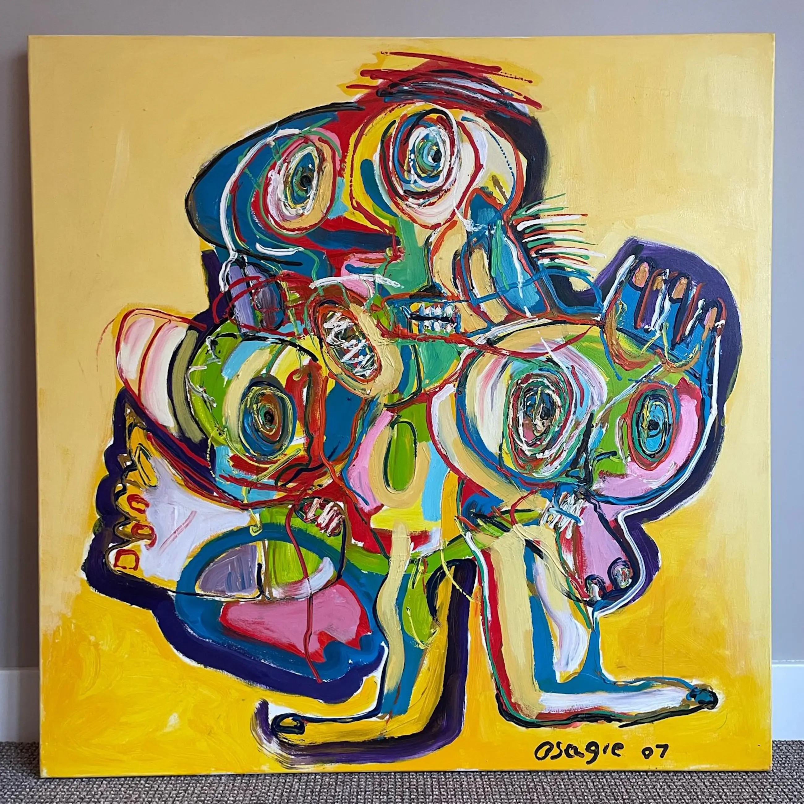 Modern figuratief kleurrijk werk van de kunstenaar Osagie Edomwandagbon.
