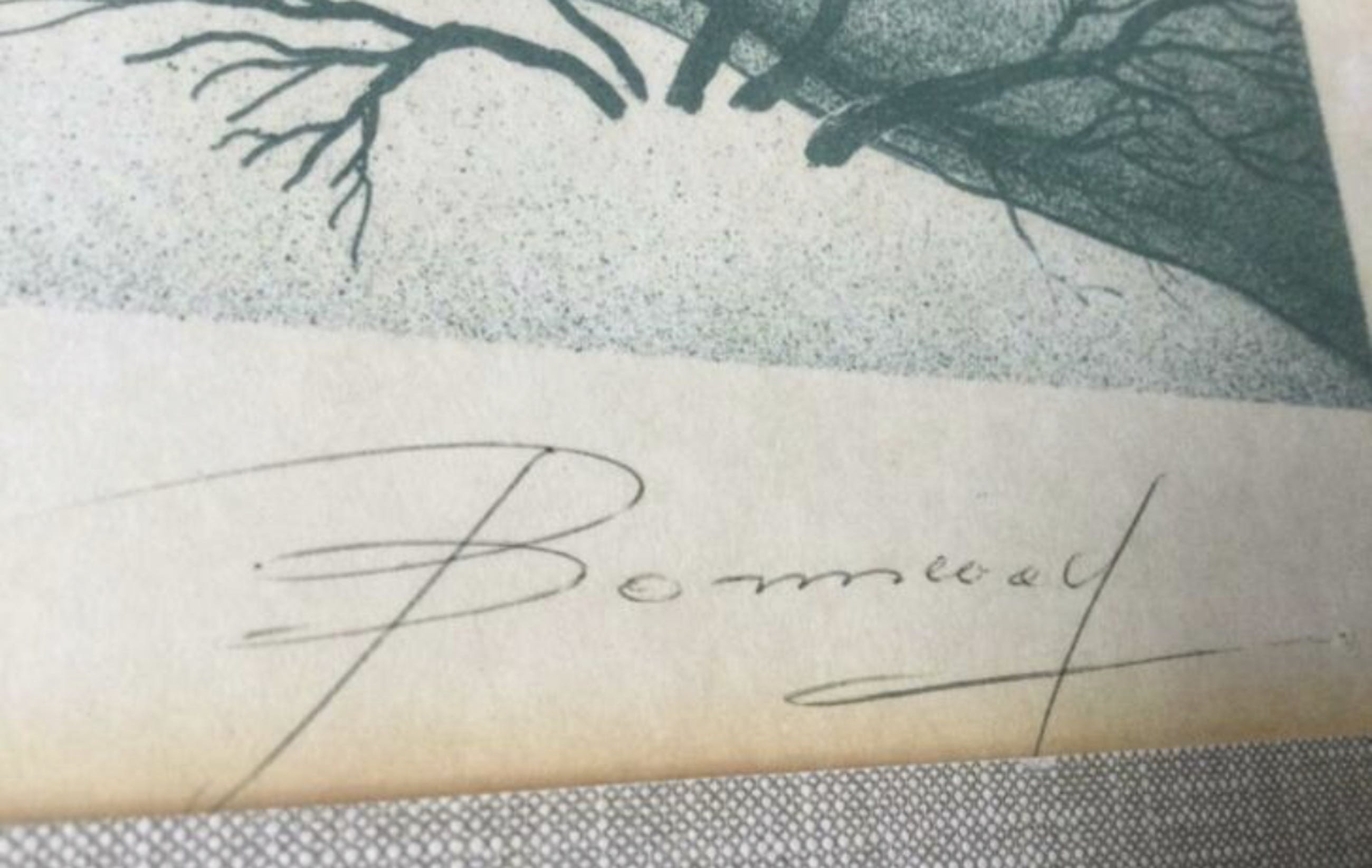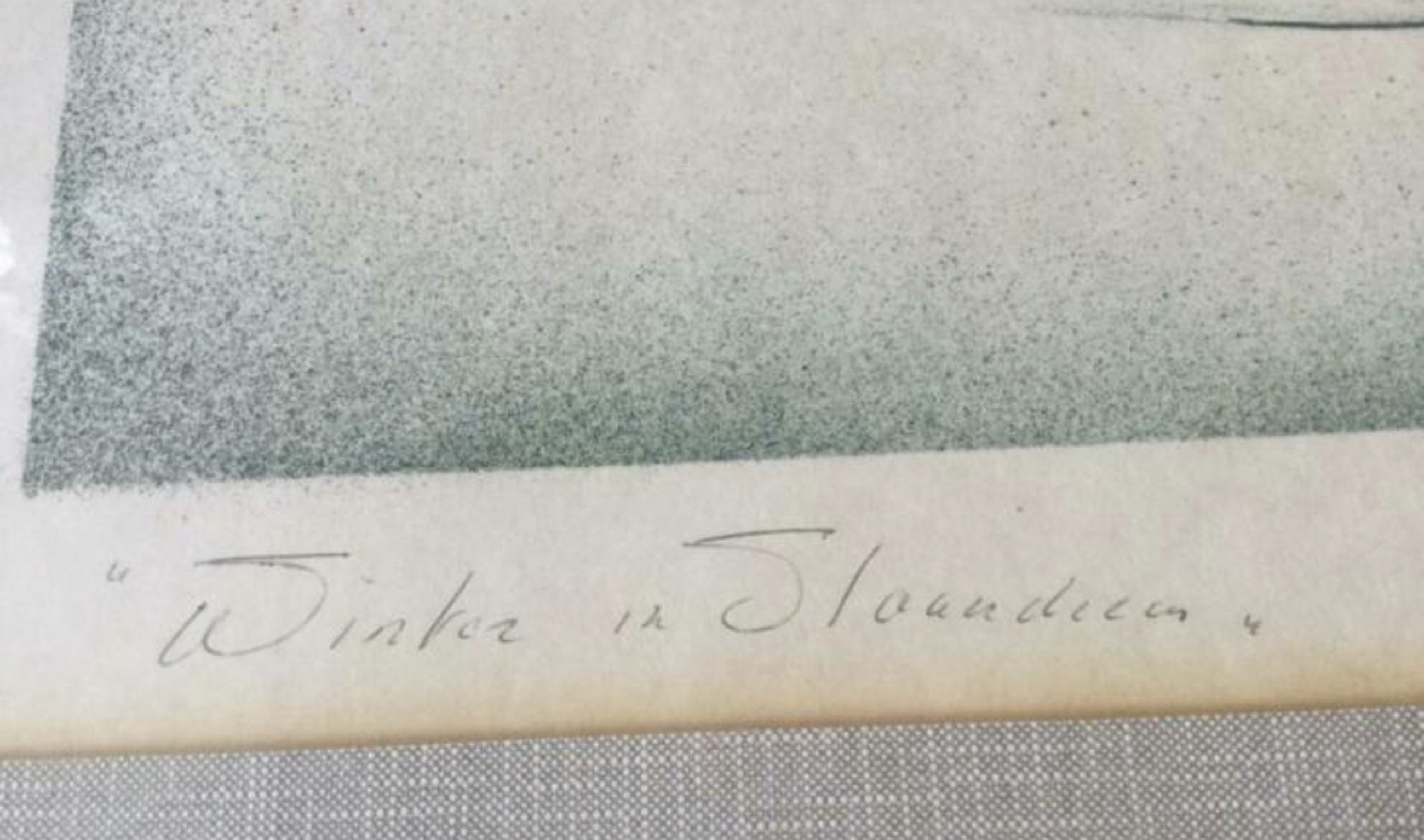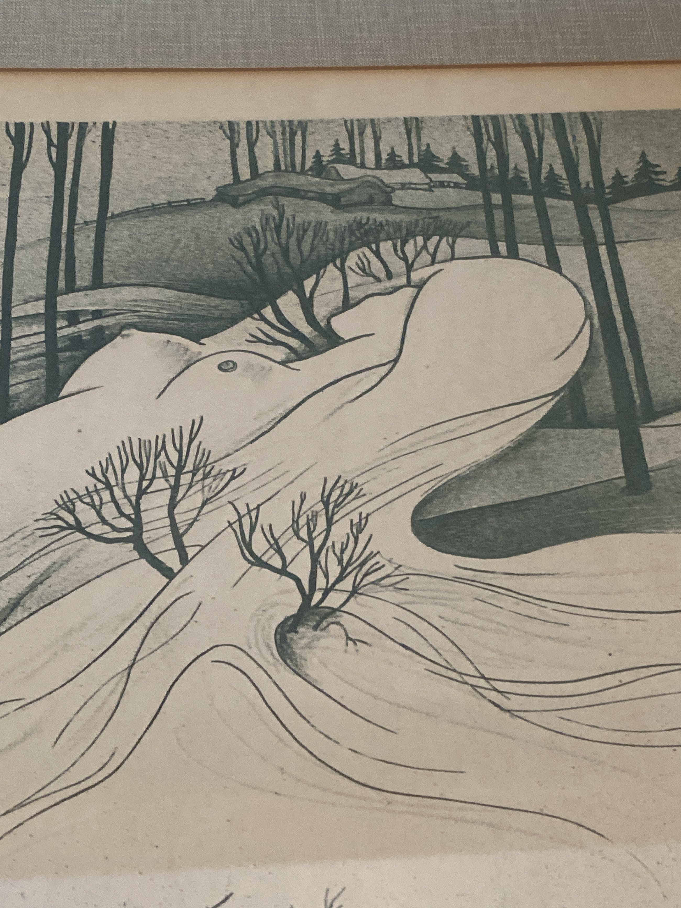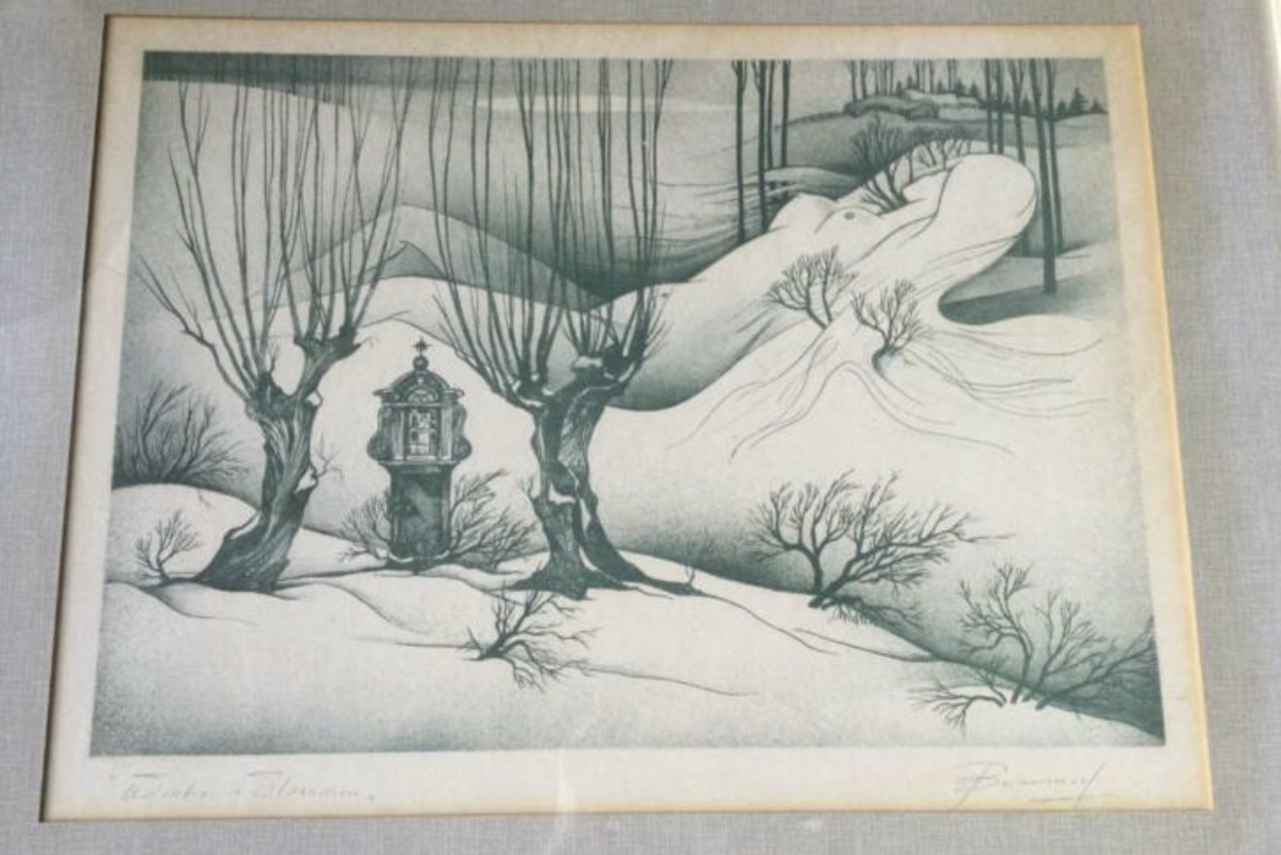 Etching of a winter seen in Flandre - Belgium with a visible naked woman in the landscape.