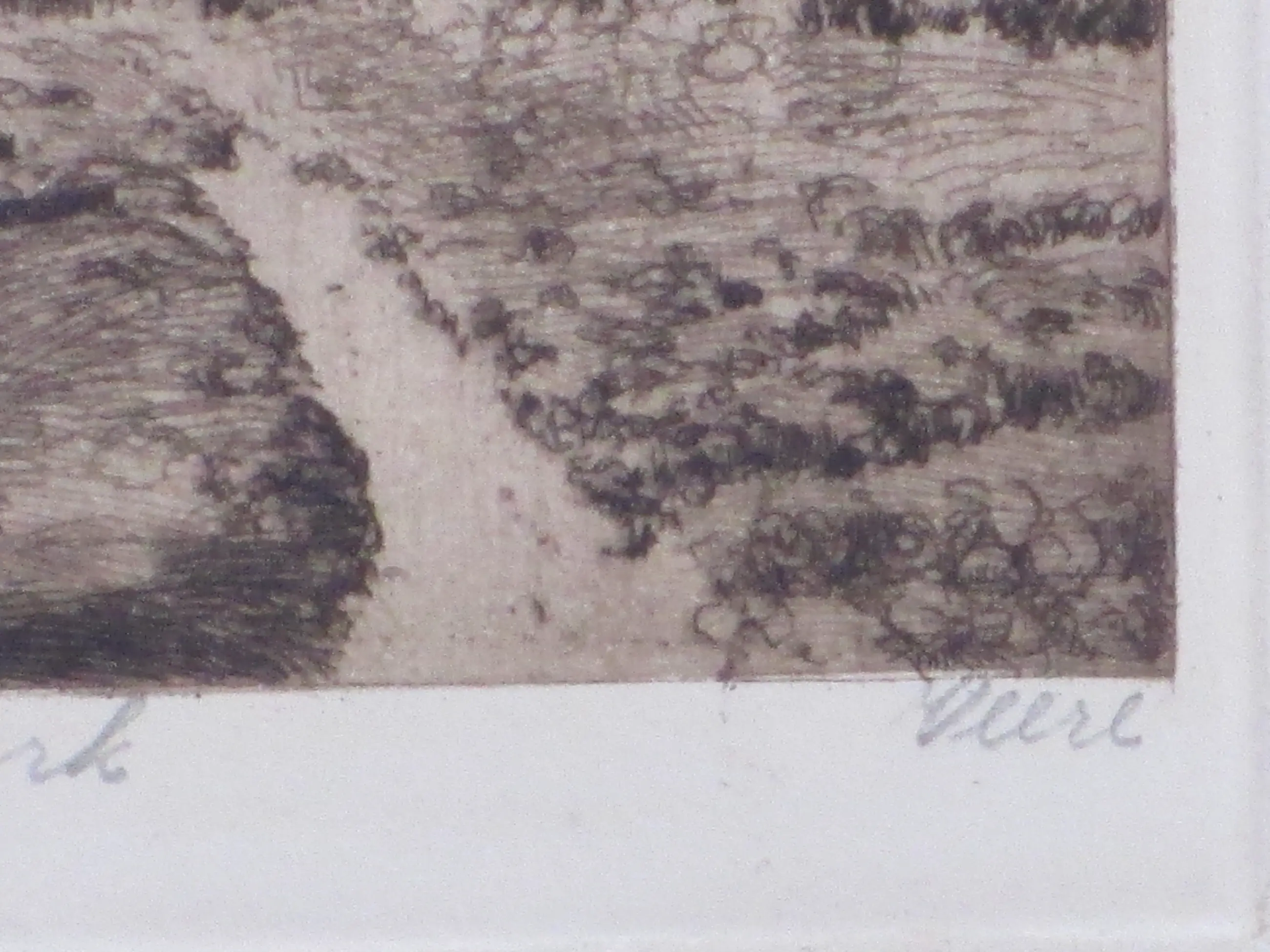Ets heeft taperestanten op randen achterzijde van eerder passepartout.