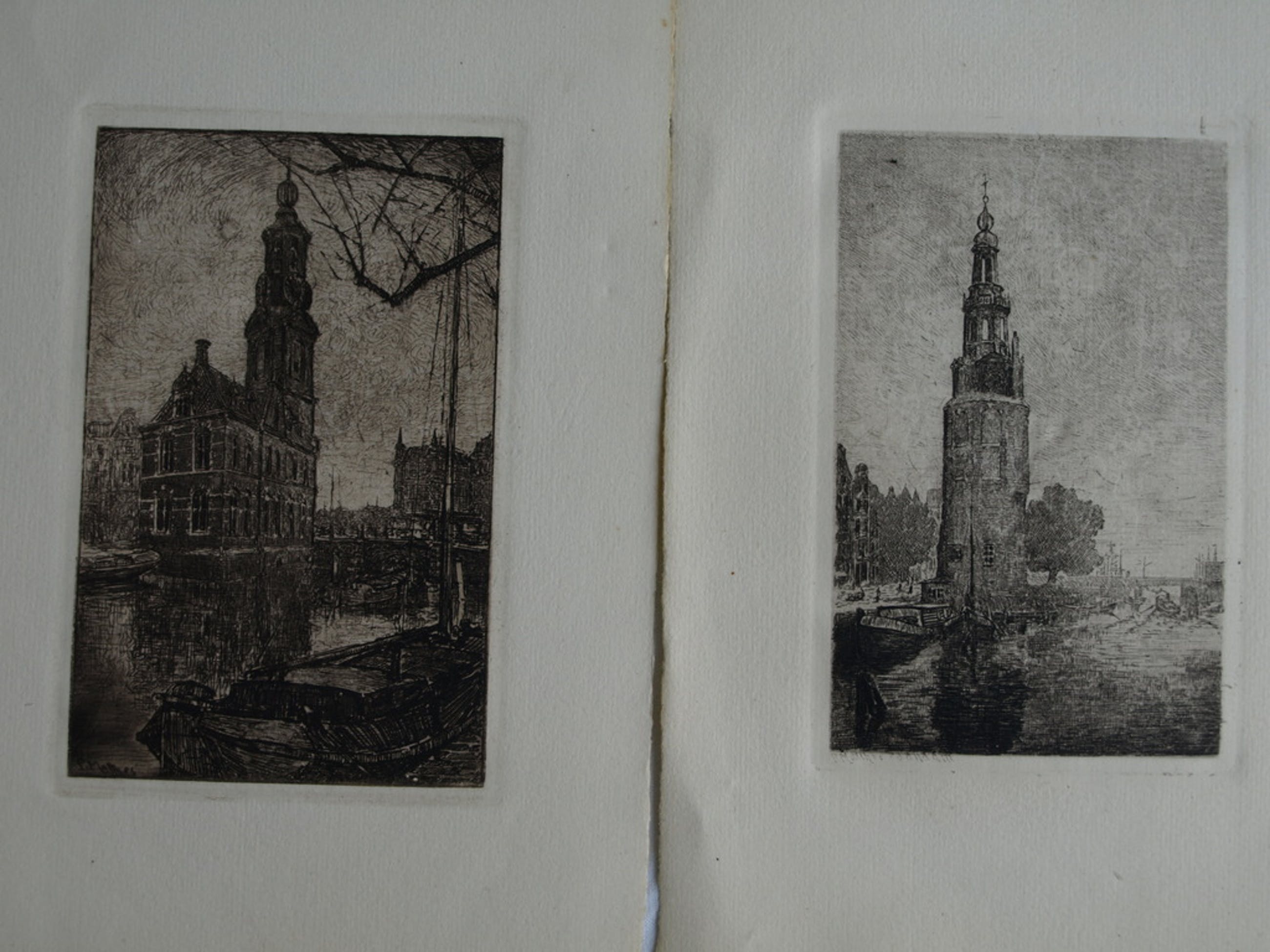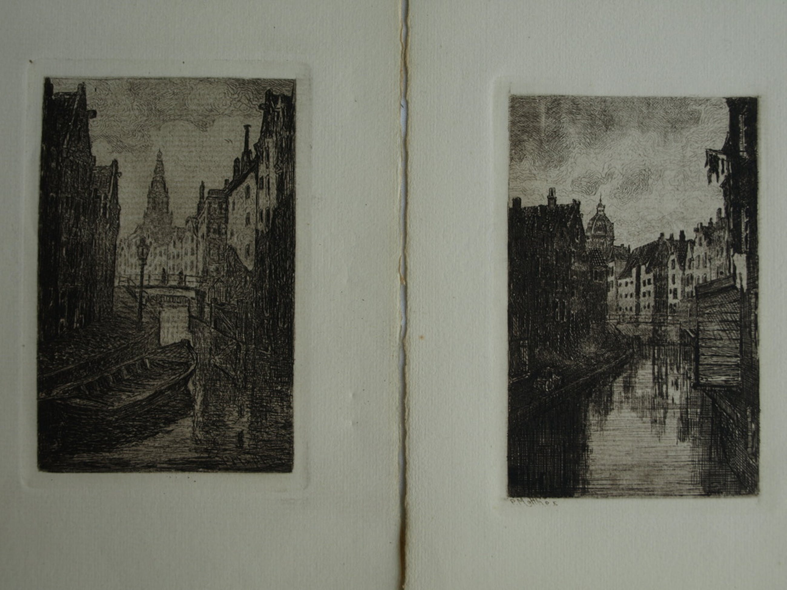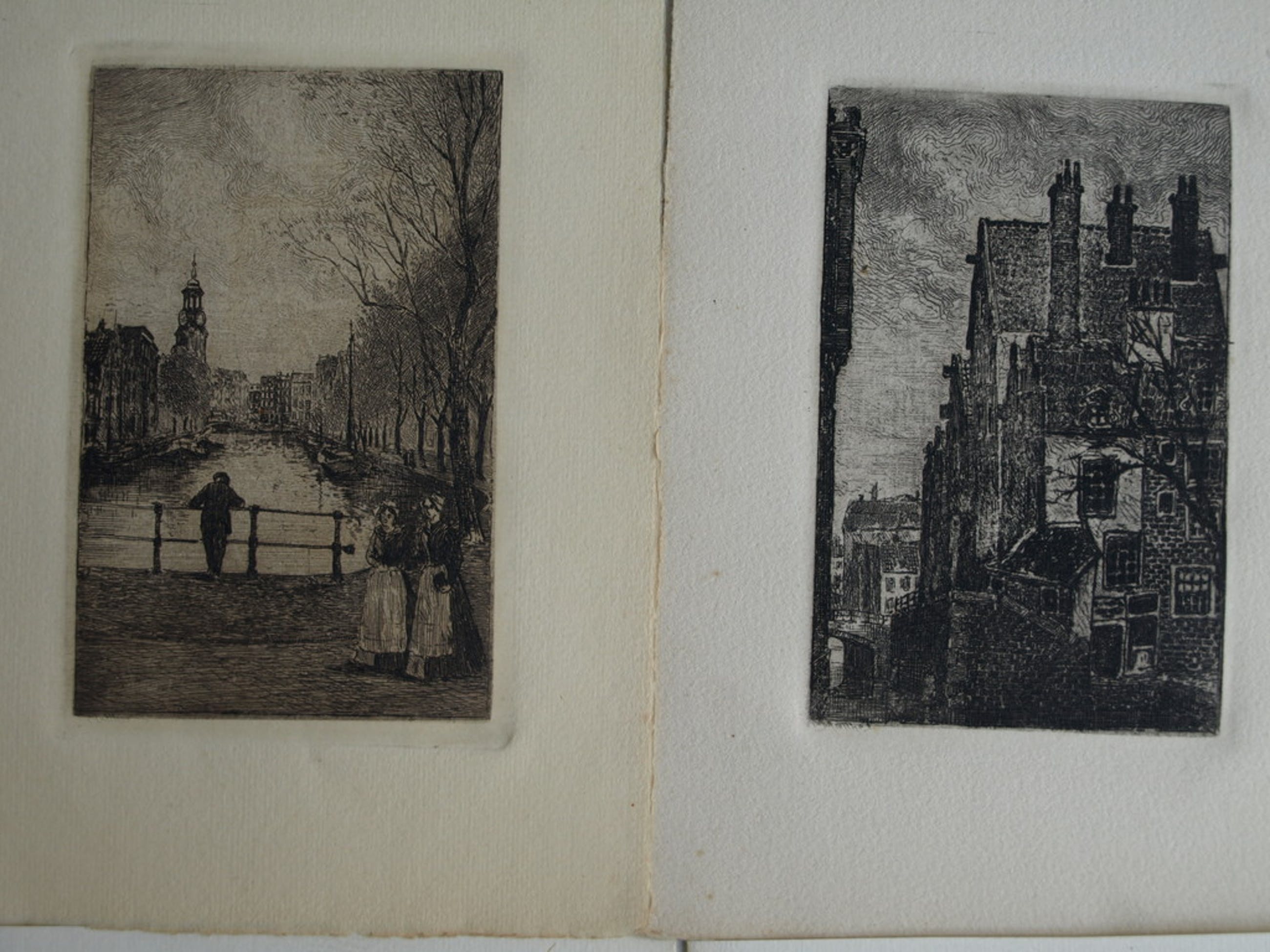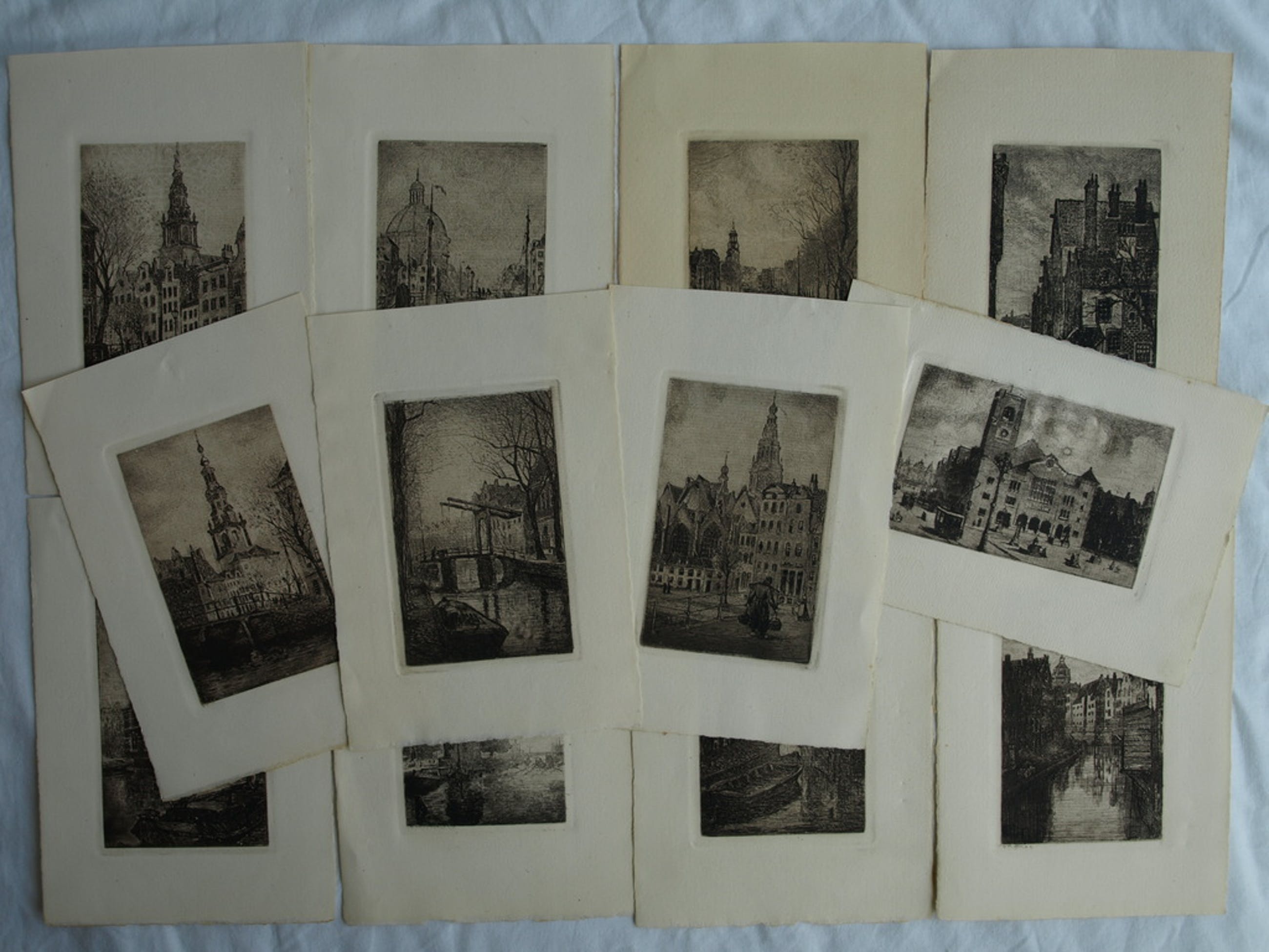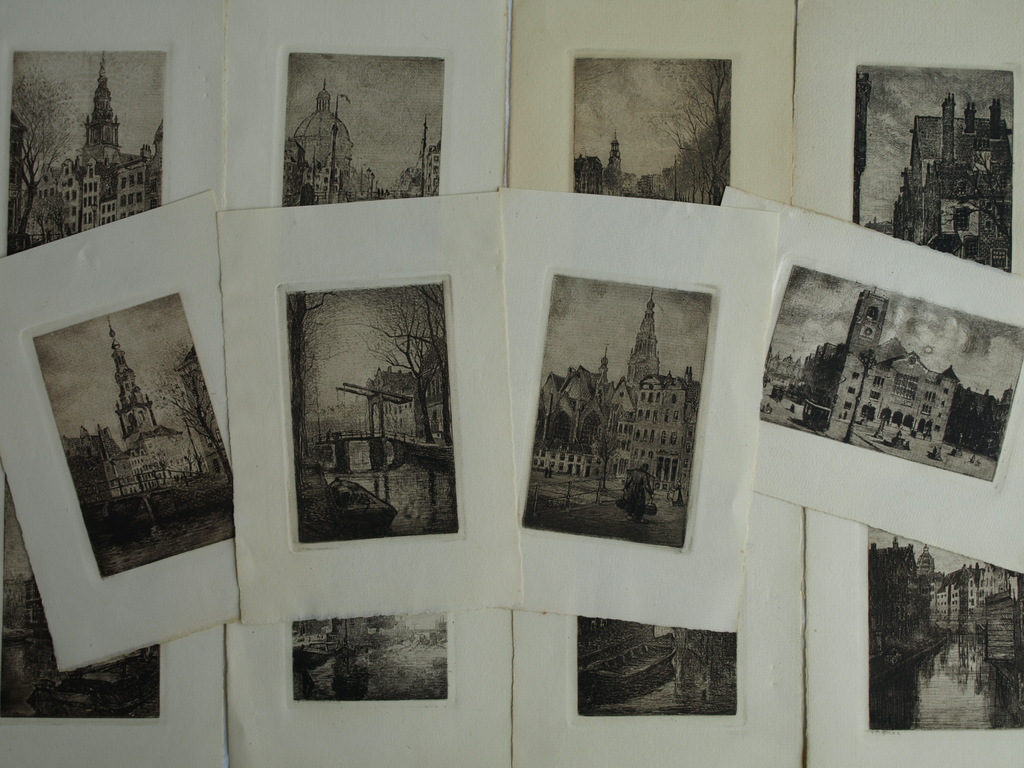 12 Etsen van de Duitse kunstenaar Oskar Paul Matthes met stadsgezichten van o.a. Amsterdam, Zaandam en Alkmaar. Gemaakt tijdens zijn verblijf in Nederland (1901-1910).