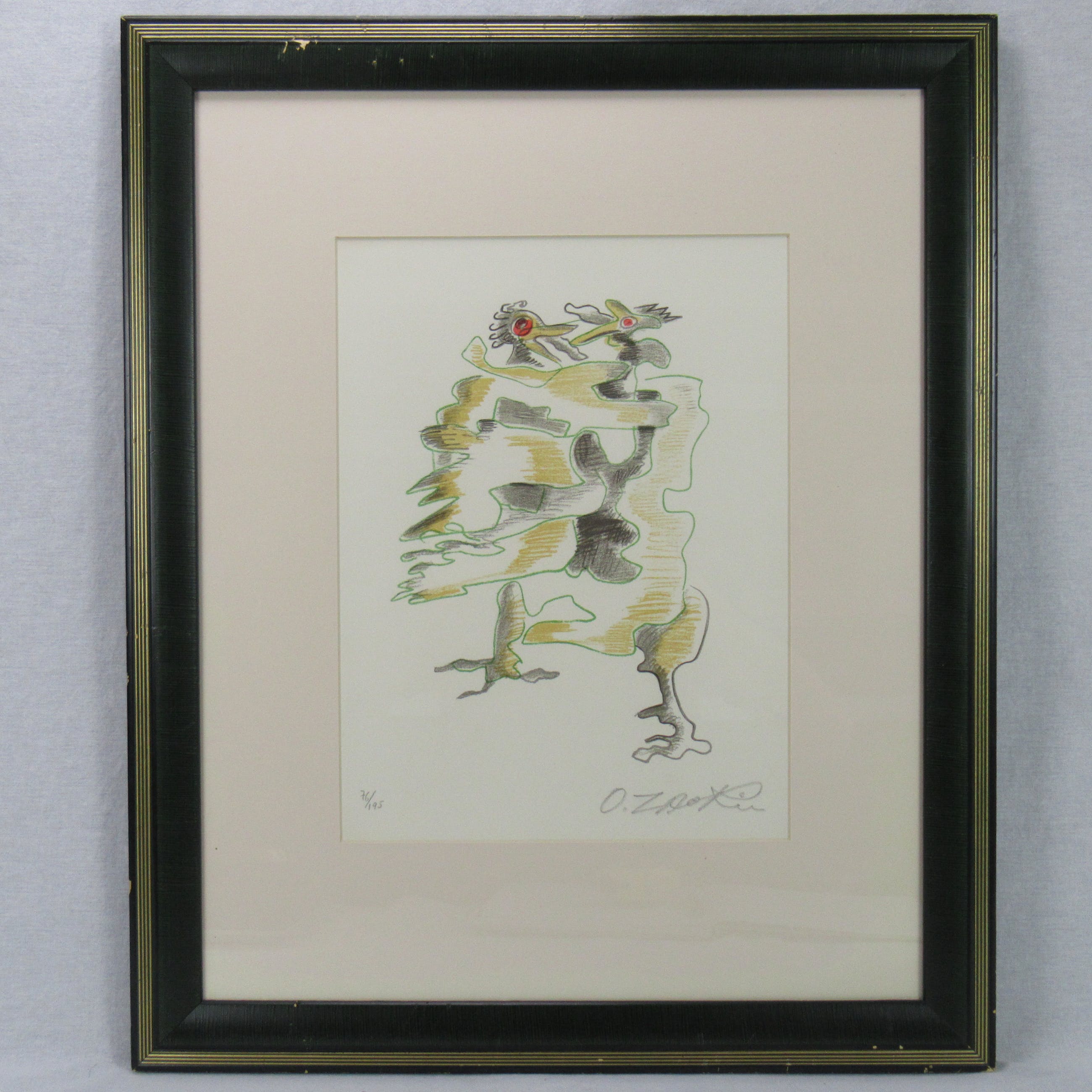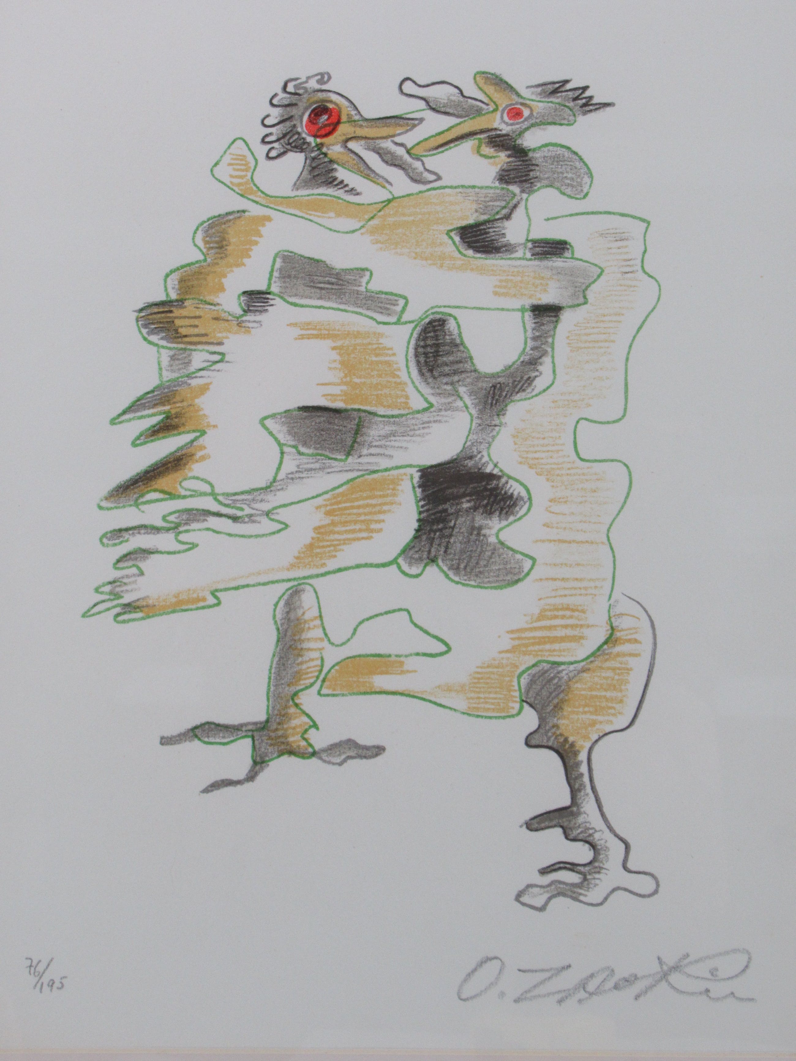 Litho van Ossip Zadkine geveild bij Sotheby's Amsterdam in maart 1999. De litho is gedrukt op handgeschept papier en in potlood genummerd en gesigneerd.Het werk verkeerd in goede conditie. De lijst heeft beschadigingen.