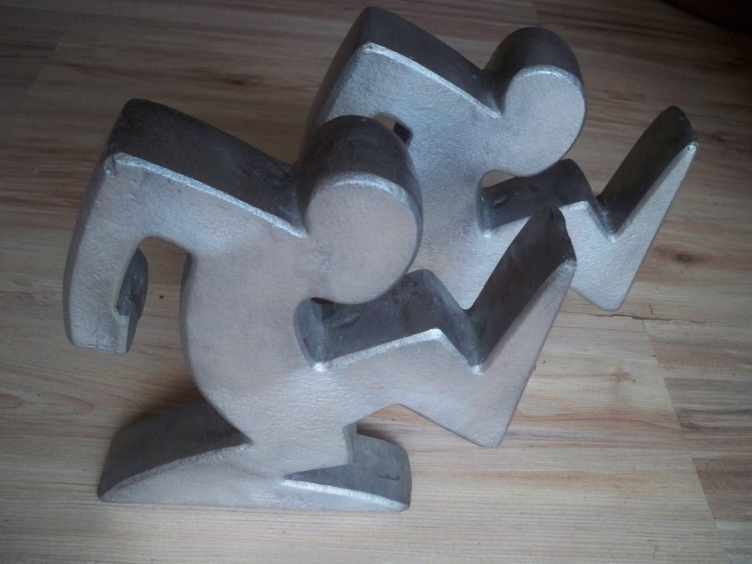 Twee massief aluminium beelden van "Mister Linea" naar ontwerp van Osvaldo Cavandoli.