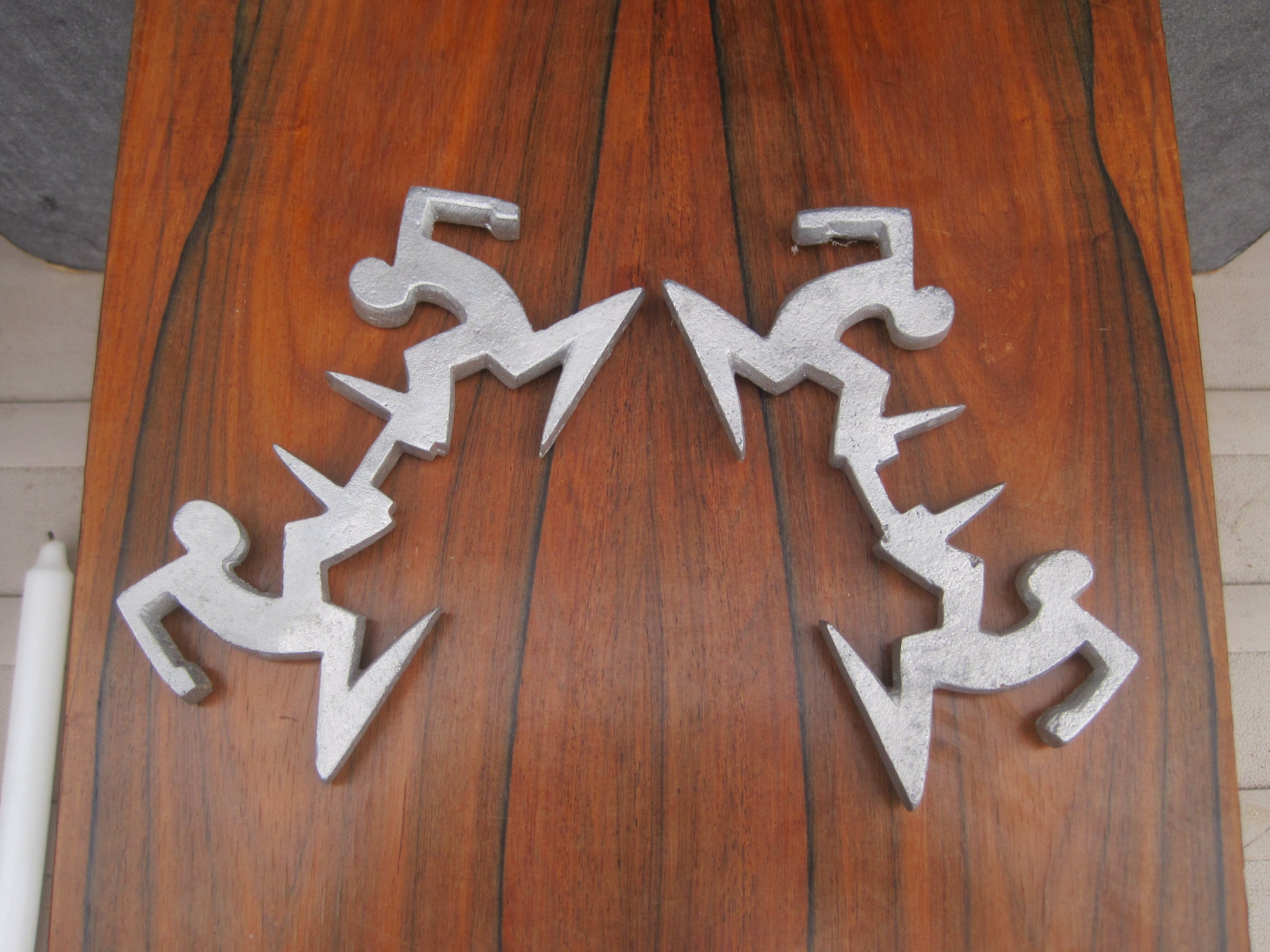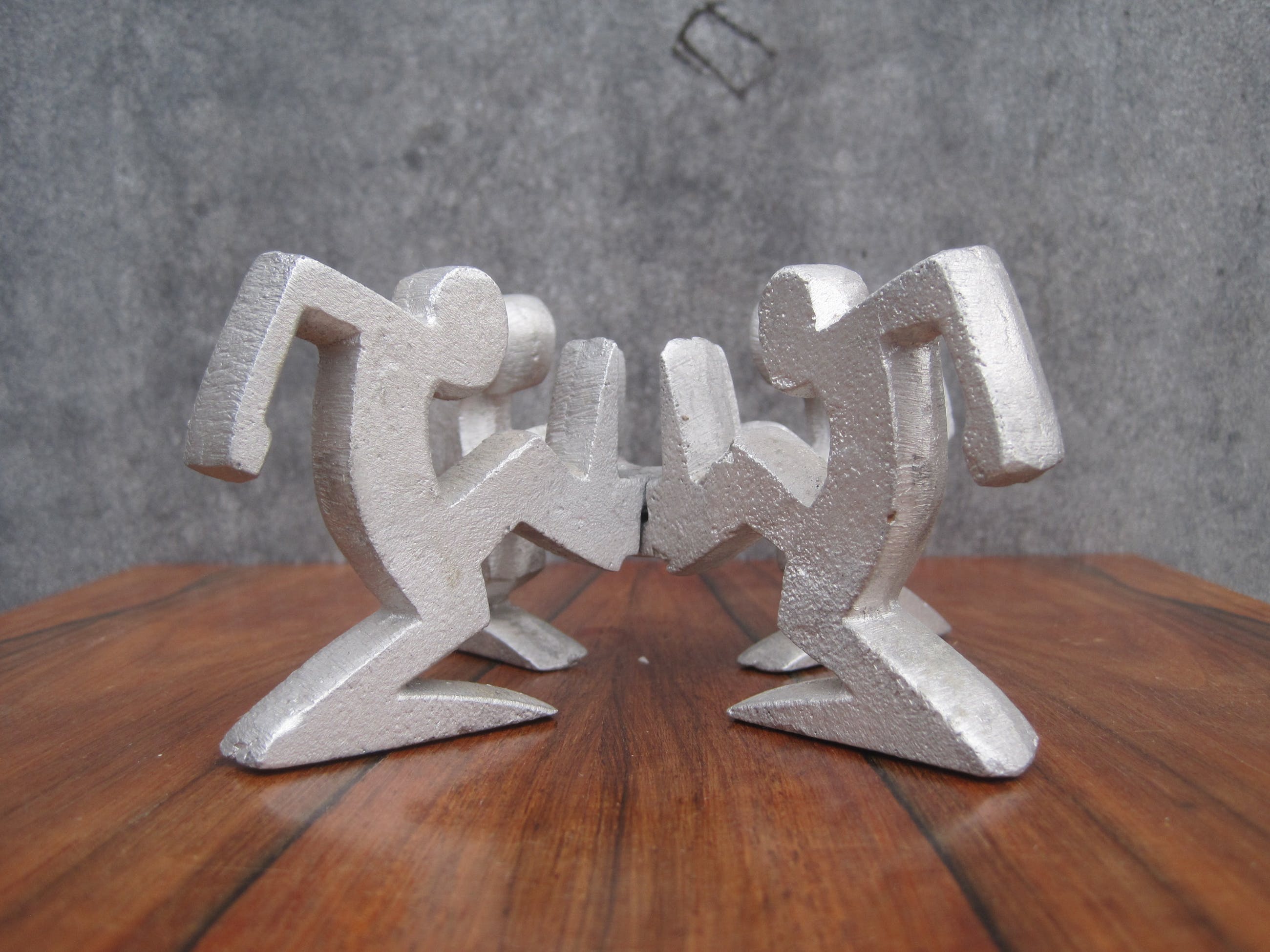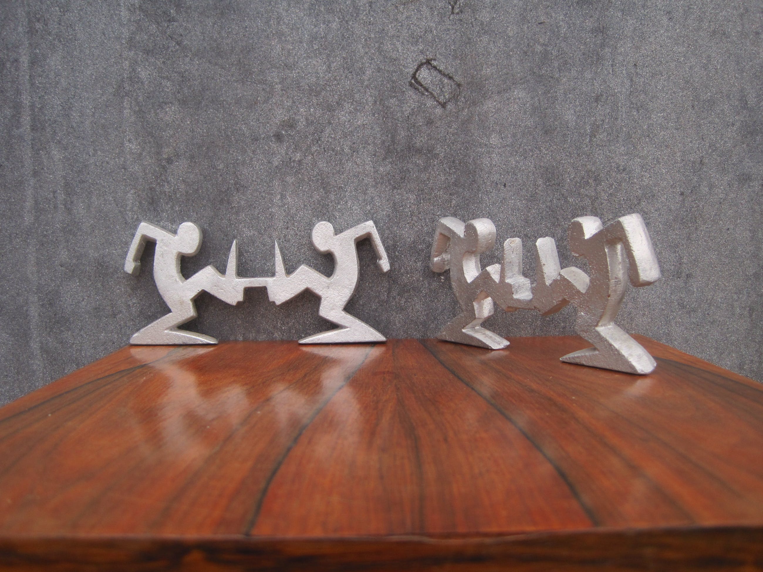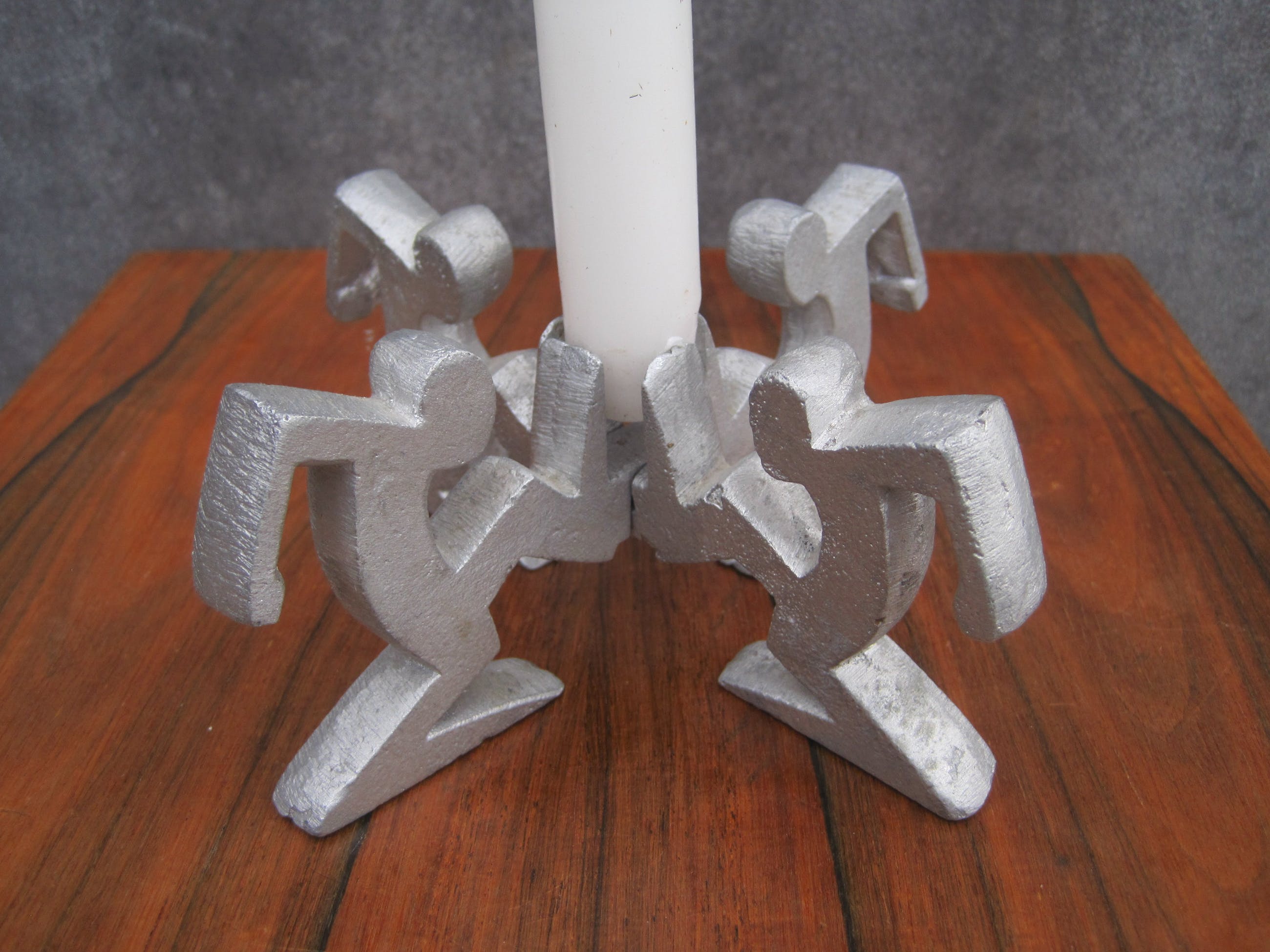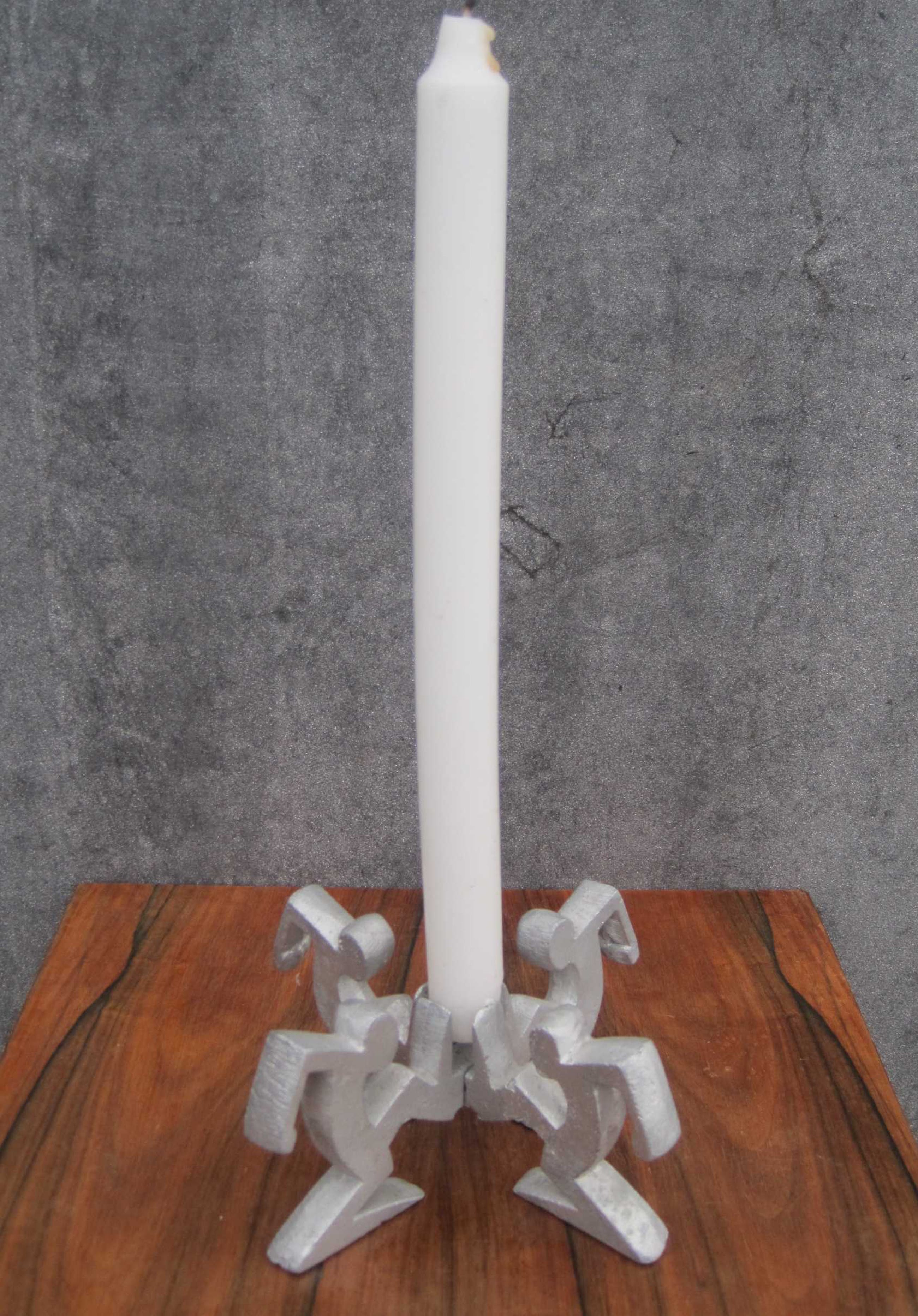 Een kandelaar gemaakt van massief aluminium, bestaande uit 2 delen die niet helemaal gelijk aan elkaar zijn, waardoor het precies in elkaar past.