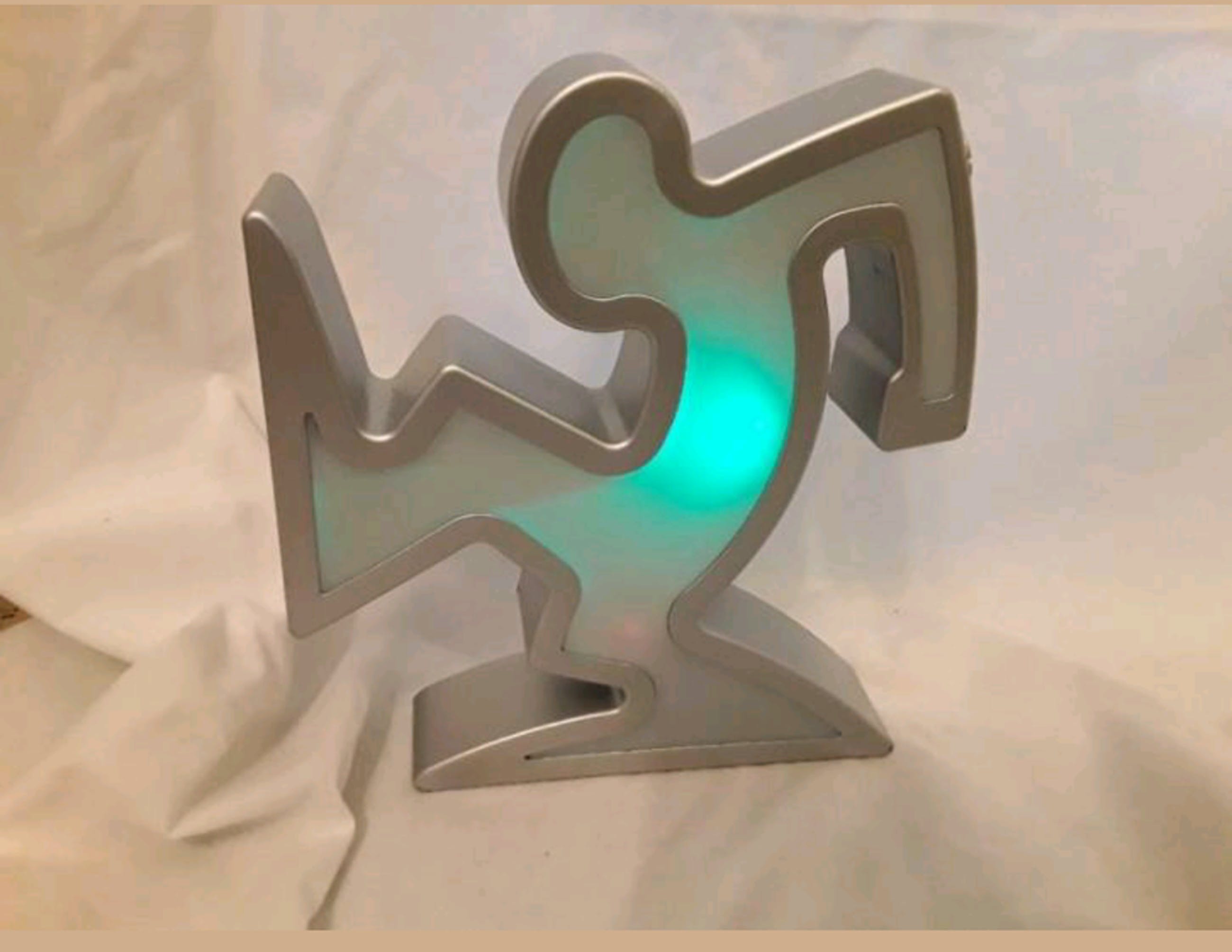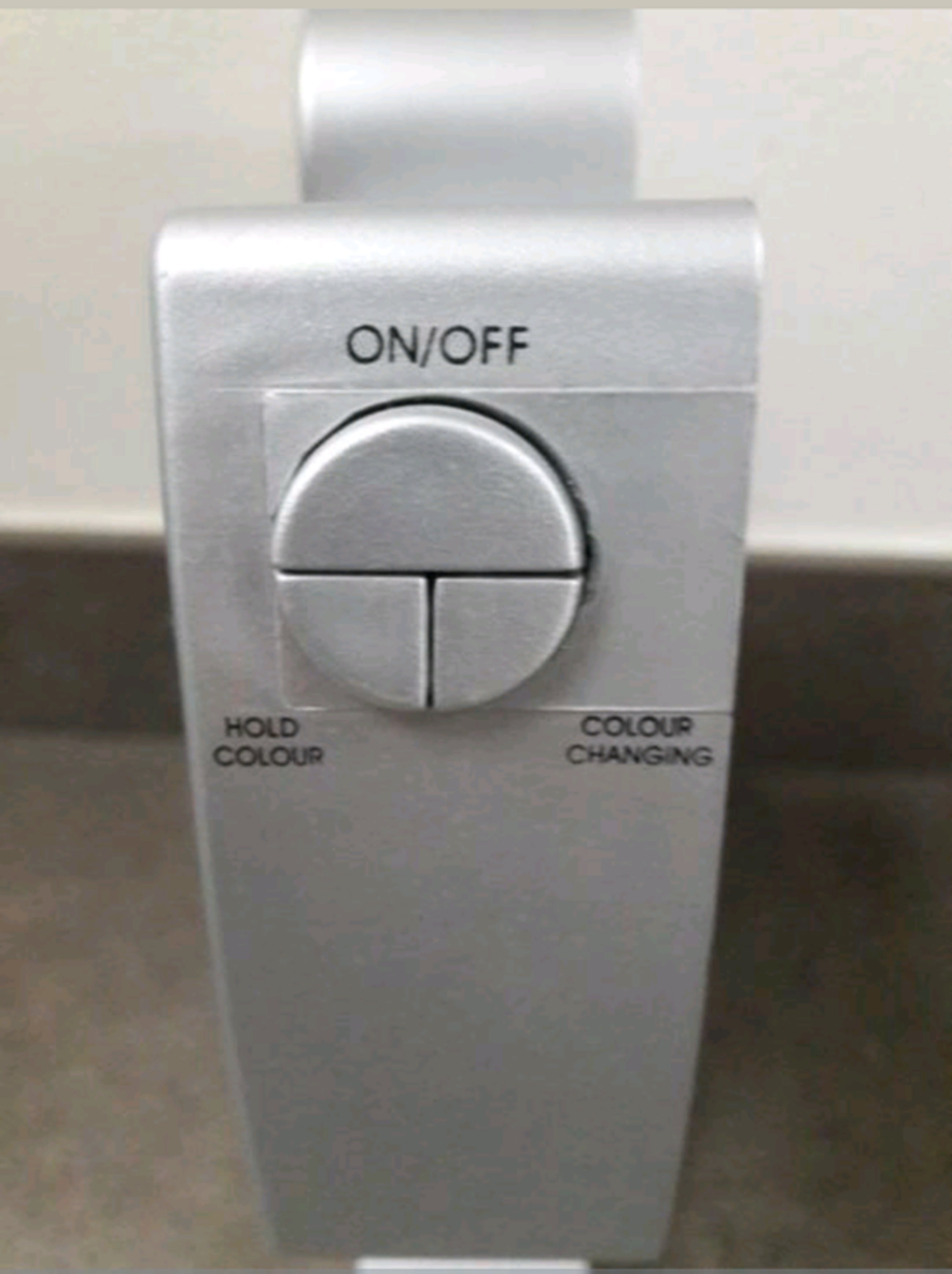 De lamp heeft een schakelaar voor wit of gekleurd licht.