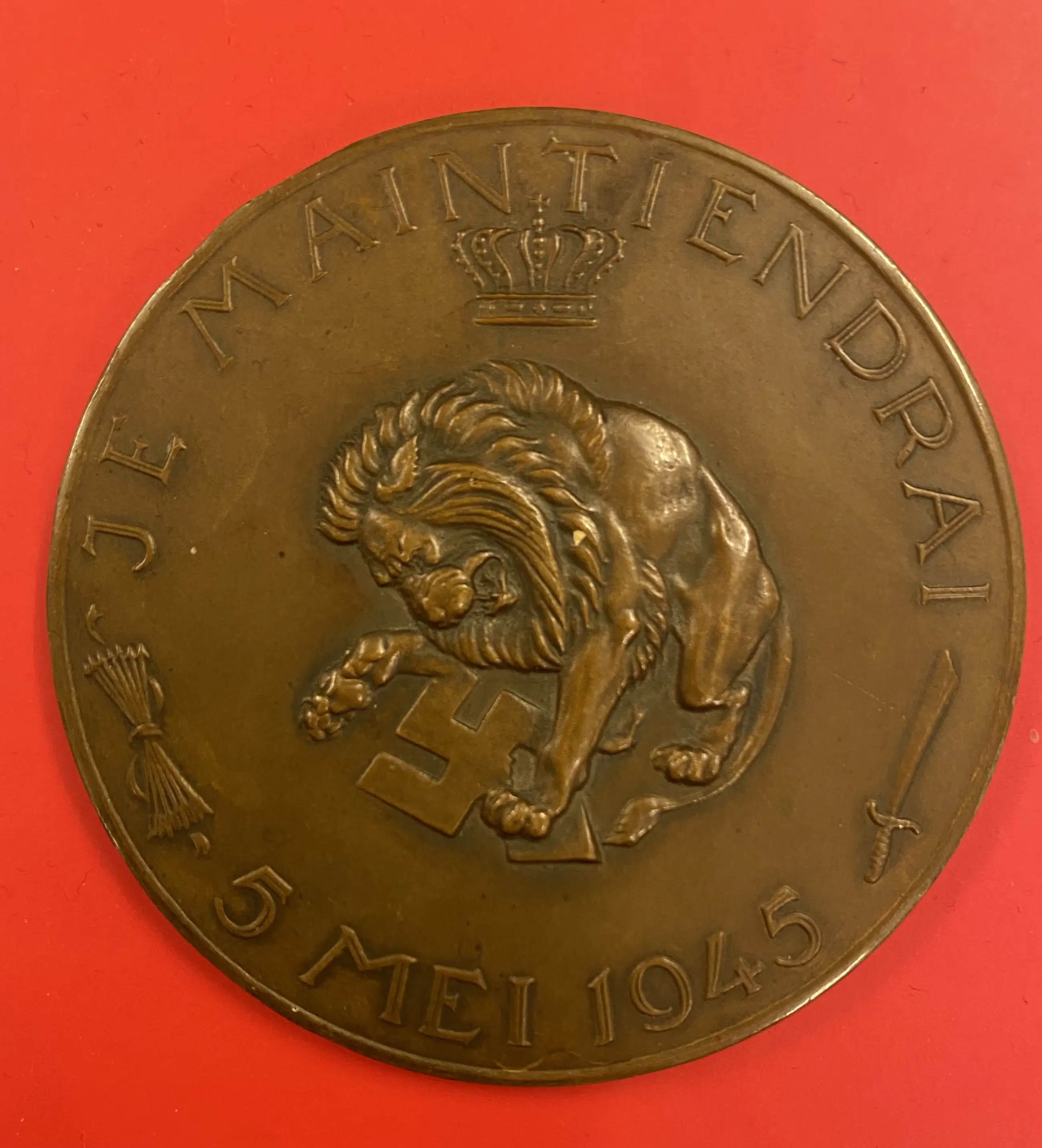 Verso : Onder een kroon een leeuw die met zijn klauwen een hakenkruis verscheurd