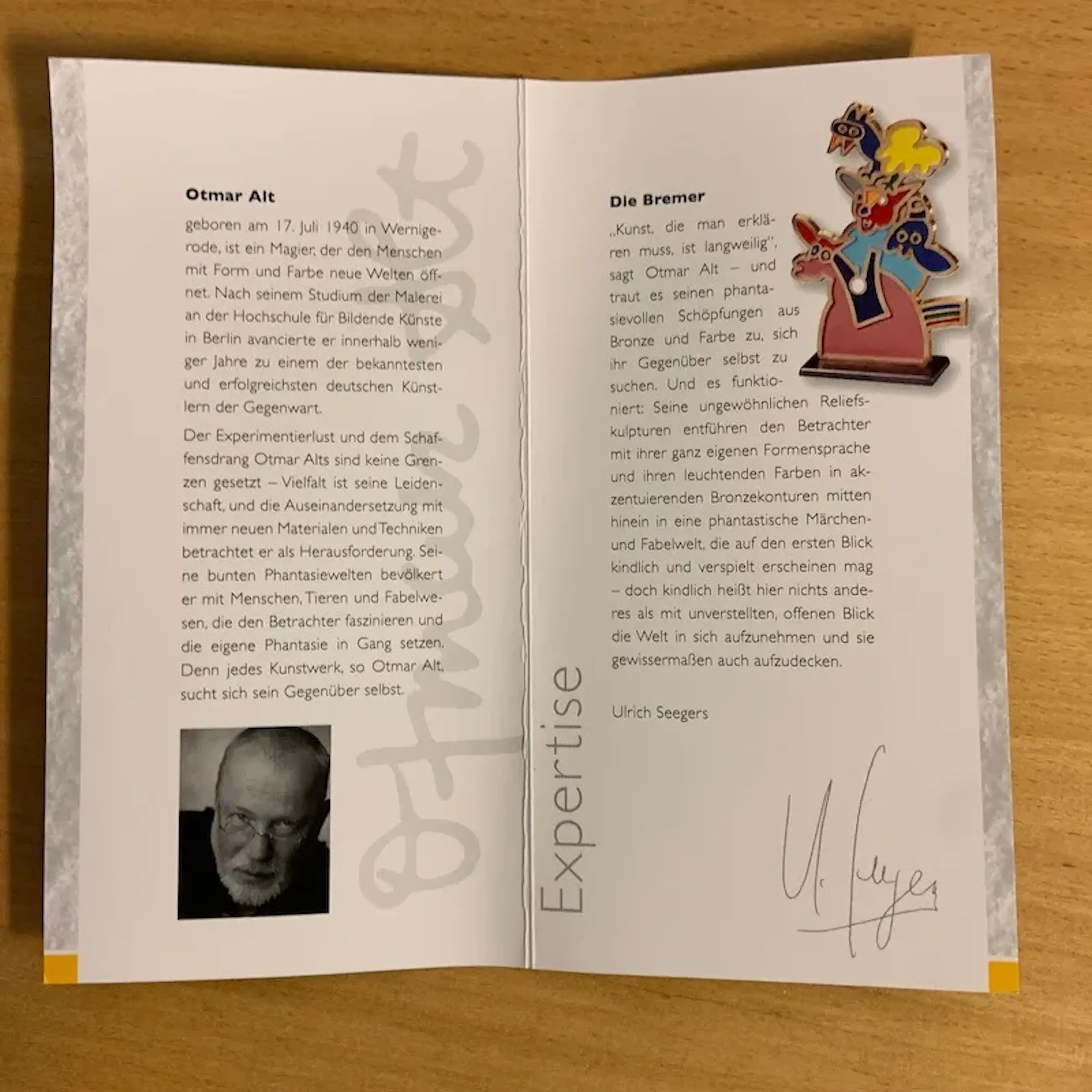 Otmar Alt, een gerenommeerde Duitse kunstenaar, heeft met "The Cow" een meesterwerk gecreëerd dat de grenzen van de traditionele sculptuur overstijgt. Zijn unieke stijl en creativiteit maken deze sculptuur tot een echt meesterwerk dat je met trots kunt tentoonstellen.