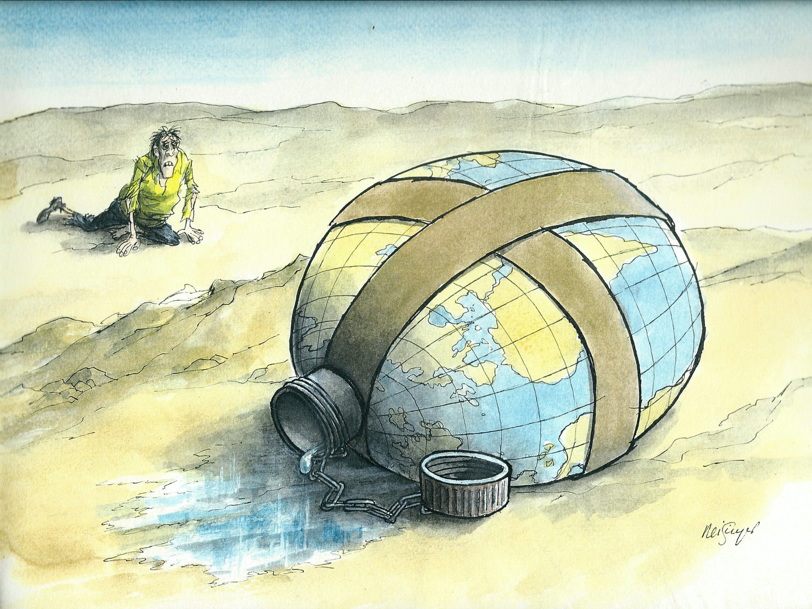 originele tekening van de Kroatische kunstenaar Oto Reisinger die in de jaren 70 en 80 veel van zijn werk ook publiceerde in weekblad Panorama