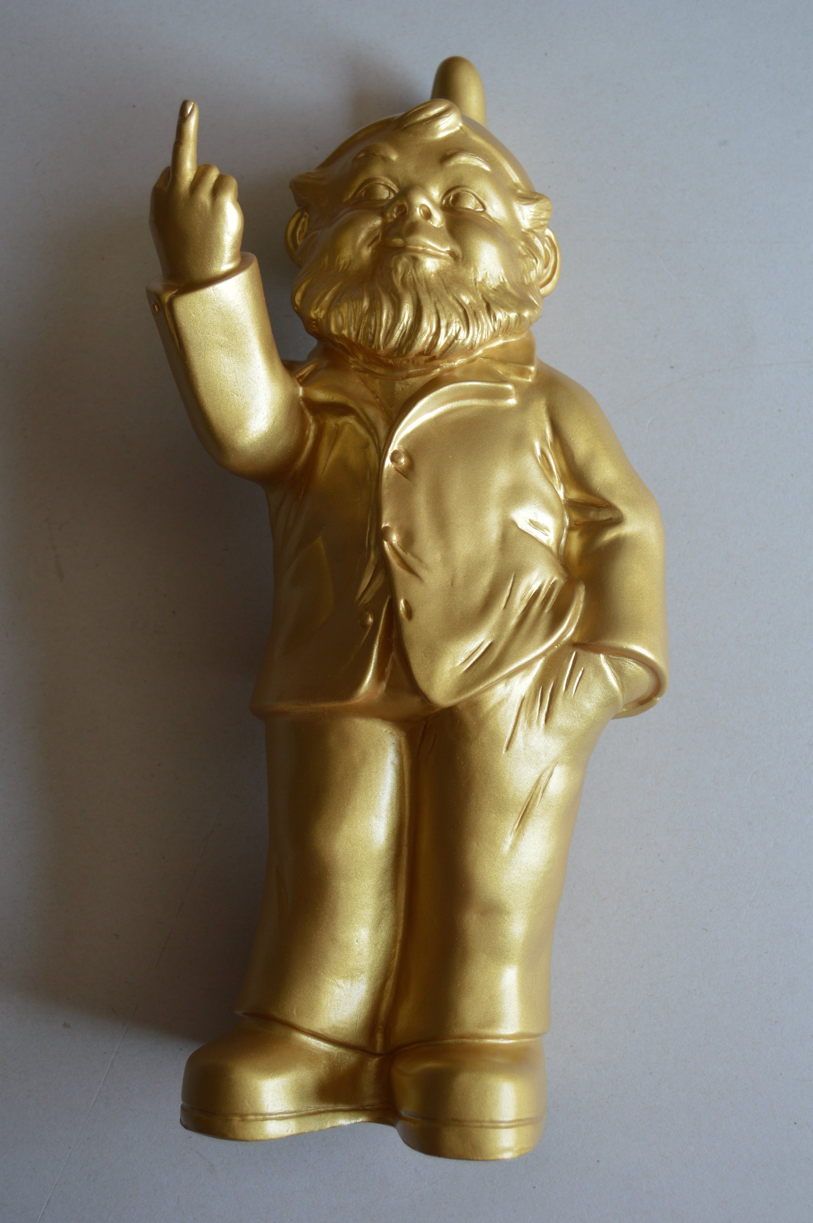 Het lijkt onwaarschijnlijk, maar deze tuinsculptuur is gebaseerd op een echt kunstproject uit 1994. Kunstenaar Ottmar Hörl verspreidde maar liefst duizend van deze kabouters in blauw via Seligenstadt, Duitsland , in groepen of apart. Niet allemaal tegelijk, maar in willekeurig gekozen stappen en fasen werden deze kabouters op verschillende plekken en geheel onverwacht in de stad geplaatst. De kabouters bleven staan totdat ze door voorbijgangers werden meegenomen, wat precies de bedoeling was van het kunstproject. Het idee was dat het kabouterproject toch al in het bezit was van het publiek, dus het zou niet uitmaken als de tuinkabouters werden verplaatst. Er zit dus meer diepgang achter deze kabouter dan je zou denken!