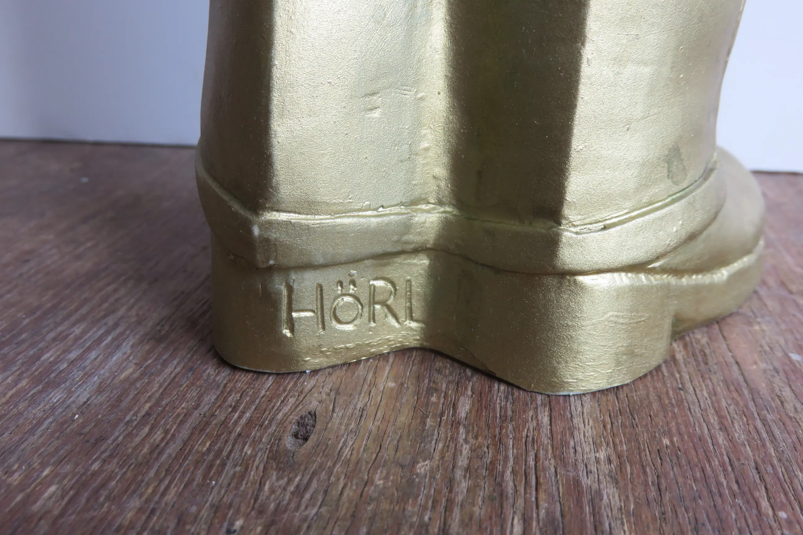 Fraaie sculptuur van de kunstenaar Ottmar Hörl. In originale goudkleur. Herkomst: Kunstrai Amsterdam