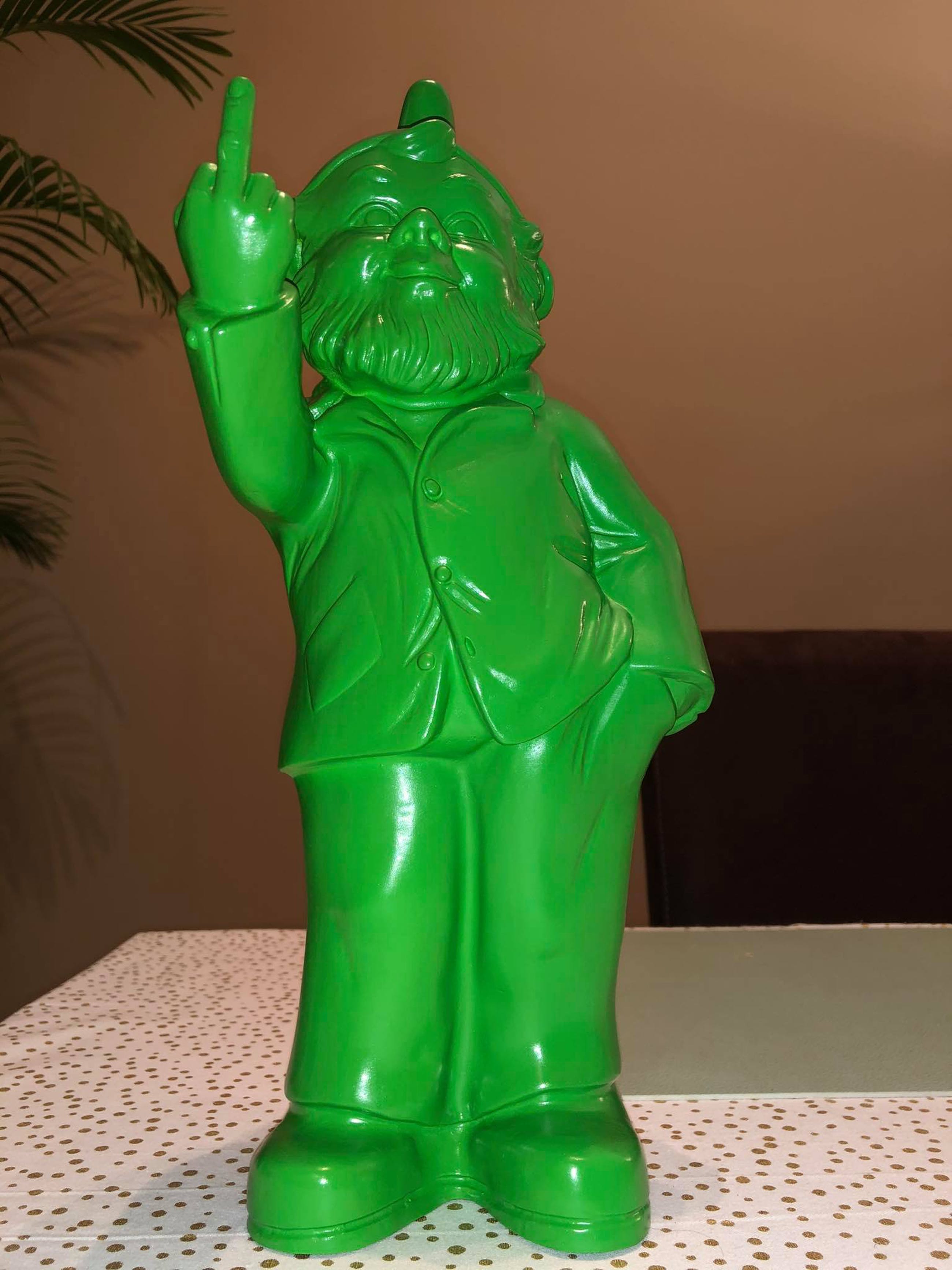 As an artist, he was discredited in 2008 because of his art project "Poisoned" where he’s had many gnomes in line bring the hitler salute. Although he wanted to provoke and protest against the emerging National Socialism, this was not understood by everyone. The gnome is weather resistant.