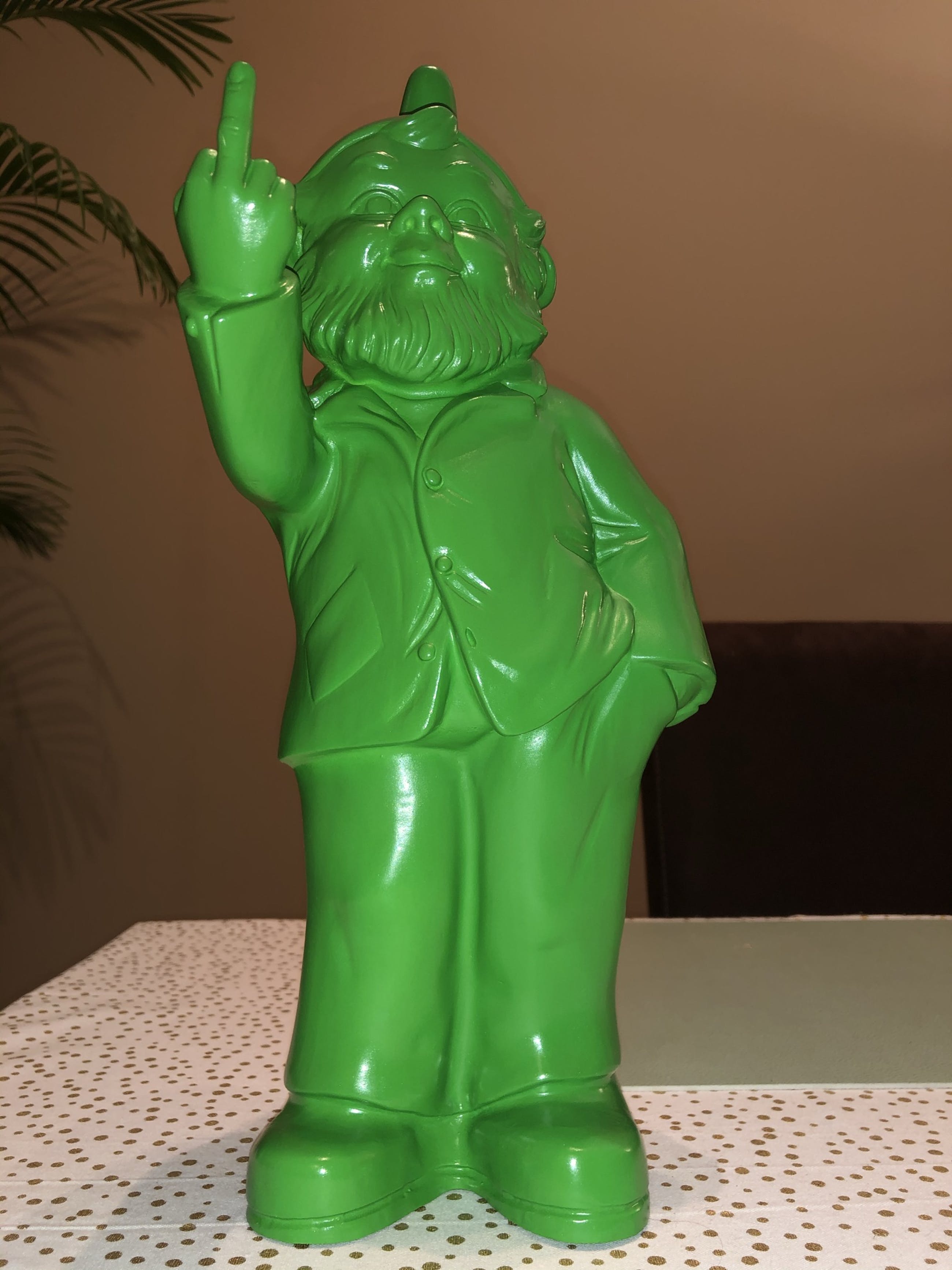 As an artist, he was discredited in 2008 because of his art project "Poisoned" where he’s had many gnomes in line bring the hitler salute. Although he wanted to provoke and protest against the emerging National Socialism, this was not understood by everyone. The gnome is weather resistant.