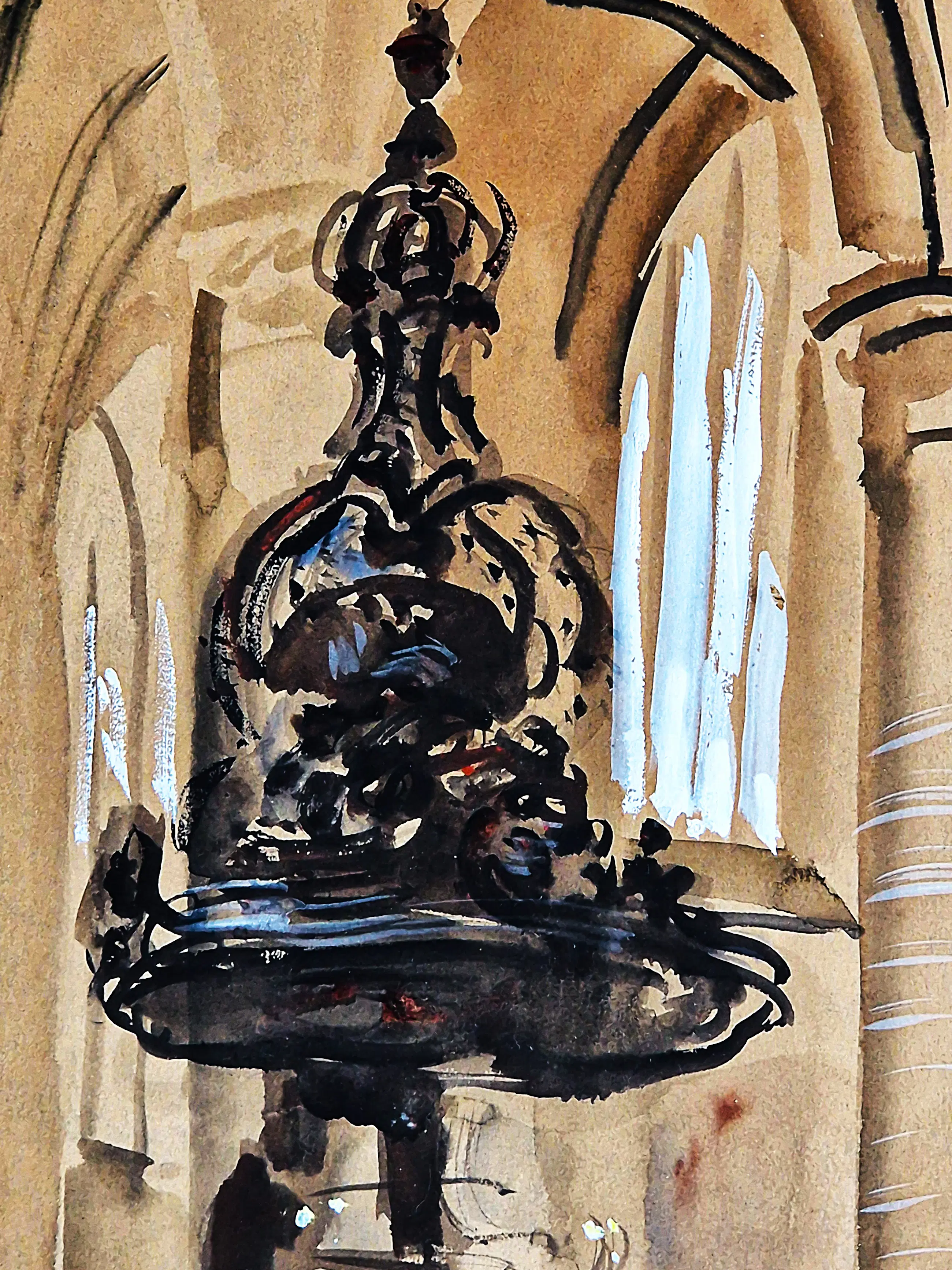- Medium: gemengde techniek (potlood, aquarel, gouache) op papier