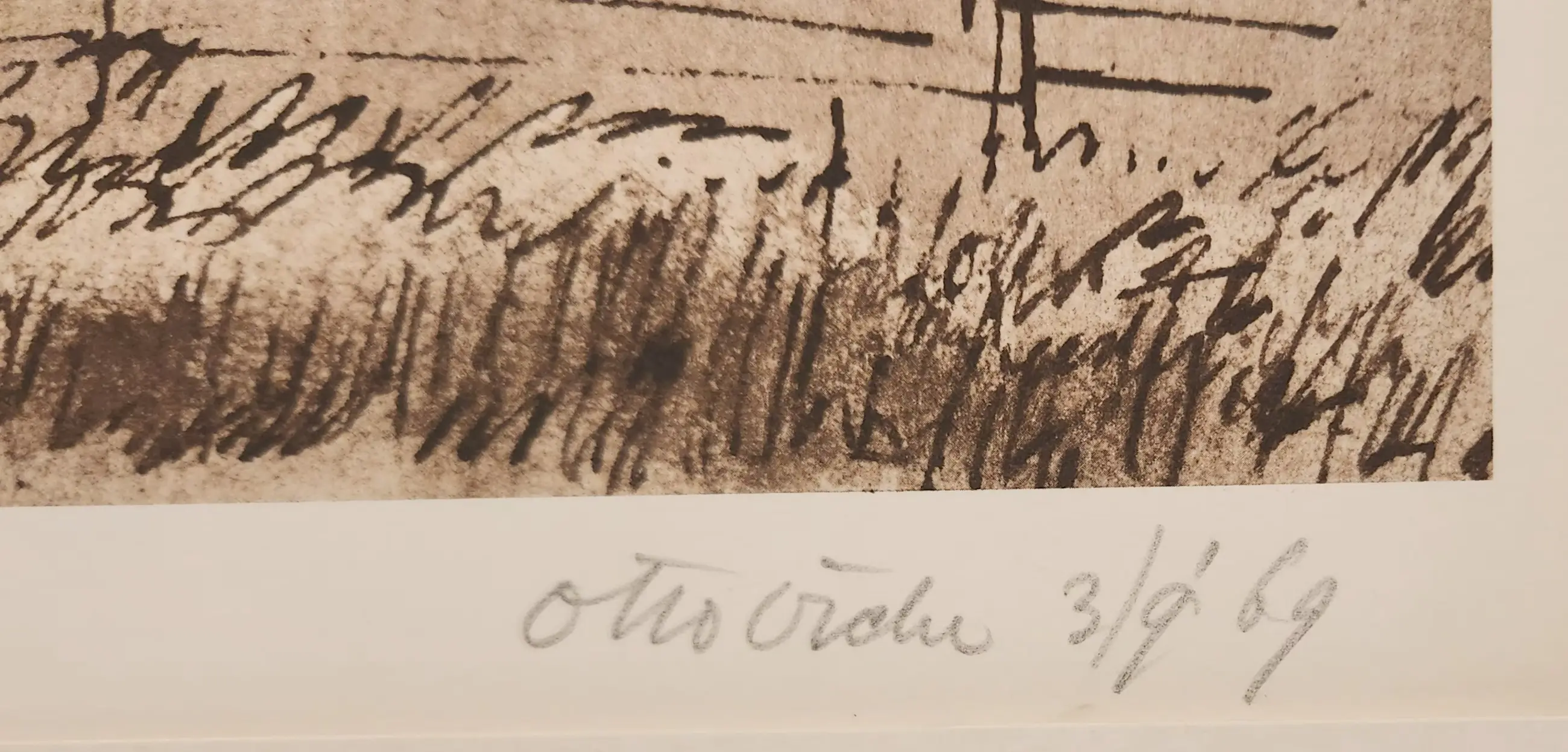 Een lithografie van Otto Dicke. Er is een bijbehorende tekst ondergeschreven door dichter C. Buddingh