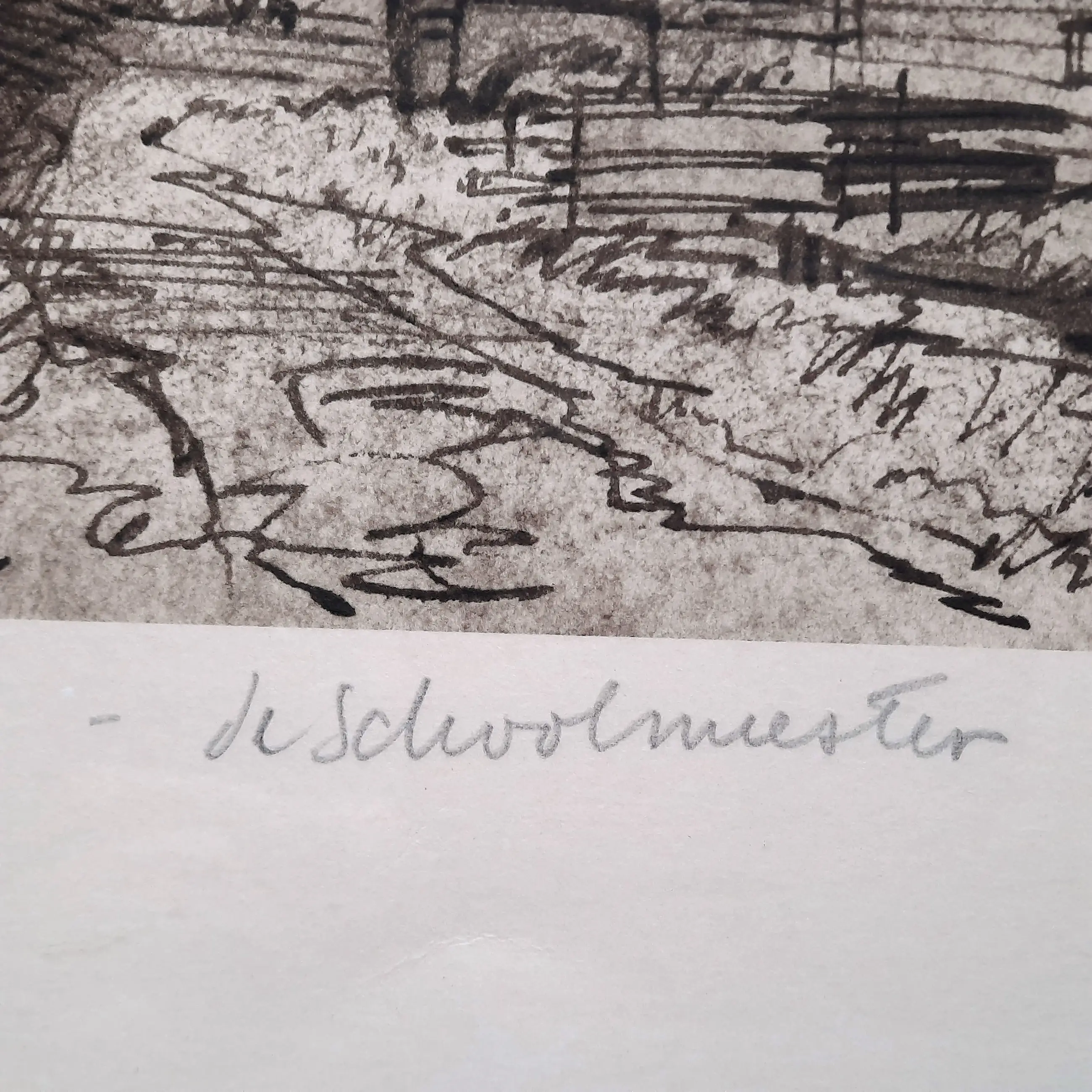 Otto Dicke - steendruk - De Schoolmeester - ingelijst - 25514