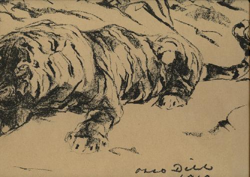 Otto Dill Tiger Lithographie .Im Stein signiert und datiert 1919. Aus der Mappe "Freunde graphischer Kunst"Leipzig 1921. Im Originalpaasepartout montiert.scan zeigt nur Ausschnitt.Altersgemäßer, aber guter Zustand.Privatverkauf.Versand 8 Euro, andere Länder erfragen.