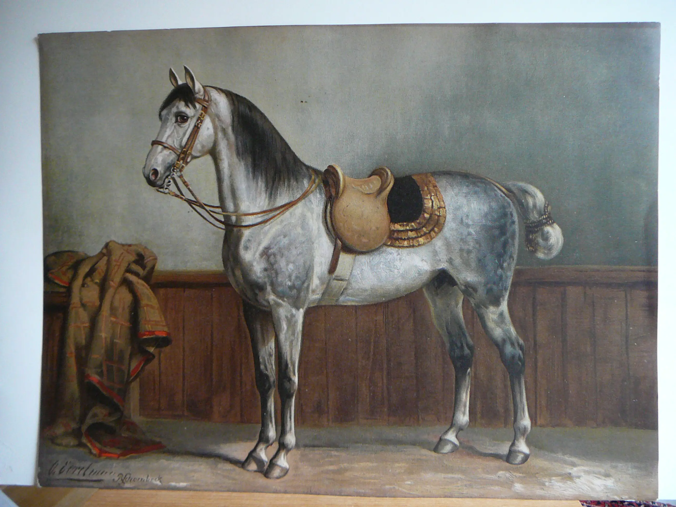 Zeer mooie originele chromolitho naar een schilderij van Otto Eerelman paardenrassen 1898 Dit is een echte chromolitho en geen nadruk