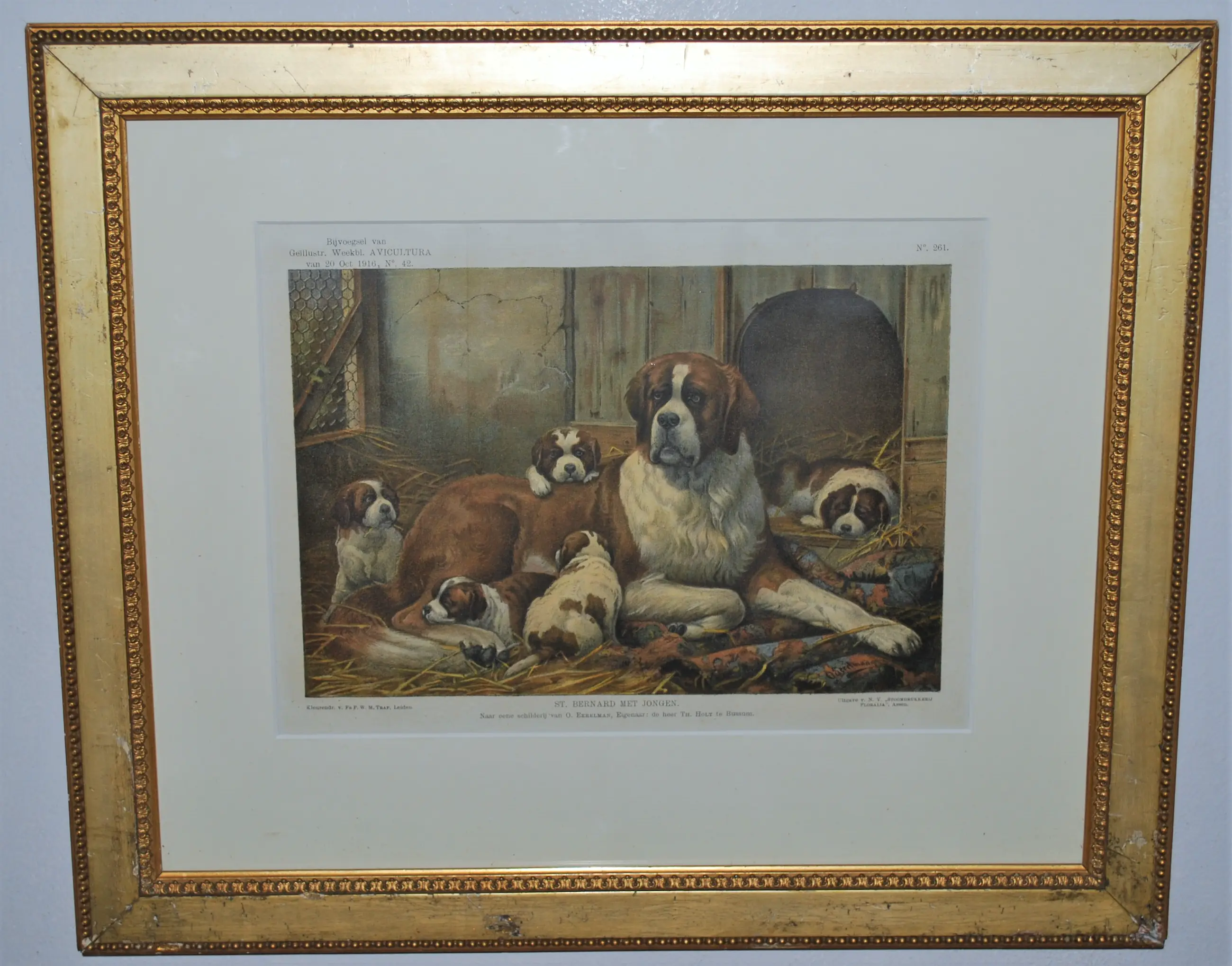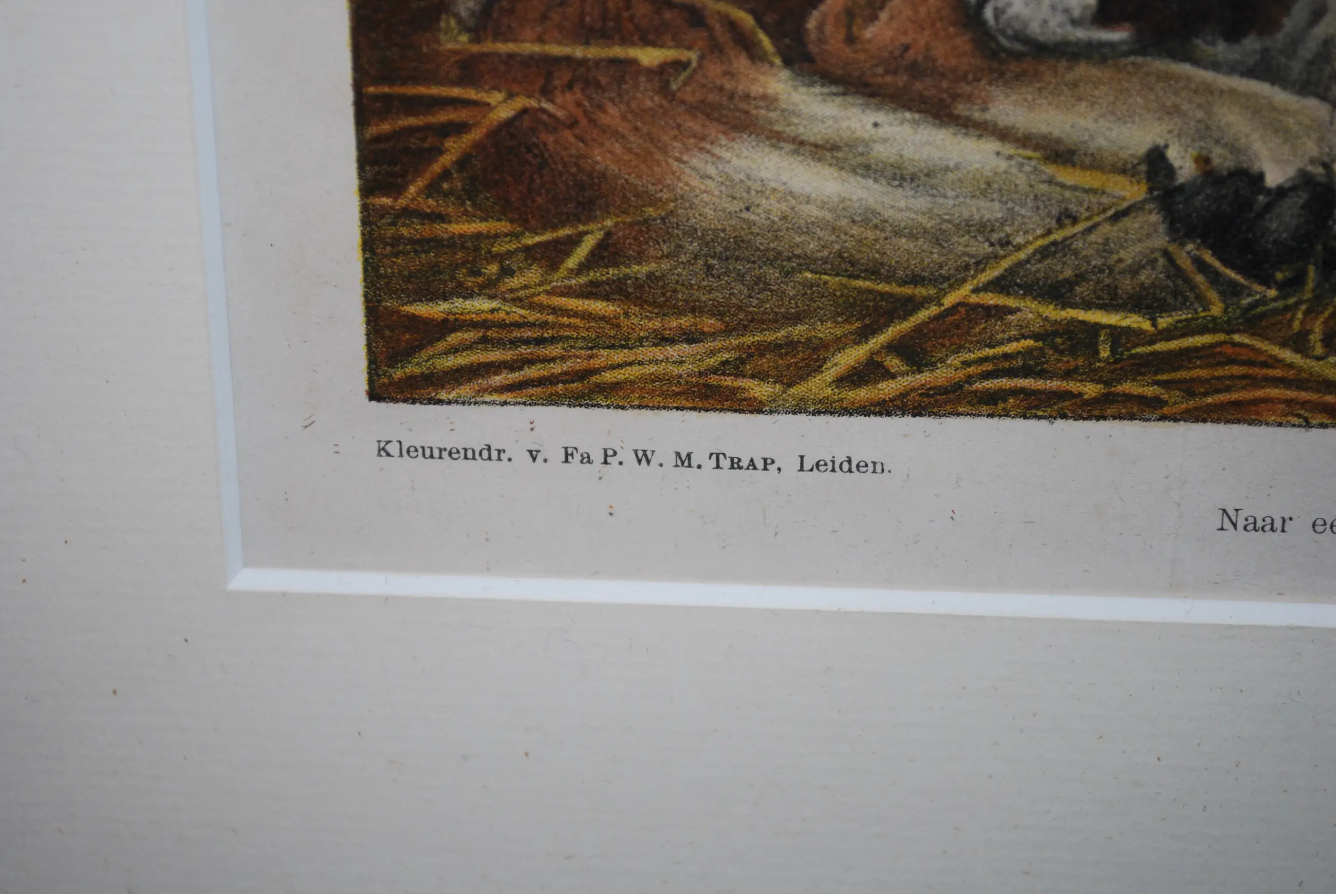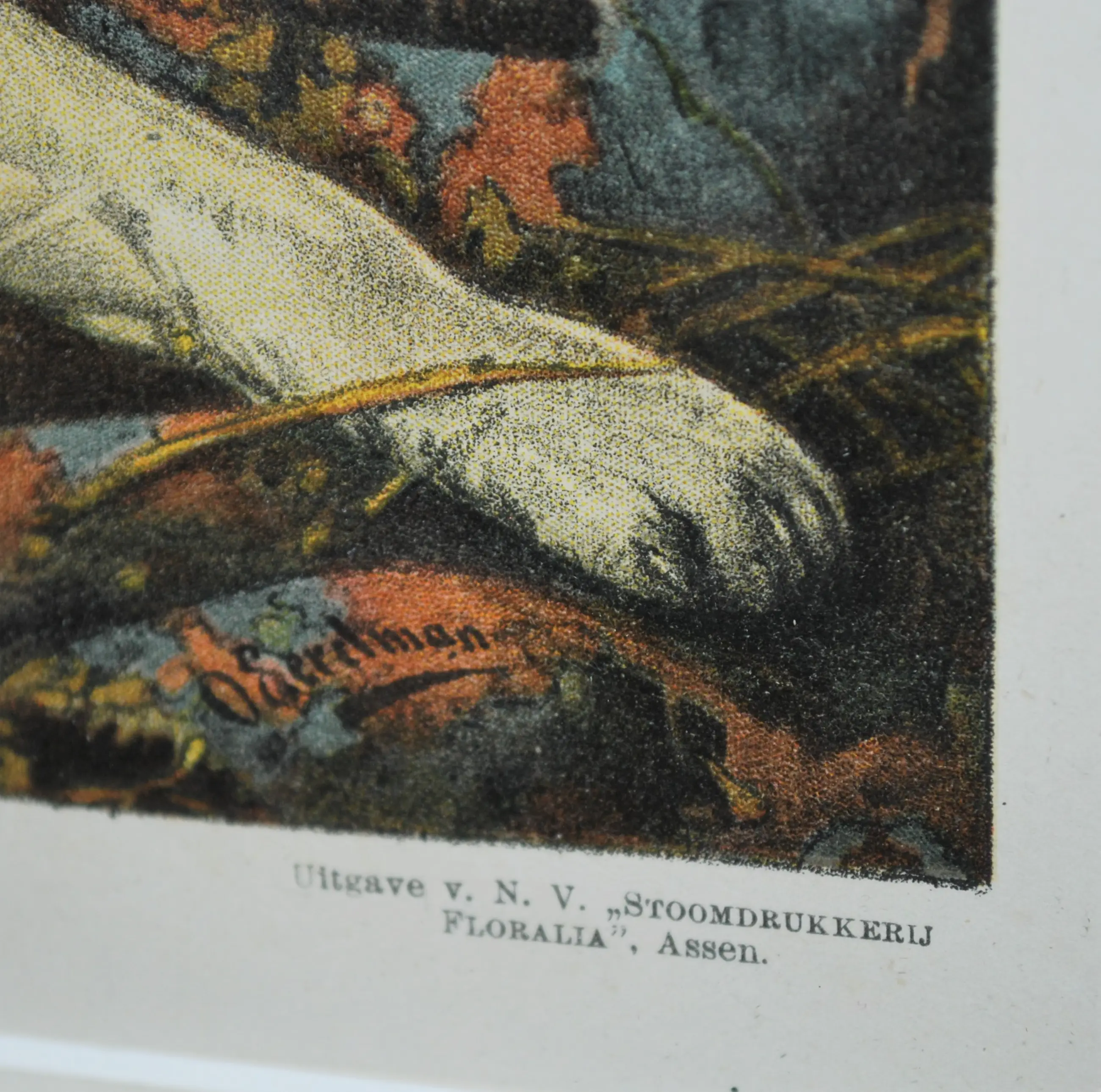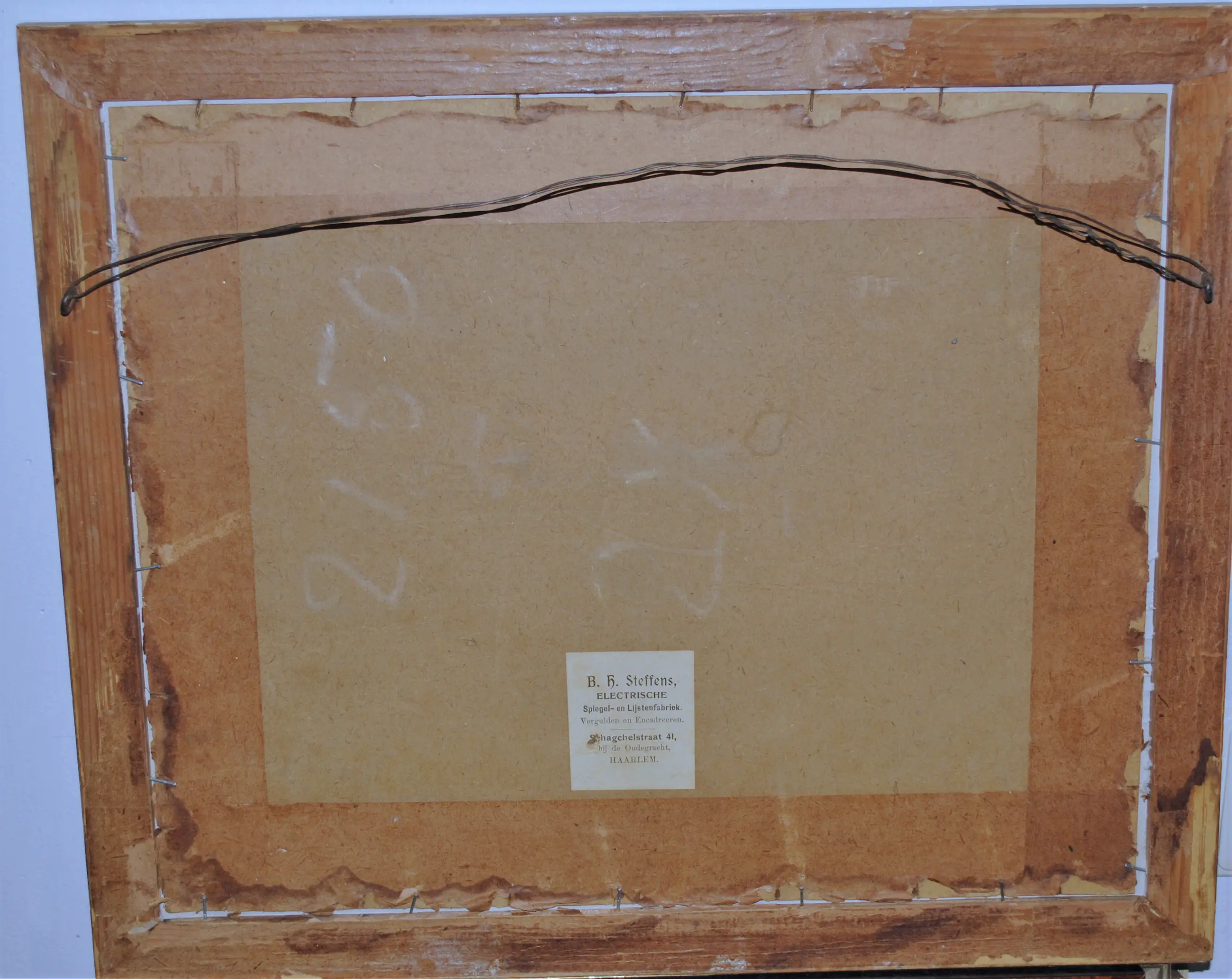 in een antieke gipsen lijst in behoorlijke gebruikte staat, afm 40x47 cm