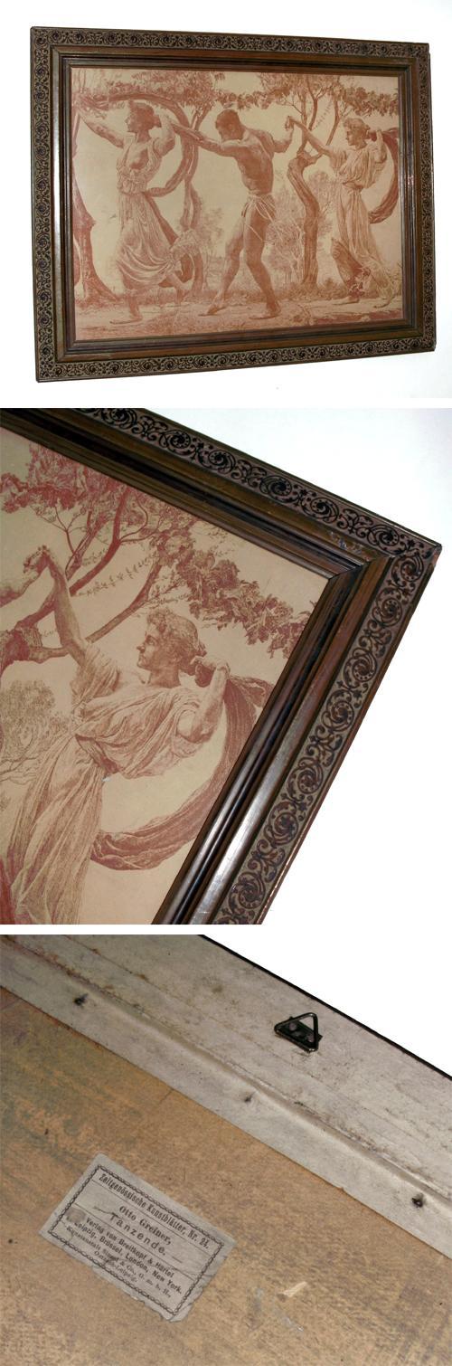 Altersspuren, Rahmenecken etwas bestoßen - sehr schöne Lithographie in passendem Rahmen der Zeit.
