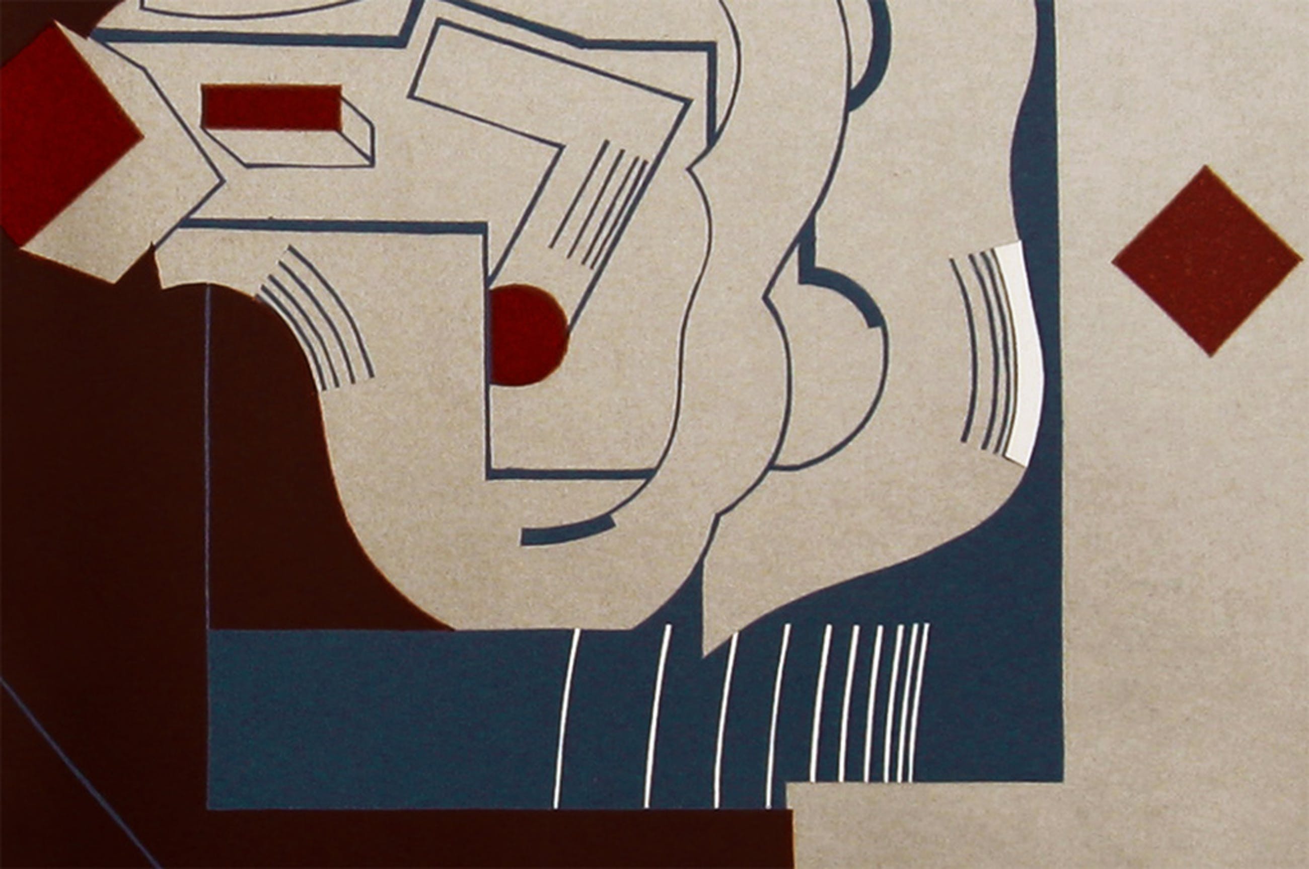 Originele linoleumsnede van Otto Mindhof, leerling van HAP Grieshaber. Op groot formaat stevig papier: 70 x 50 cm. In 3 kleuren uitgevoerd: bordeaux rood, donkerblauw en aluminium. Dubbele pagina, dus lichte vouw. Uitstekende kwaliteit. (Fotografisch is aluminium lastiger te vangen dan gewone kleuren.) Zeldzame uitgave. Oplage 600 st. Verzending 10 euro. Belgie 15 euro.