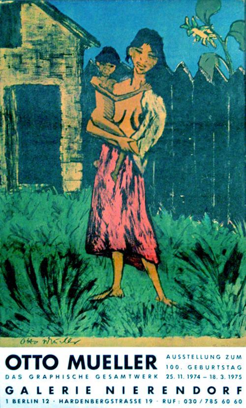 Plakat der Galerie Nierendorf, Berlin, 1974 zu einer Gedächtnisausstellung mit Werken von Otto Mueller nach einer Lithografie des Künstlers von 1927. Format 82 x 49 cm. Einwandfreier, neuwertiger Zustand, farbfrisch.Hierzu gibt es auch eine Mappe mit neuen Faksimiles, bitte erfragen. Von privat,- keine Rücknaheme. Versand D = 8.-, EU =11.- Euro, sonst absprache.