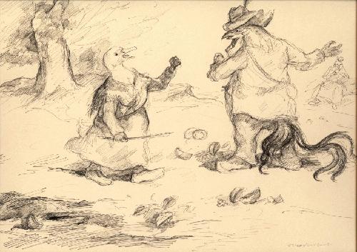 Otto Schubert - Otto Schubert Originalillustration signierte Federzeichnung Hühnchen und Hähnchen