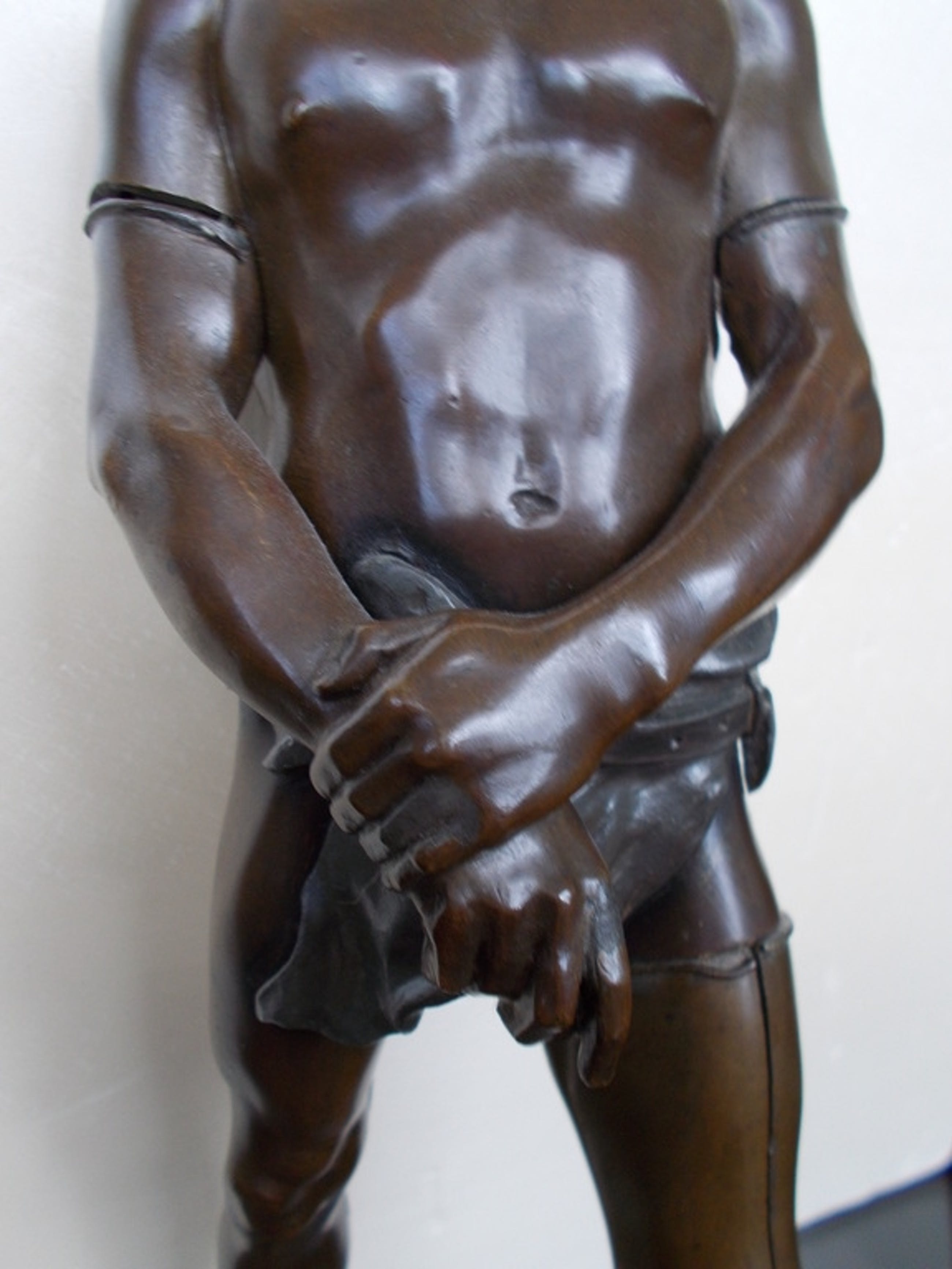 Bijzonder bronzen beeld van Otto Thiem uit circa 1920,het betreft een "onaf"beeld,de afzonderlijke onderdelen zijn goed te zien en nog niet aan elkaar bevestigd.Gesigneerd,34x20x8 cm.