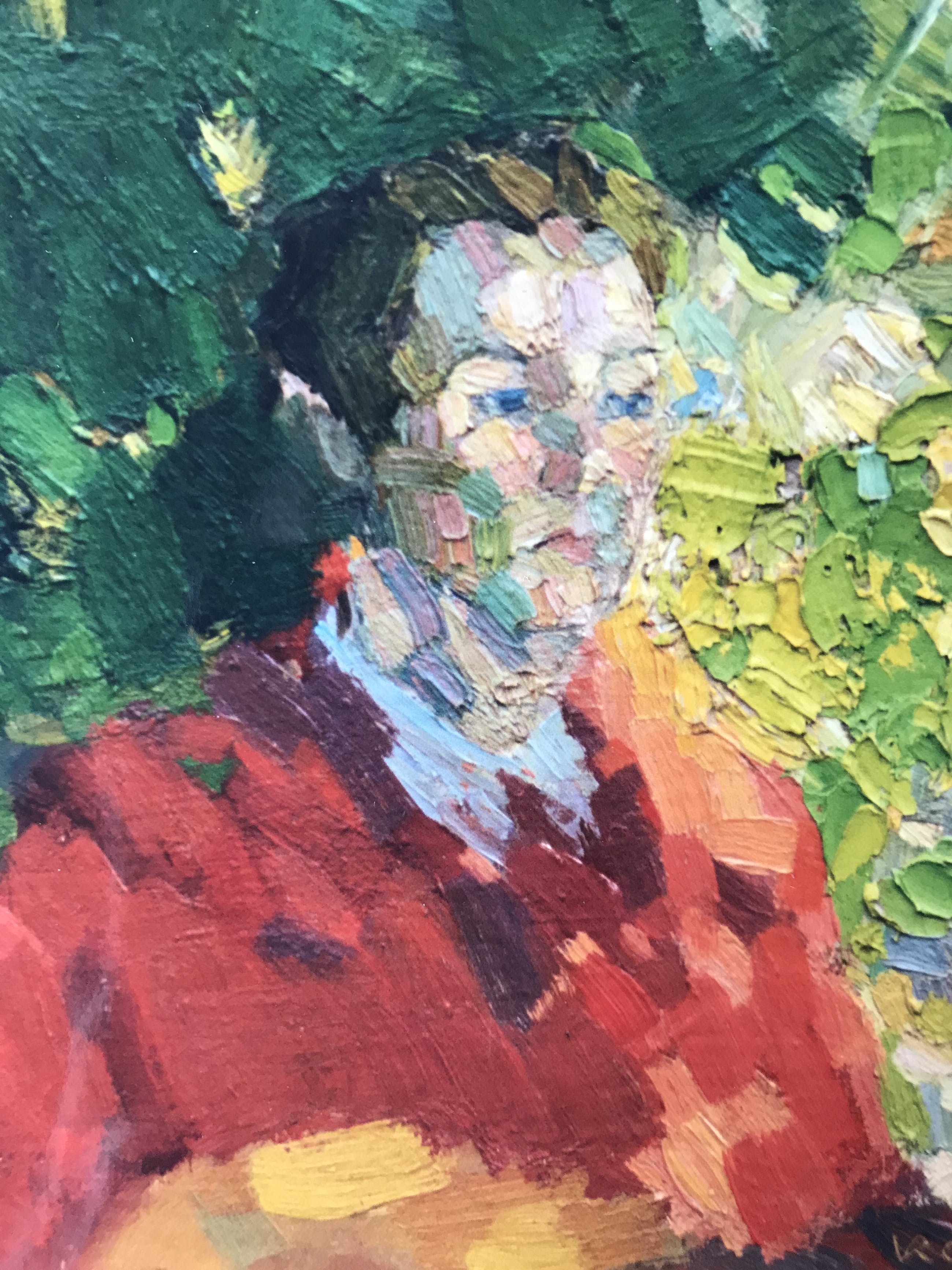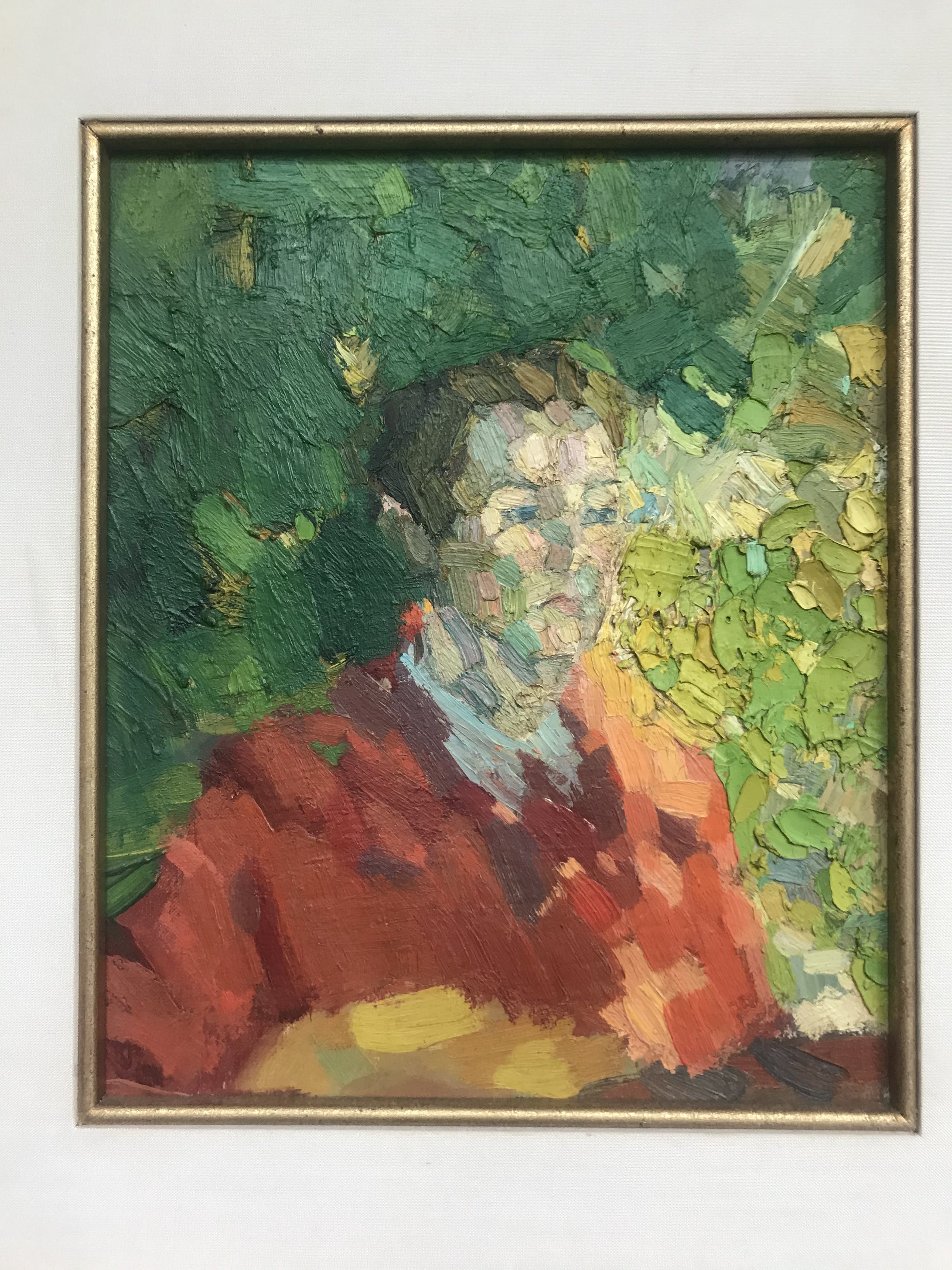 Intiem, prachtig ingelijst portret van een jonge man. Bij dit schilderij hoort een interessant verhaal. Het was rechtsonder gesigneerd: vR. Otto van Rees dus. Bepaald niet de geringste. De geschiedenis van het werk viel echter niet te achterhalen; daarom is de signatuur door de verkopende kunsthandelaar (een zeer gerenommeerde) verwijderd. Blijft de opvallende overeenkomst met wel bewezen werk van Van Rees uit de periode 1905-1907. Si non è vero è ben travato. Het doek is niet groot (26x22 cm en 50x45 cm met lijst), maar je ziet onmiddellijk dat het om iets bijzonders gaat. De taxatiewaarde bedraagt €2000. Een kostbaar schilderij dus. S.v.p. naar waarde bieden. De conditie is uitmuntend.