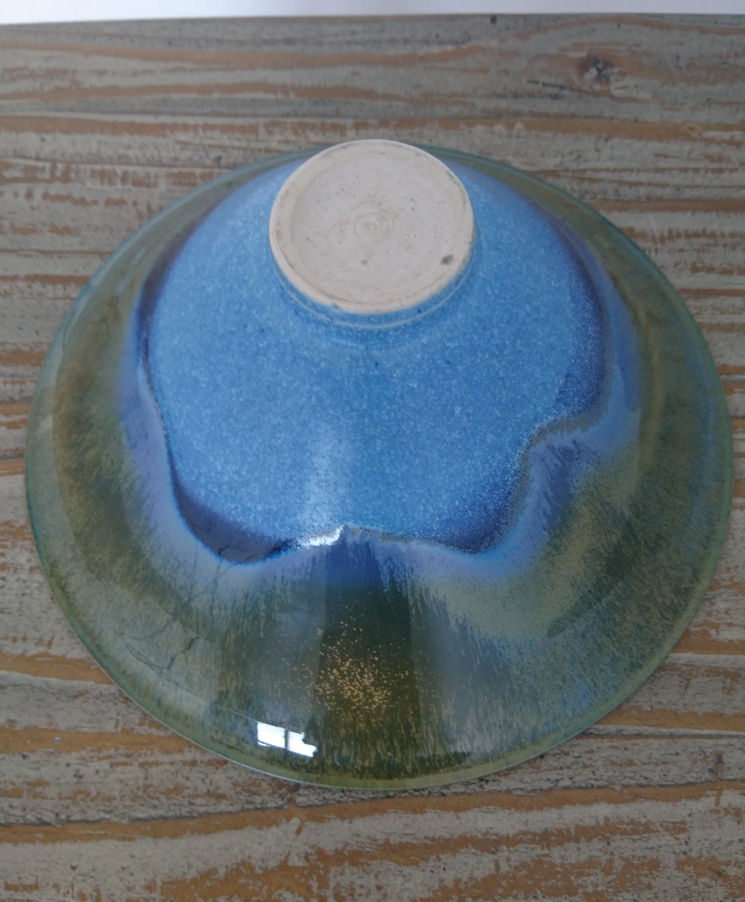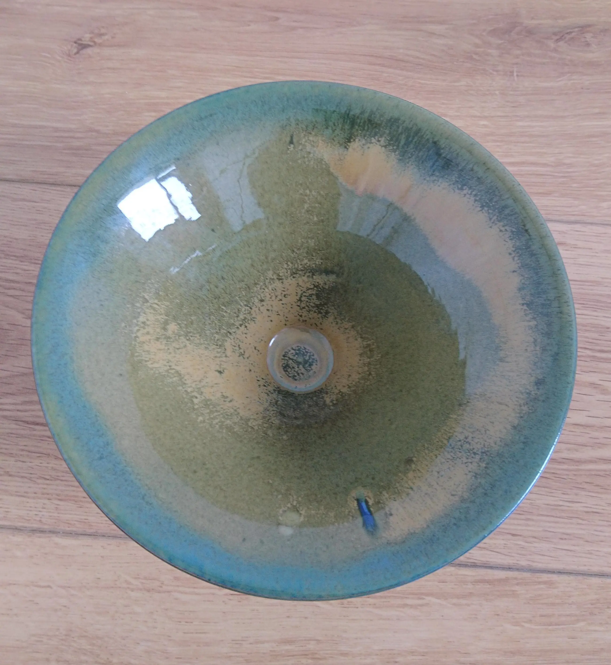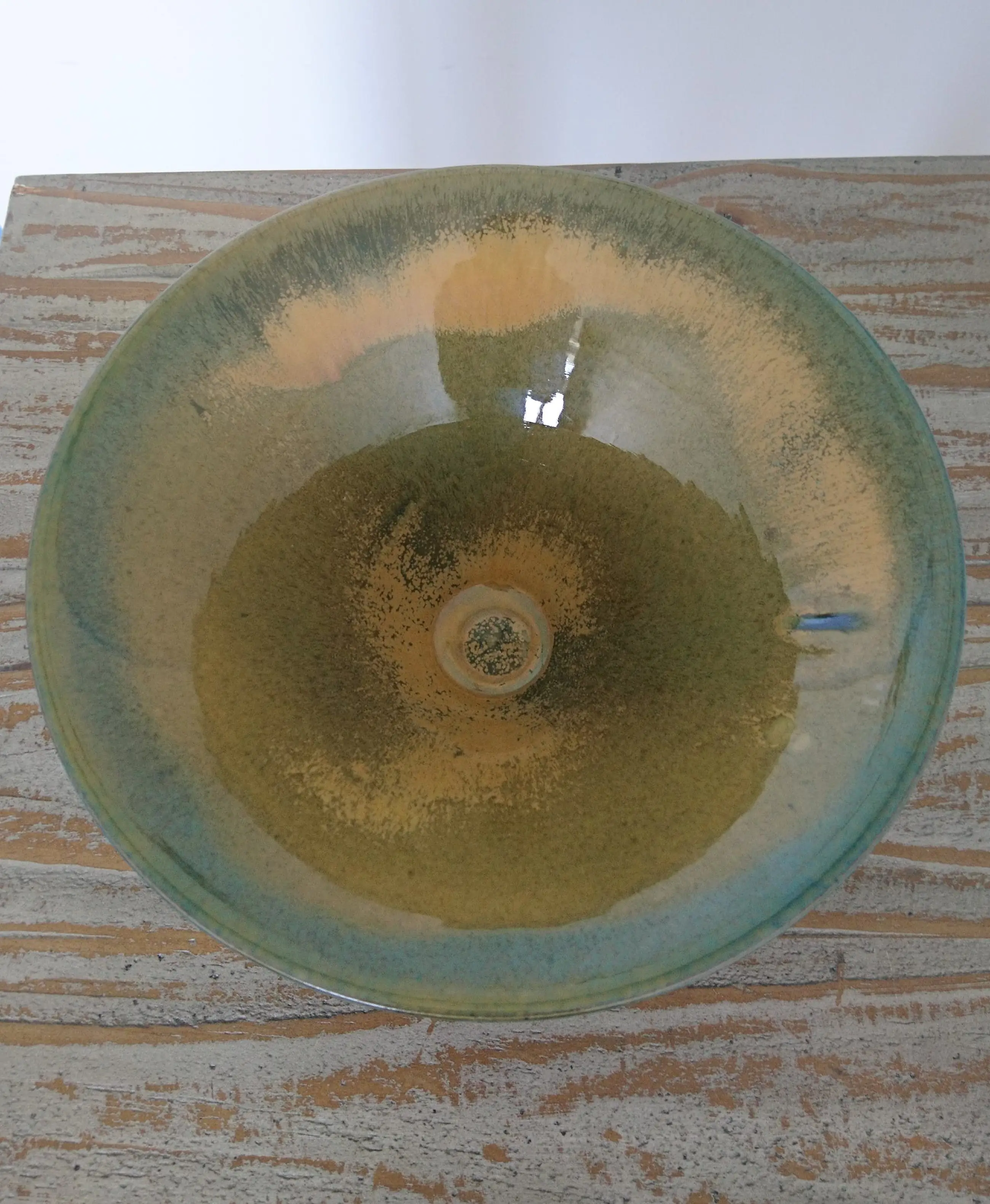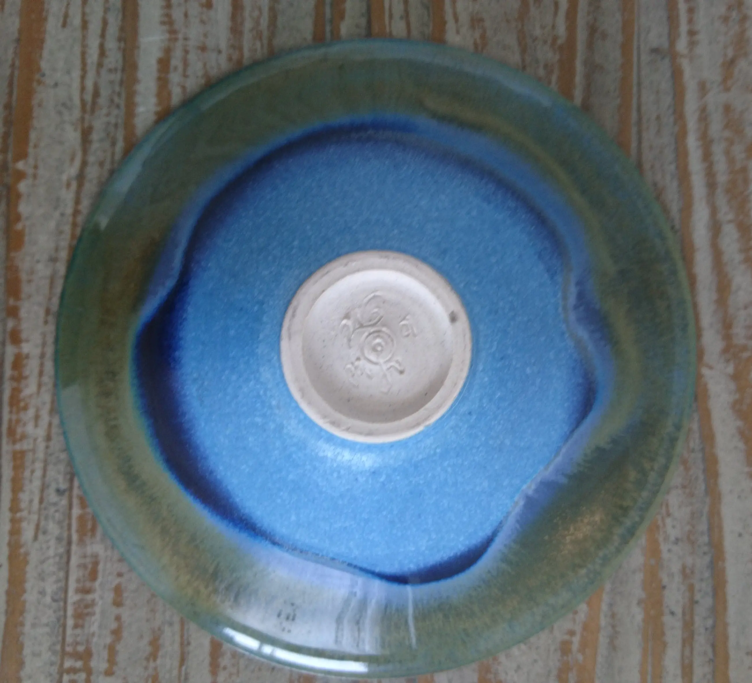 Geglazuurde (steengoed) schaal gemaakt in eigen atelier door Margreet en Otto Zeegers in 1998. In goede staat en voorzien van een signatuur.