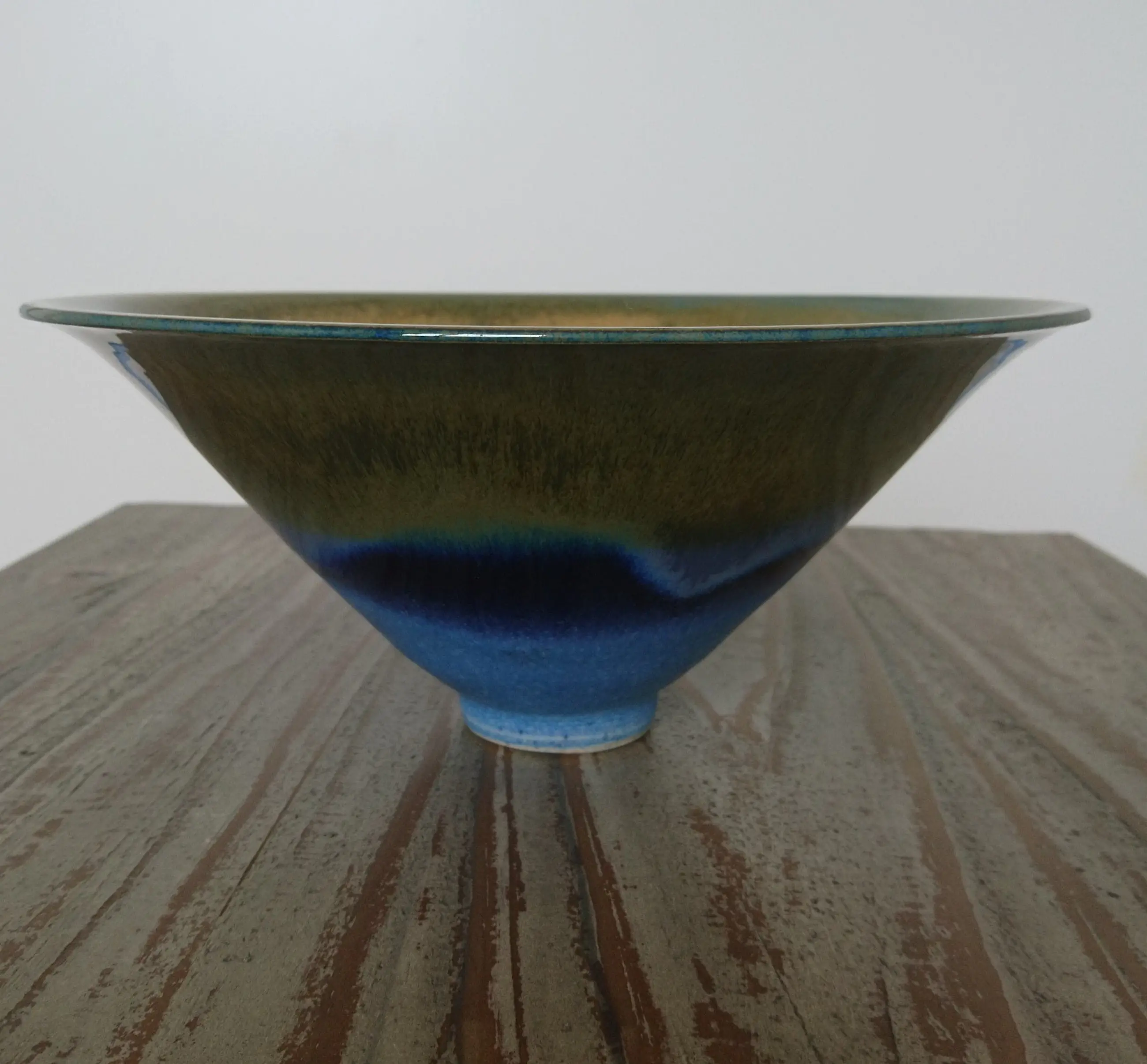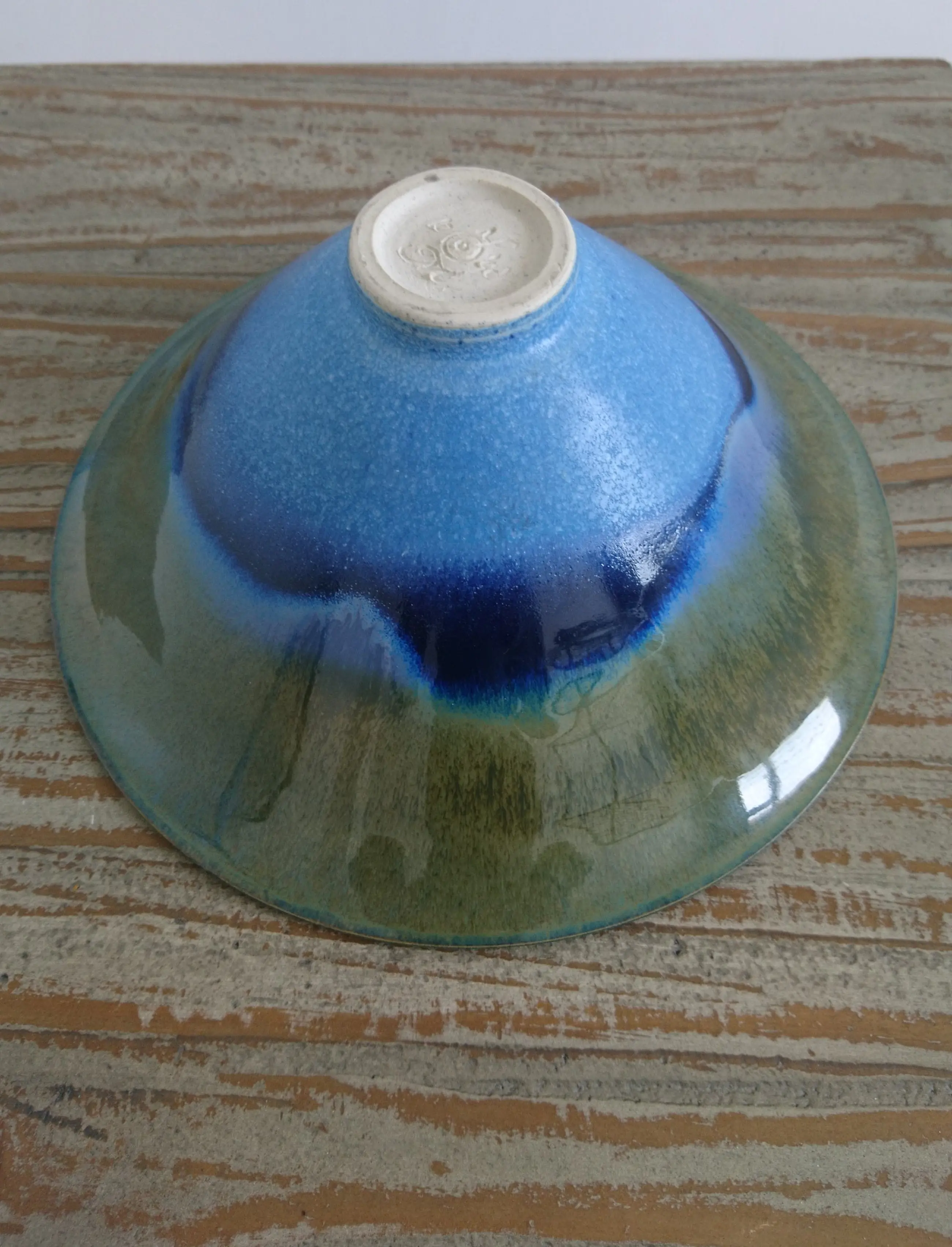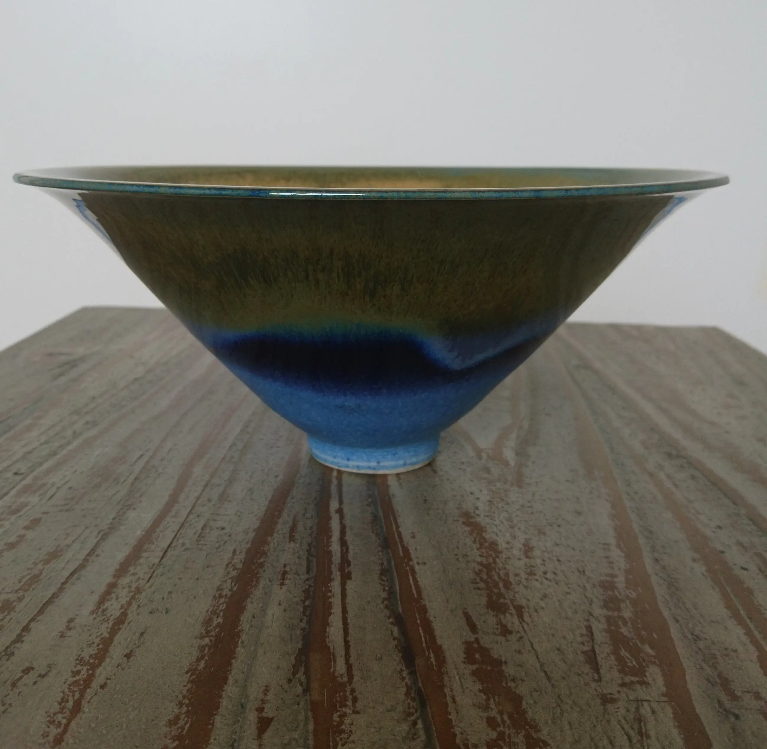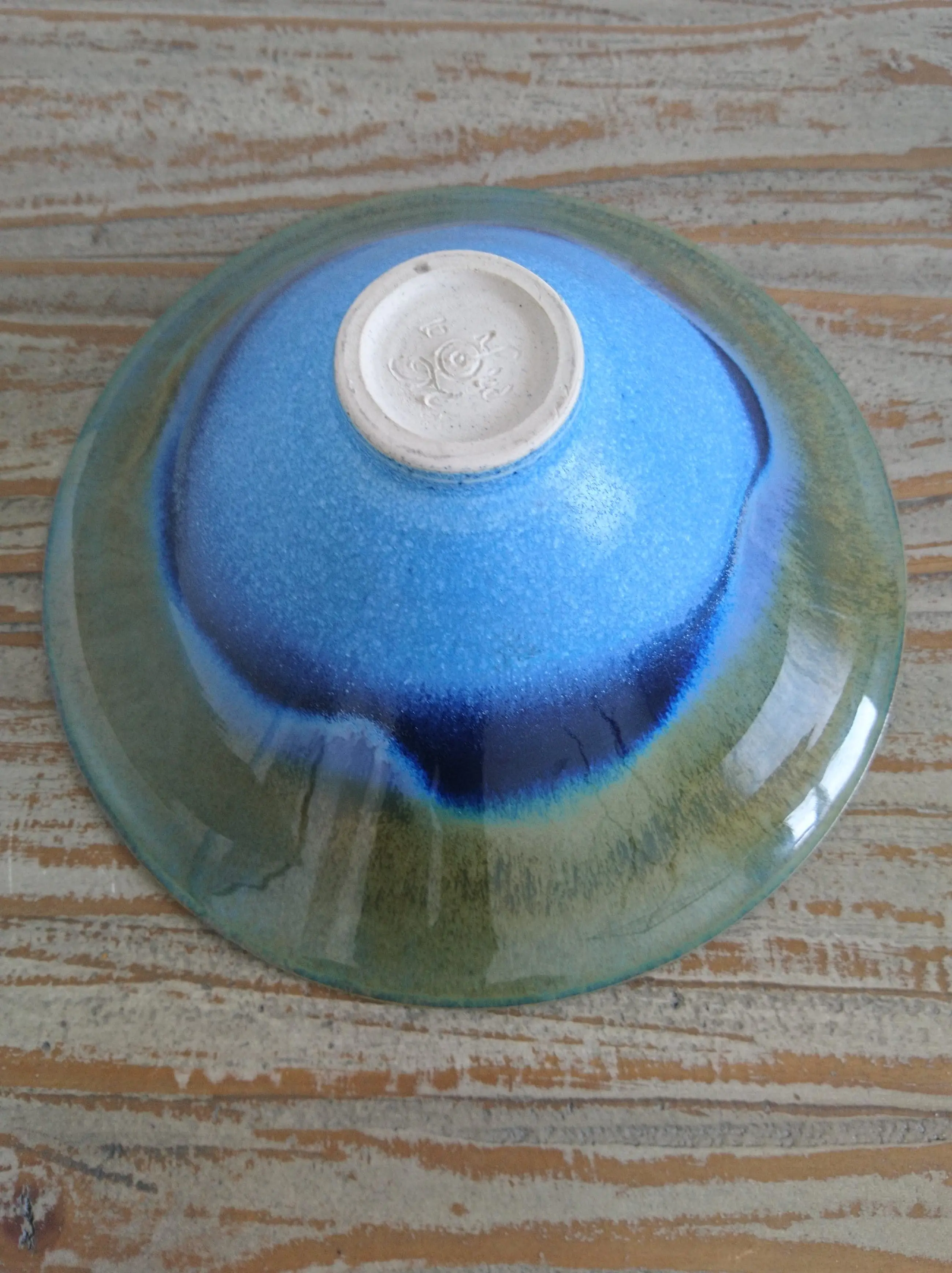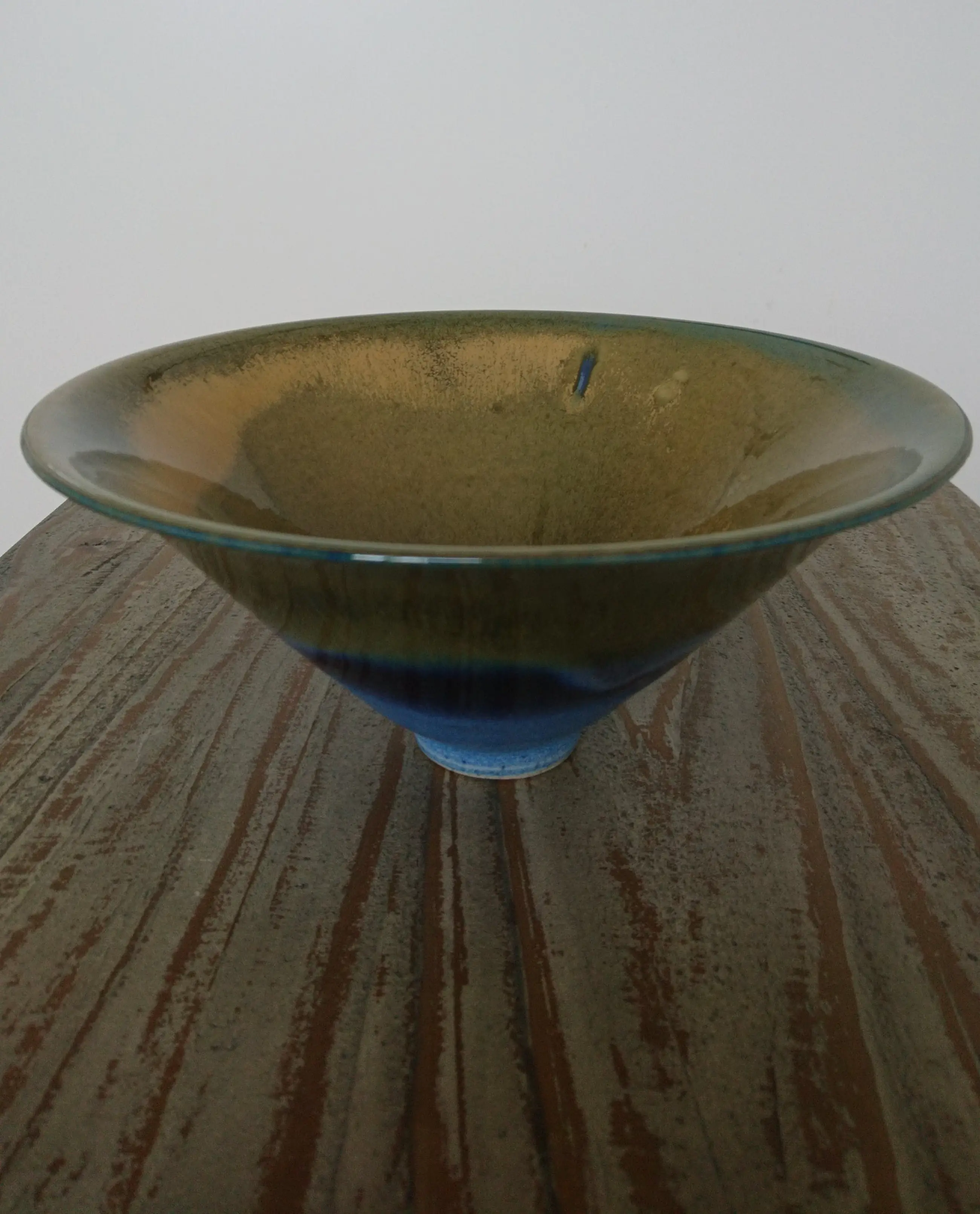 Geglazuurde (steengoed) schaal gemaakt in eigen atelier door Margreet en Otto Zeegers in 1998. In goede staat en voorzien van een signatuur.