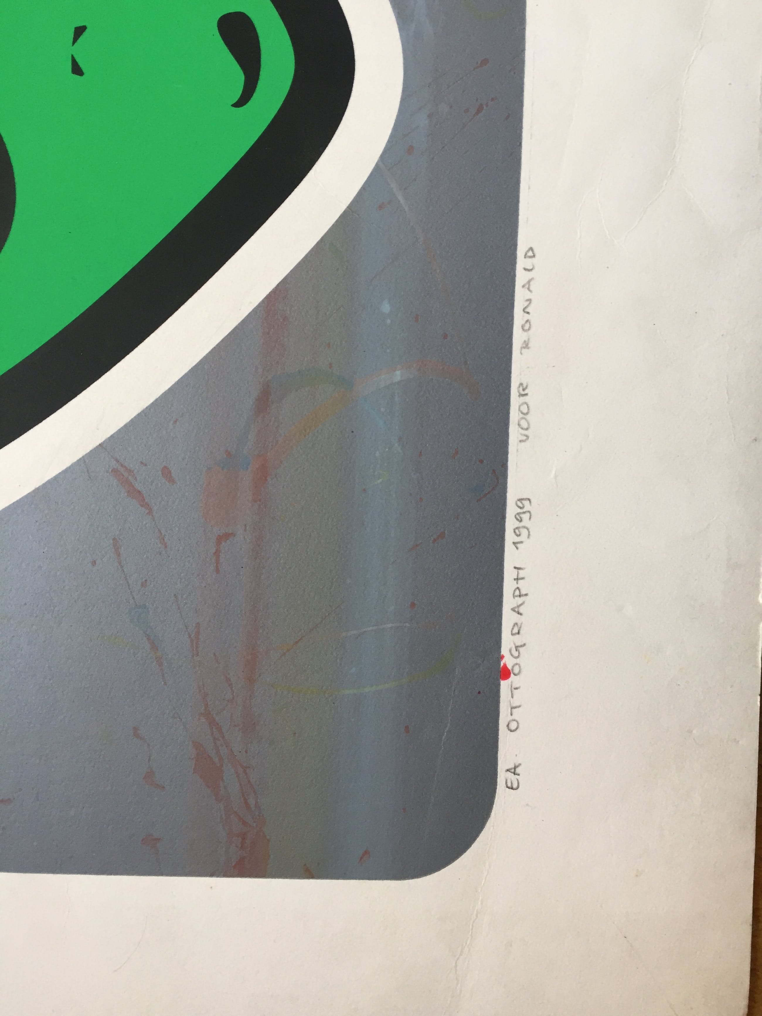 gesigneerd en ondertekend met EA voor Ronald, toentertijd een van de uitgevers van dit werk.