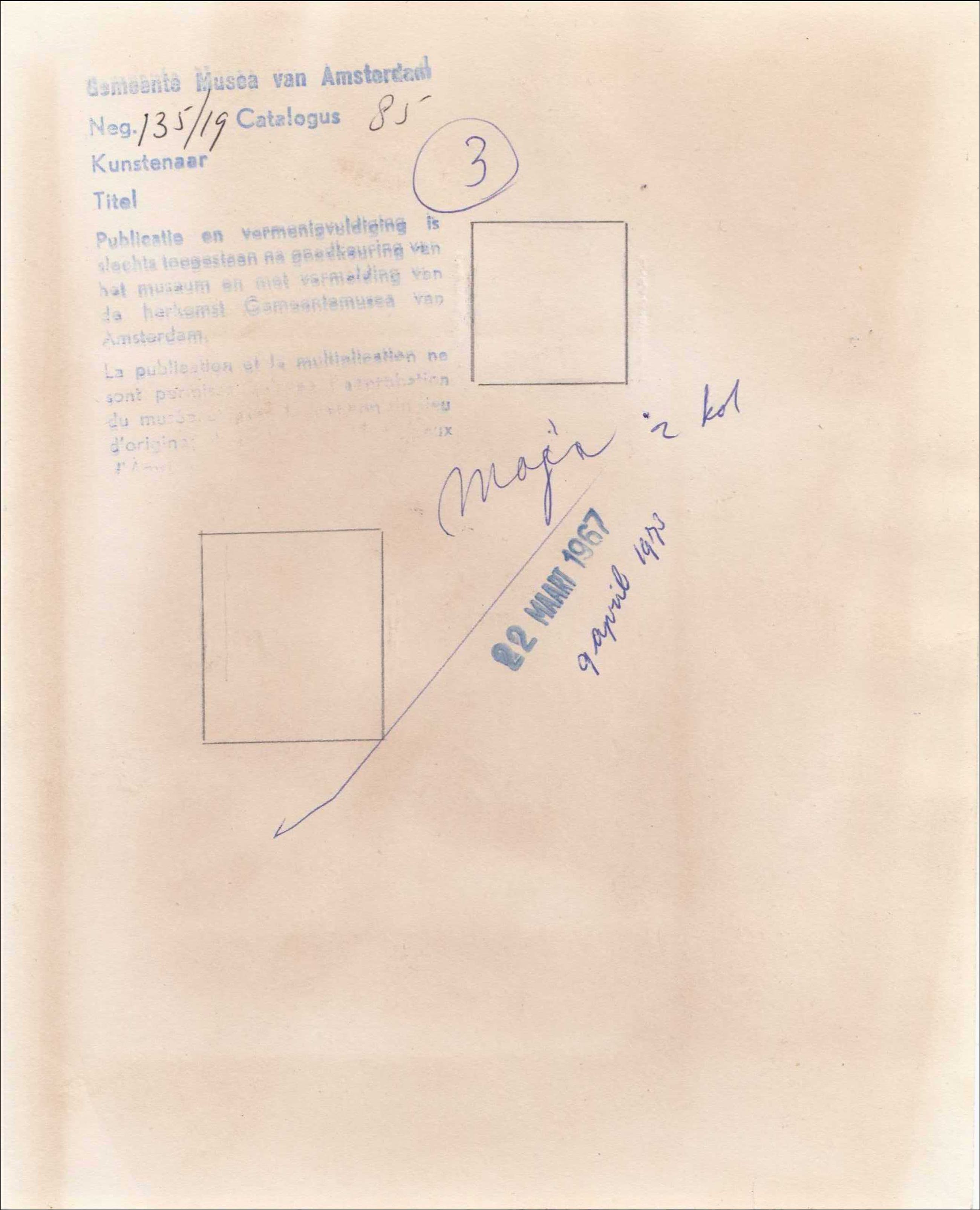 3 x vintage zilvergelatine museum persfoto afdrukken. Herkomst Gemeente Musea Amsterdam (Stempels achterzijde) Jaartal 1967.