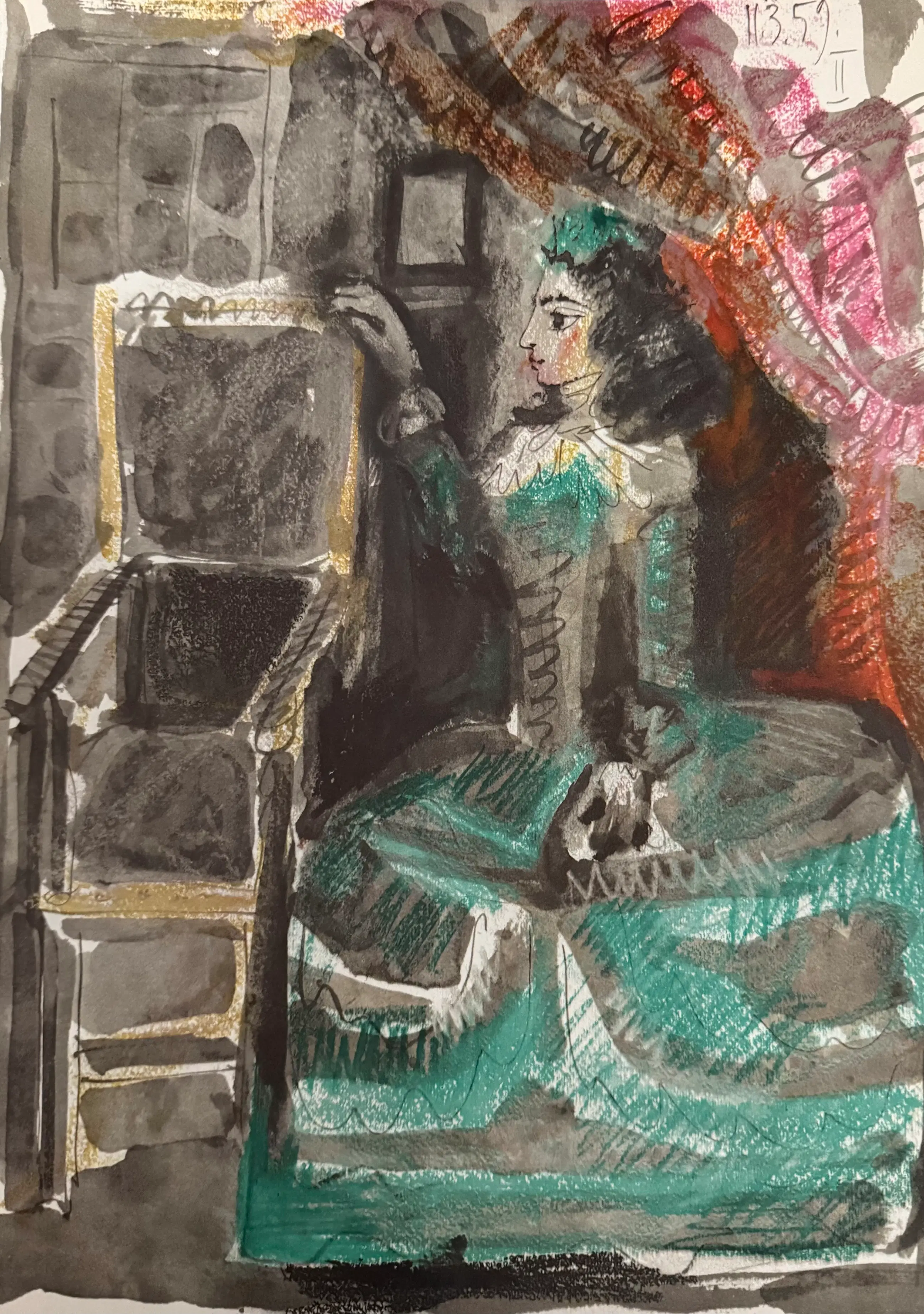 Kleuren lithografie, “Femme assise”. Gedateerd 12-3-1959 en gesigneerd door Picasso in de plaat.