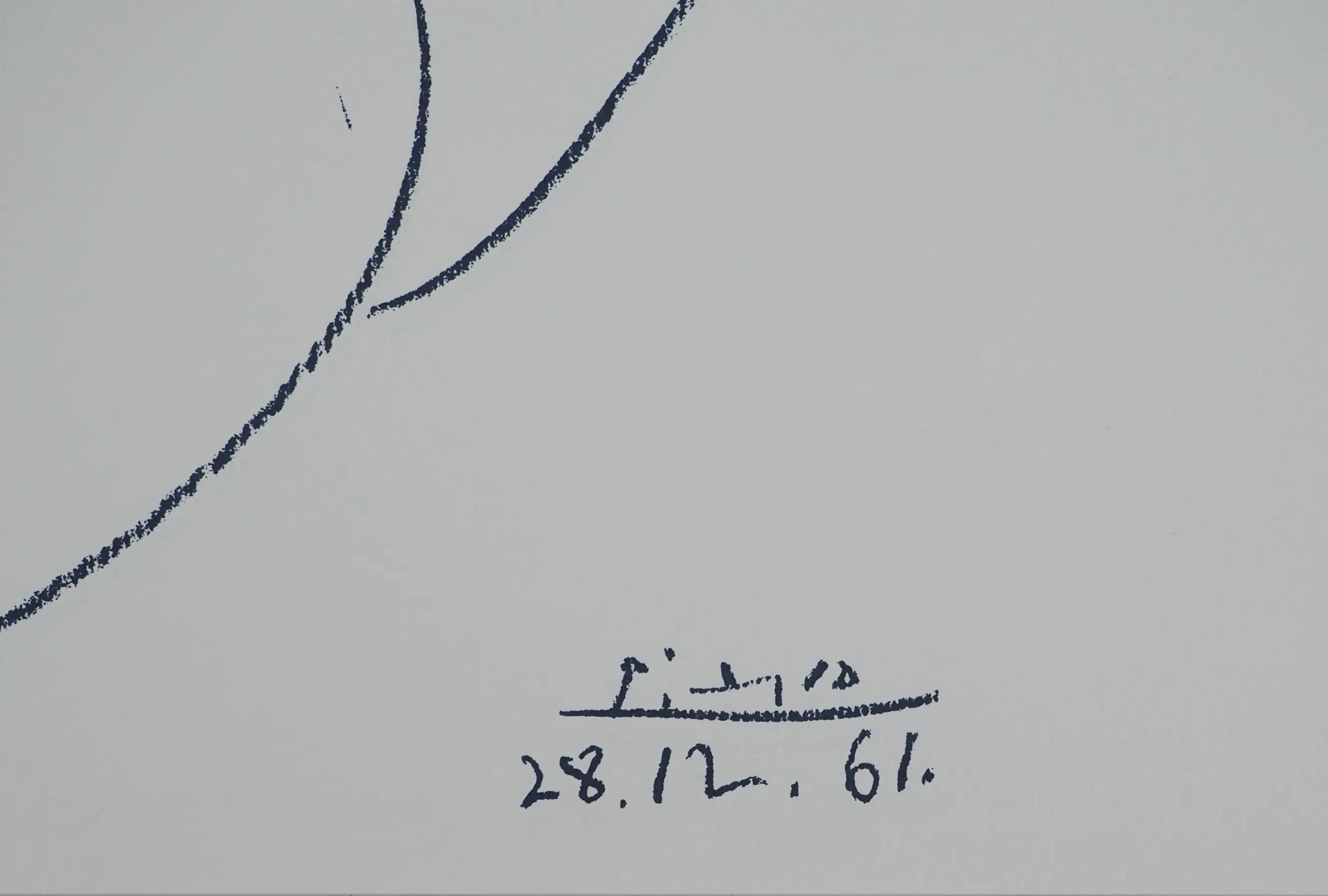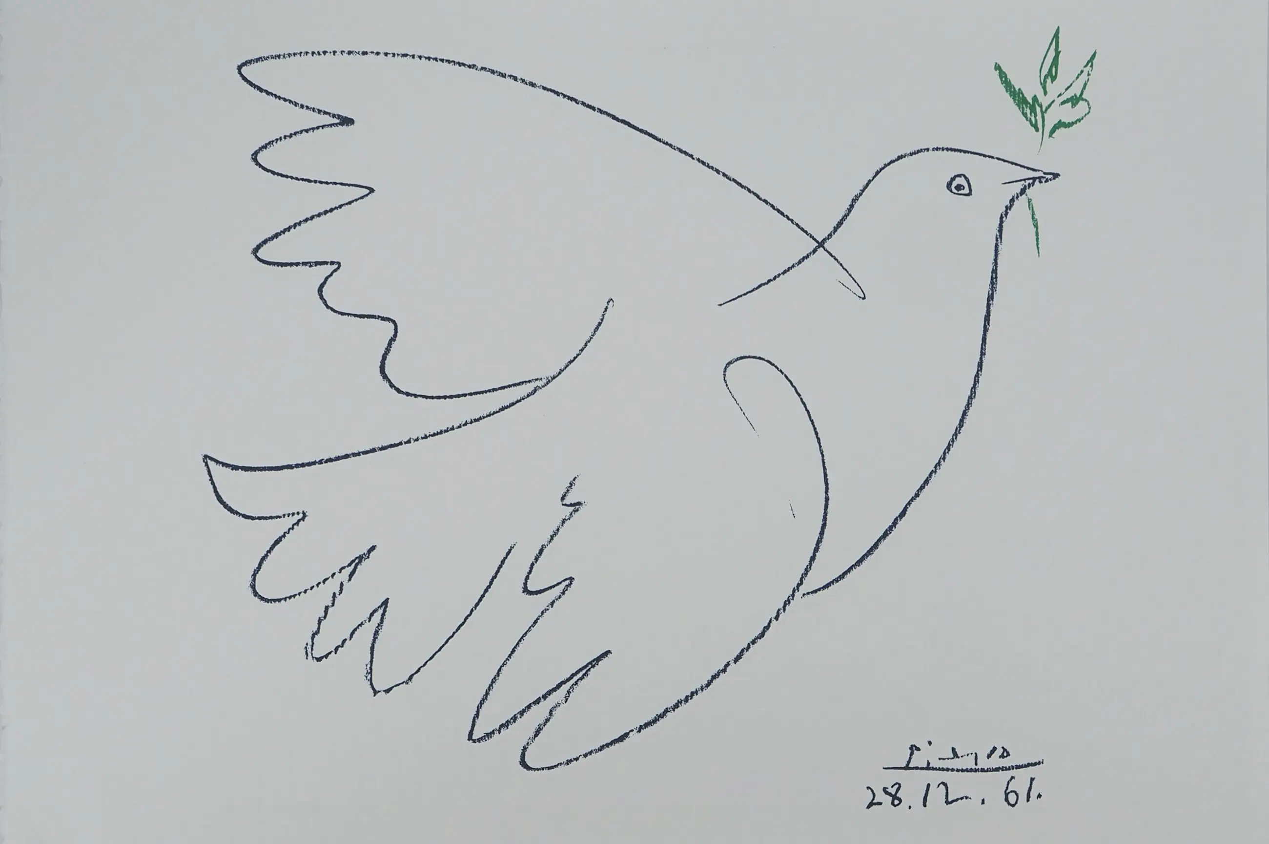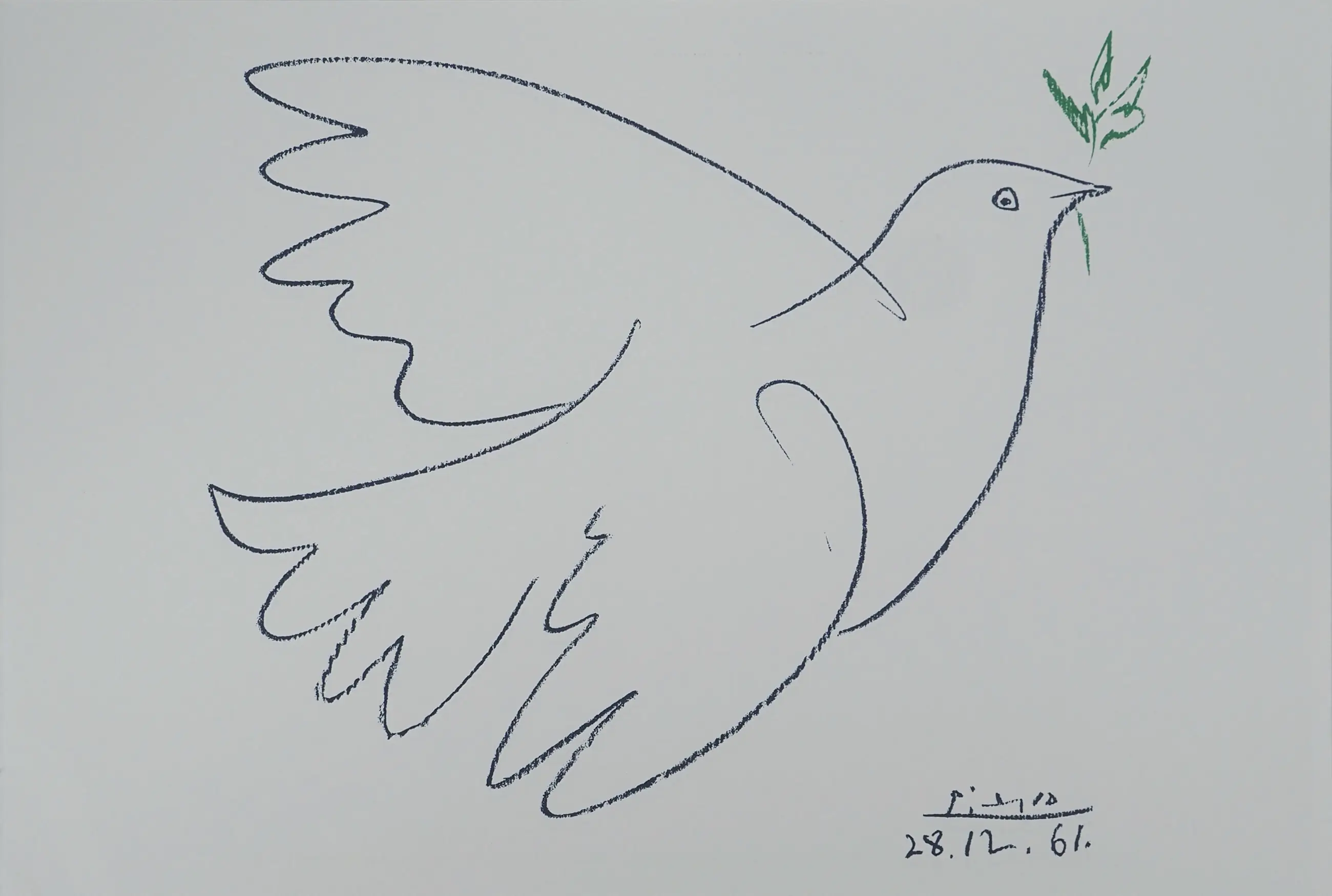 Pablo PICASSO (1881-1973) (na) De blauwe duif Kleurenlithografie Gesigneerd in de plaat Op perkament 37,5 x 55,5 cm Copyright edities Art et Paix / Picasso Estate Uitstekende staat