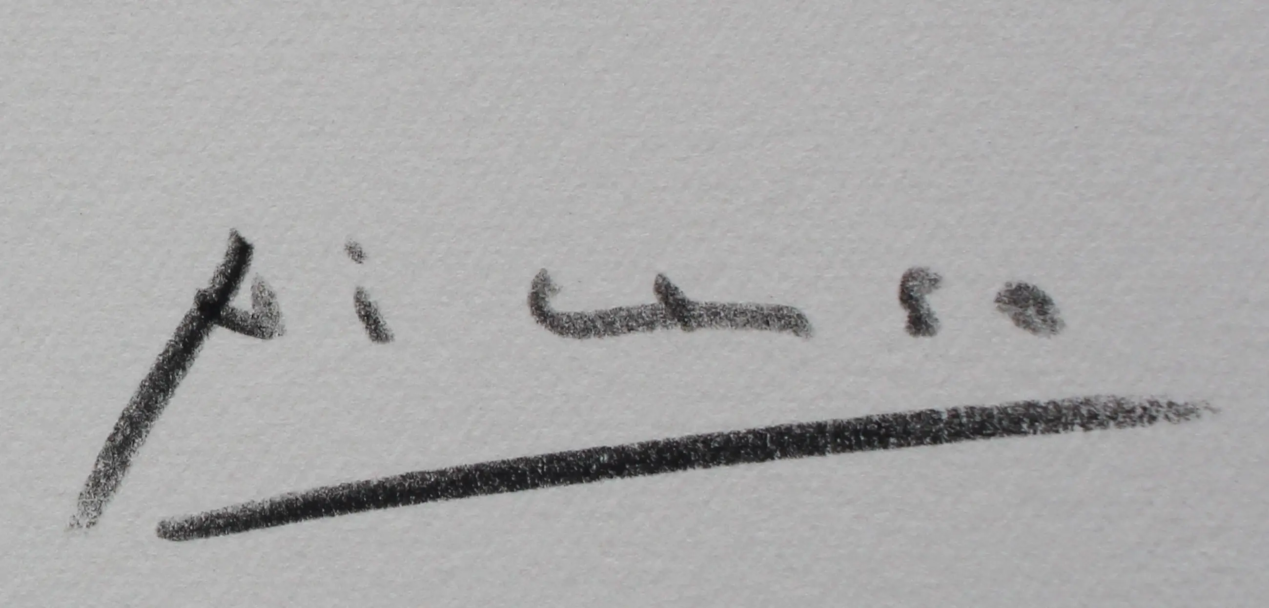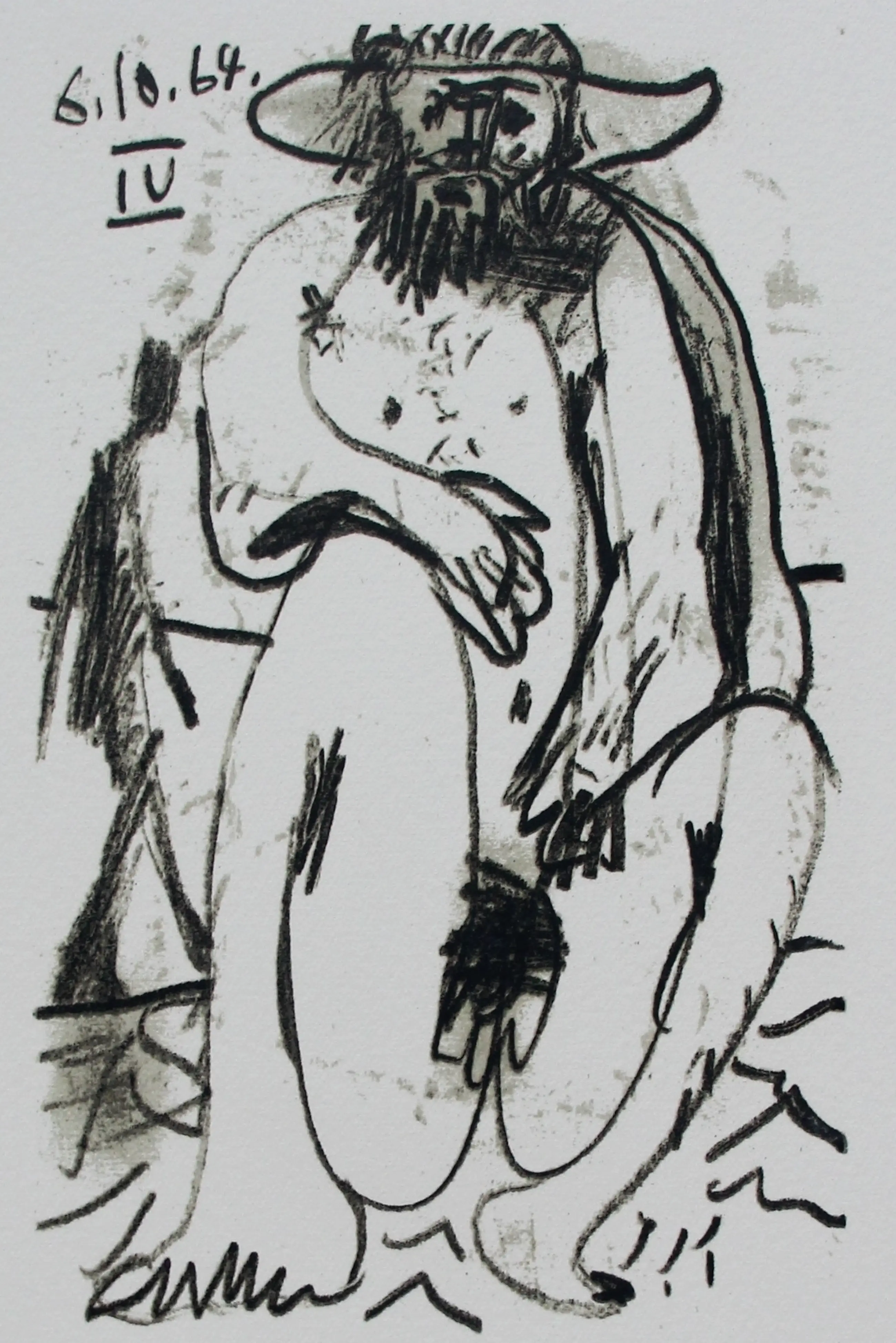 Litho uit " Le Gout du Bonheur" van Pablo Picasso. Picasso heeft de tekeningen voor deze uitgave zelf uitgezocht. De litho is gedrukt op Arches papier. Nummer: 35/105. Uitgegeven door: Carl Schünneman, Bremen. De litho's zijn gemaakt naar aanleiding van tekeningen van Picasso (datum: 8.10.64.)Afmetingen blad: H32.5 x b25 cm. Afmetingen voorstelling: H17 x b11 cm. In de steen gesigneerd. De authenticiteit van het aangeboden werk wordt volledig gegarandeerd. Een certificaat van echtheid kan, op aanvraag, worden gemaild.