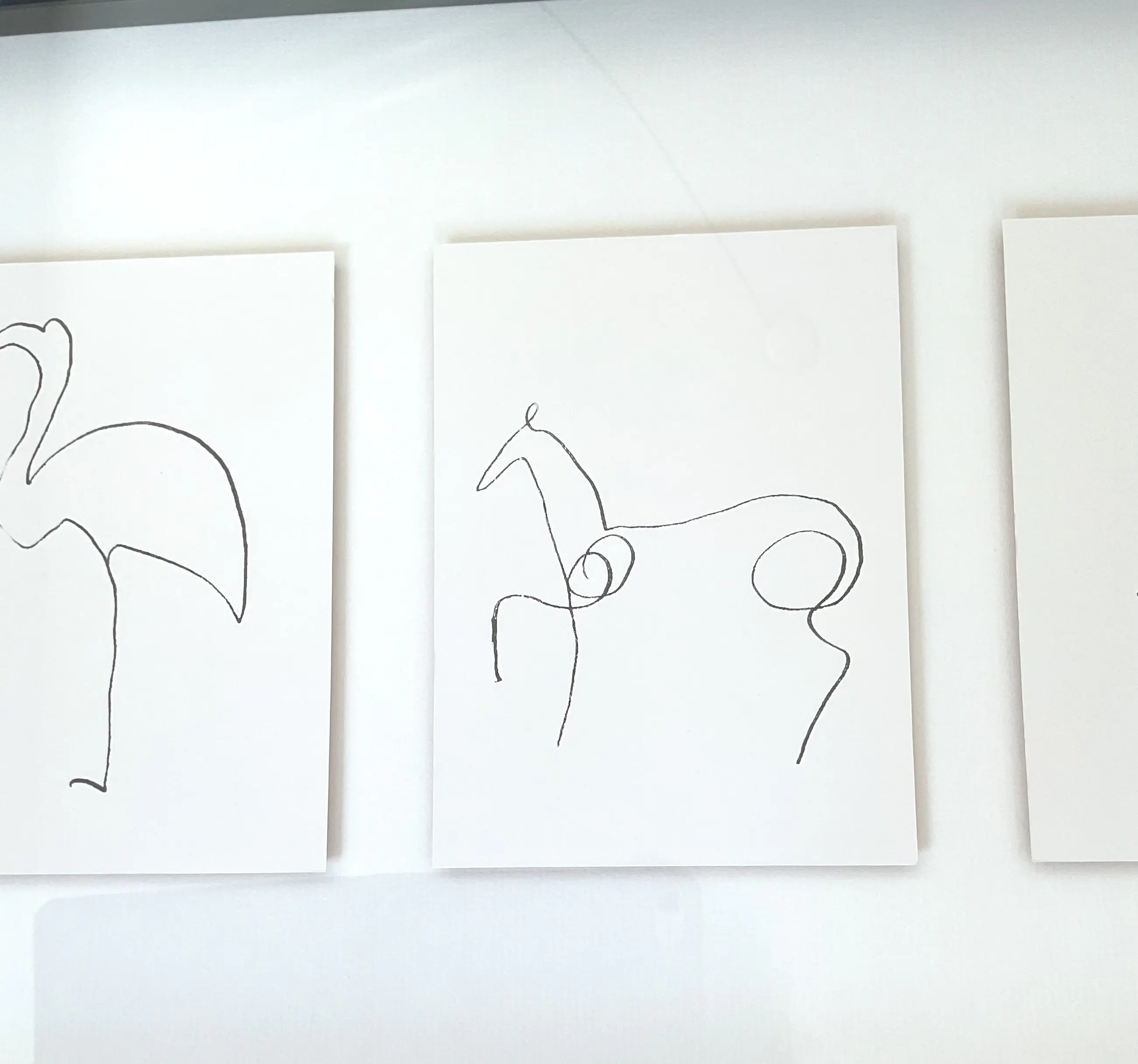 Ingelijste dieren tekeningen Picasso Titel Olunda, vintage IKEA Naar origineel uit 1903 Mooi in verdiepte zwarte lijst gezet Afmetingen 40 x 103 x 3.5 cm (h x b x d) Gesigneerd in de druk De mooie zwarte lijst en de diepte in het stuk geven het stuk echt bijna een prachtig 3D effect. De vijf tekeningen zijn zo eenvoudig, prachtig in hun simpliciteit. Met een paar lijnen maakte hij beelden die eeuwig meegaan. Conditie goed Door glas gefotografeerd Afhalen heeft voorkeur! Verzending /bezorging in overleg