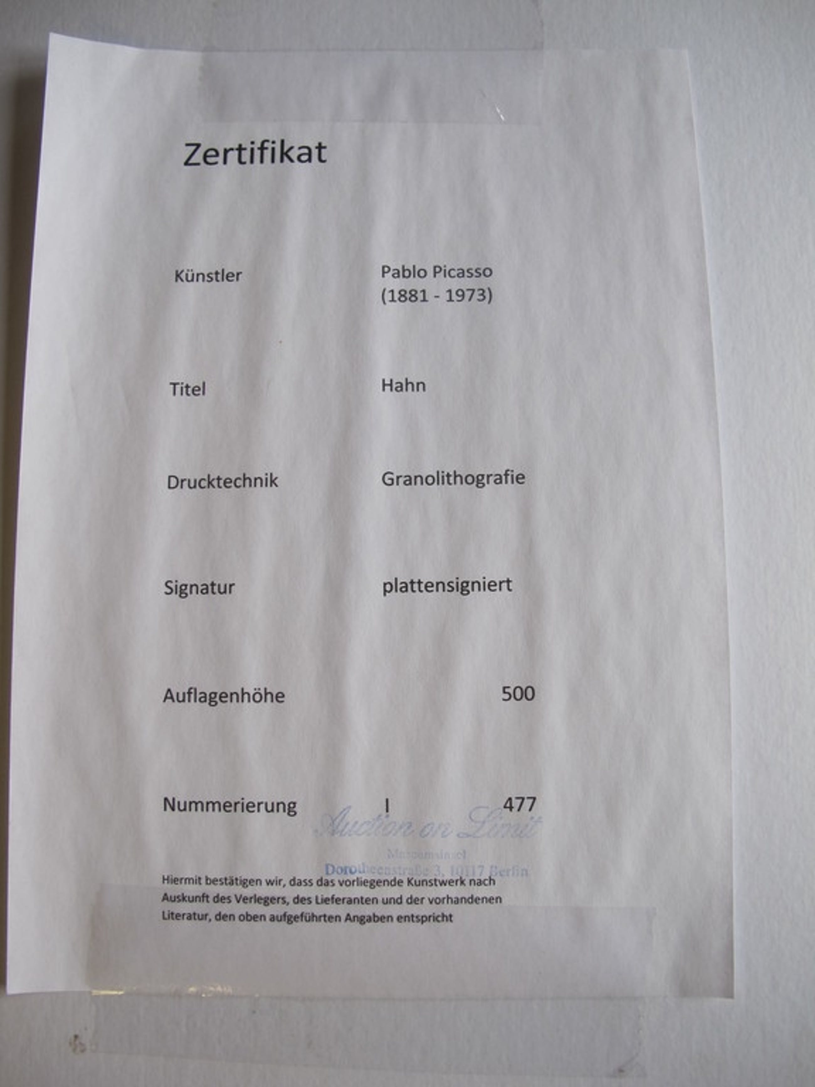 Granolithografie van Pablo Picasso uit een oplage van 500. Dit is nummer 477/500.