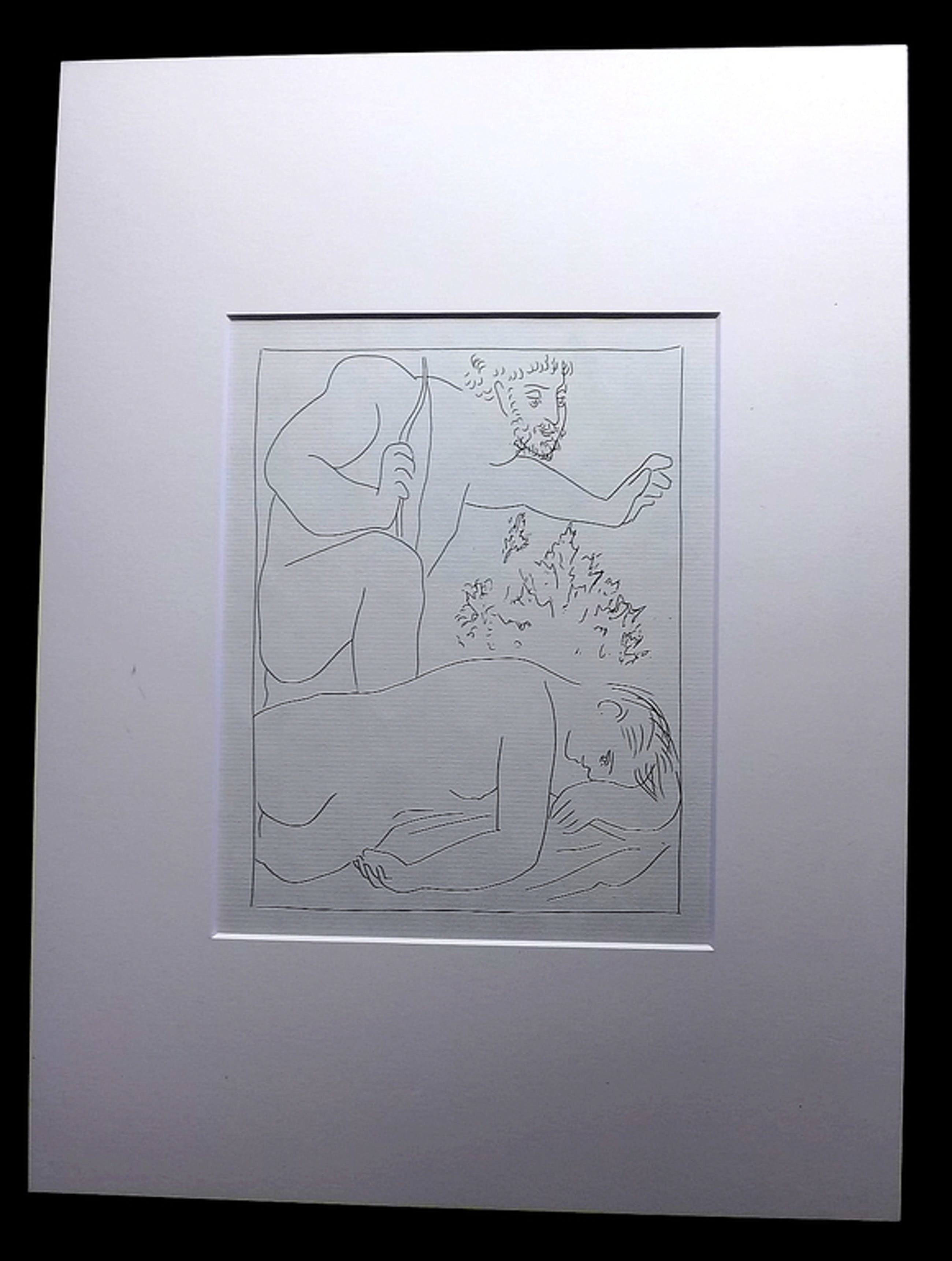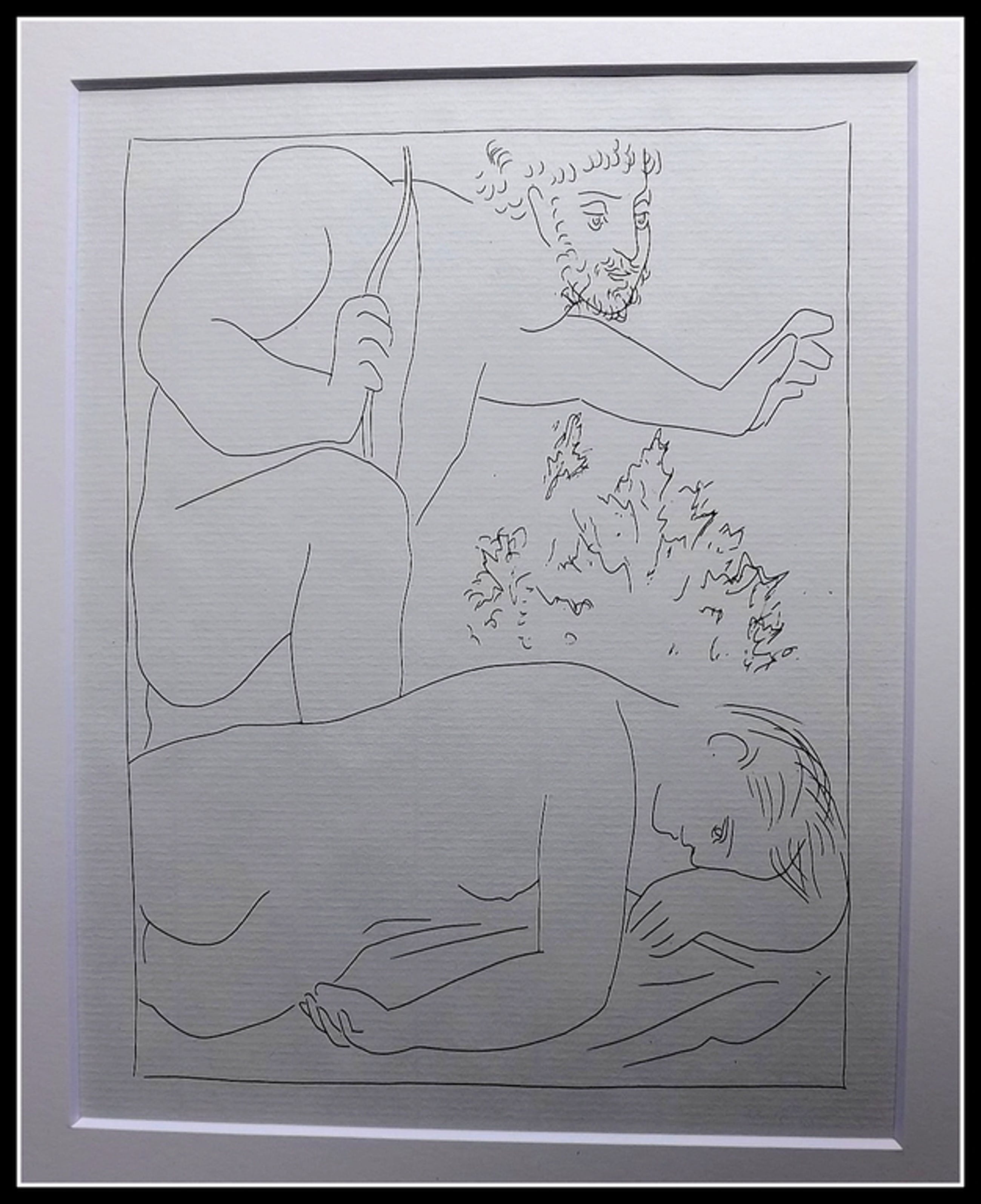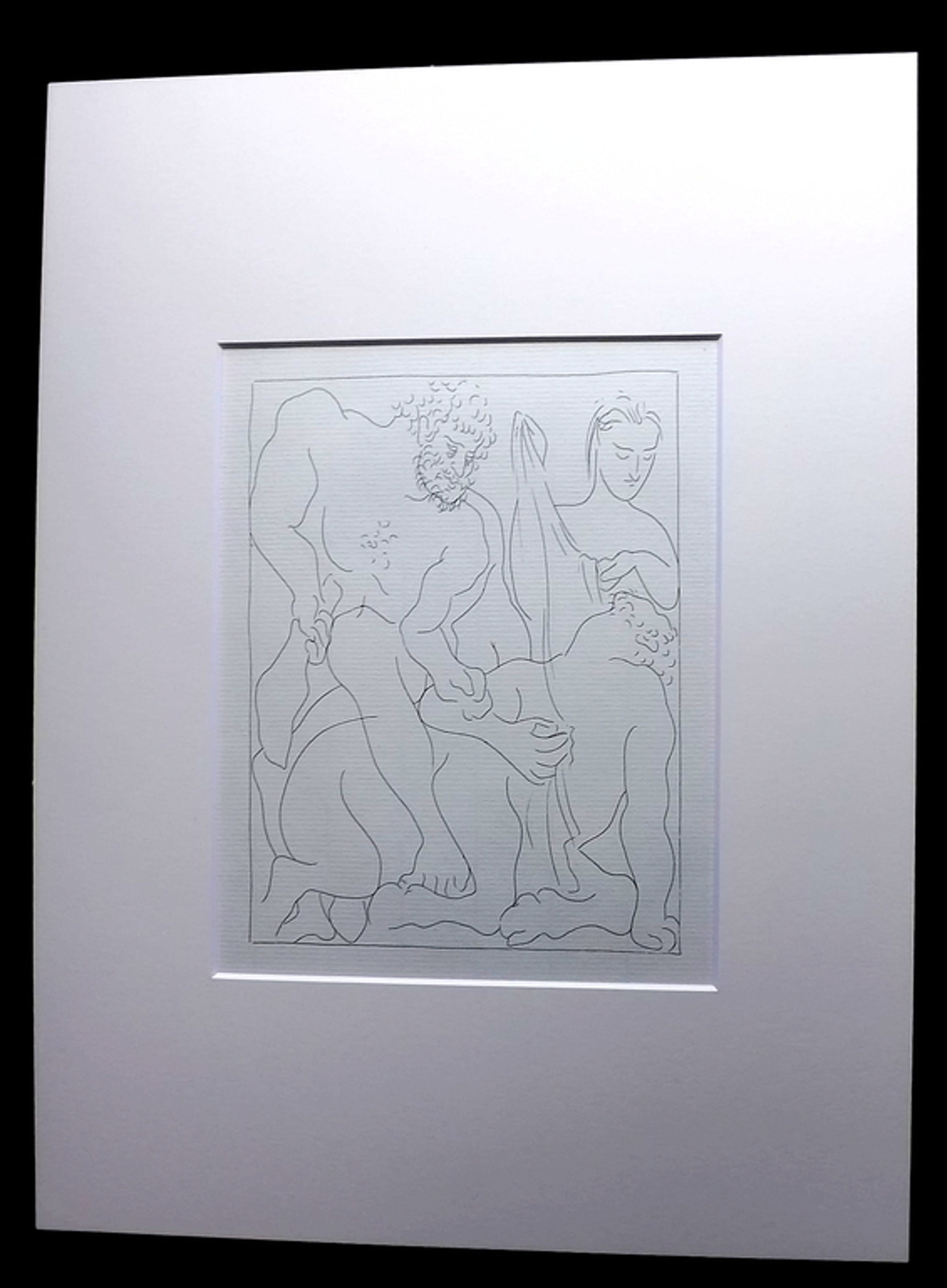 Afgedrukt op "oud" stevig papier 2 afbeeldingen naar de gelijknamige etsen uit Les Metamorphoses - links no 116: Hercule tue le Centaure en rechts no 112 Cephale tue par megarde - betreft een gelimeteerde uitgave van 1200 expl. uit 1971 door Albert Skira.