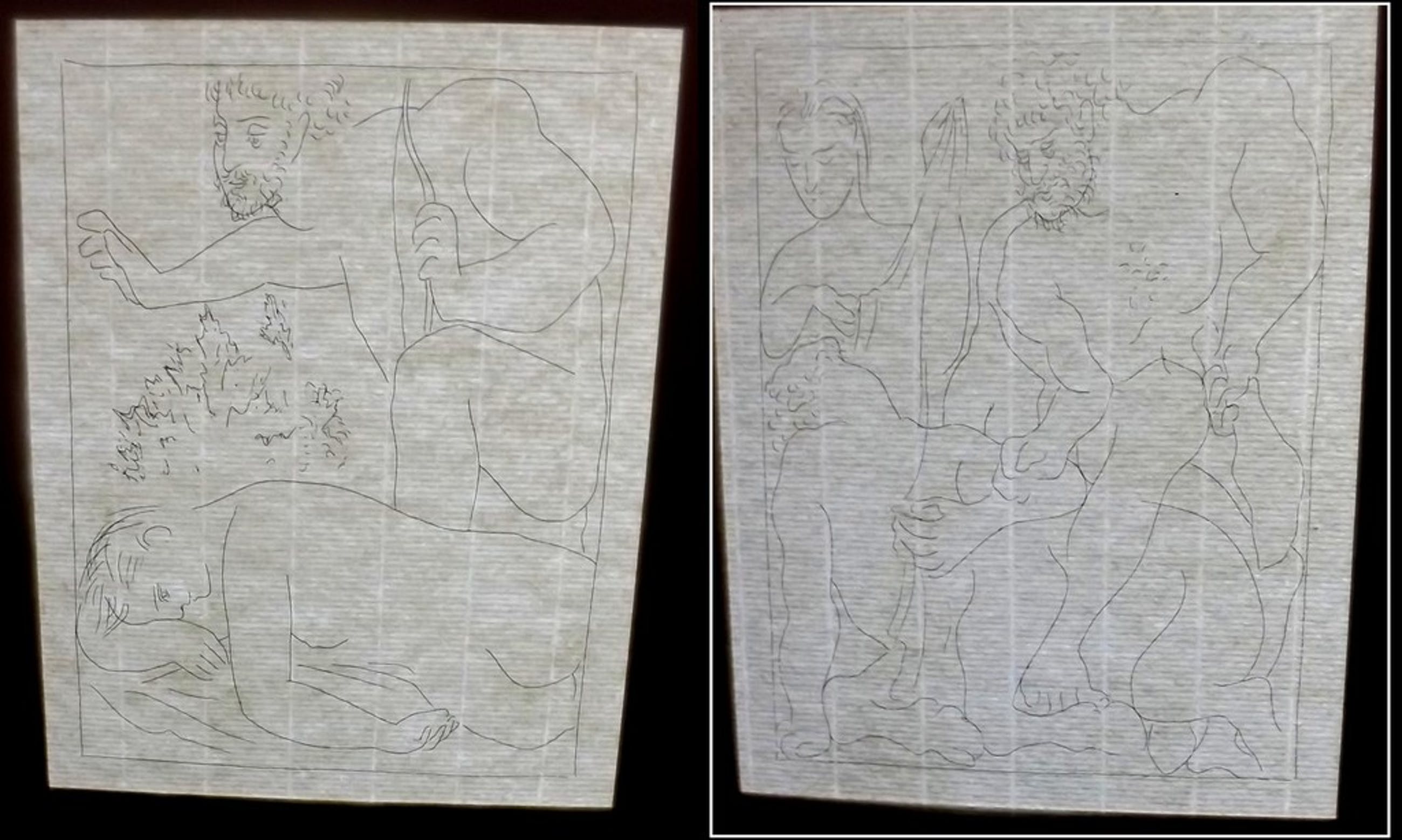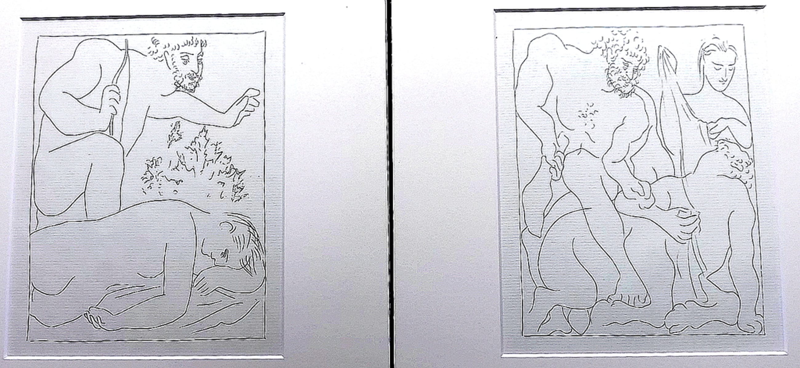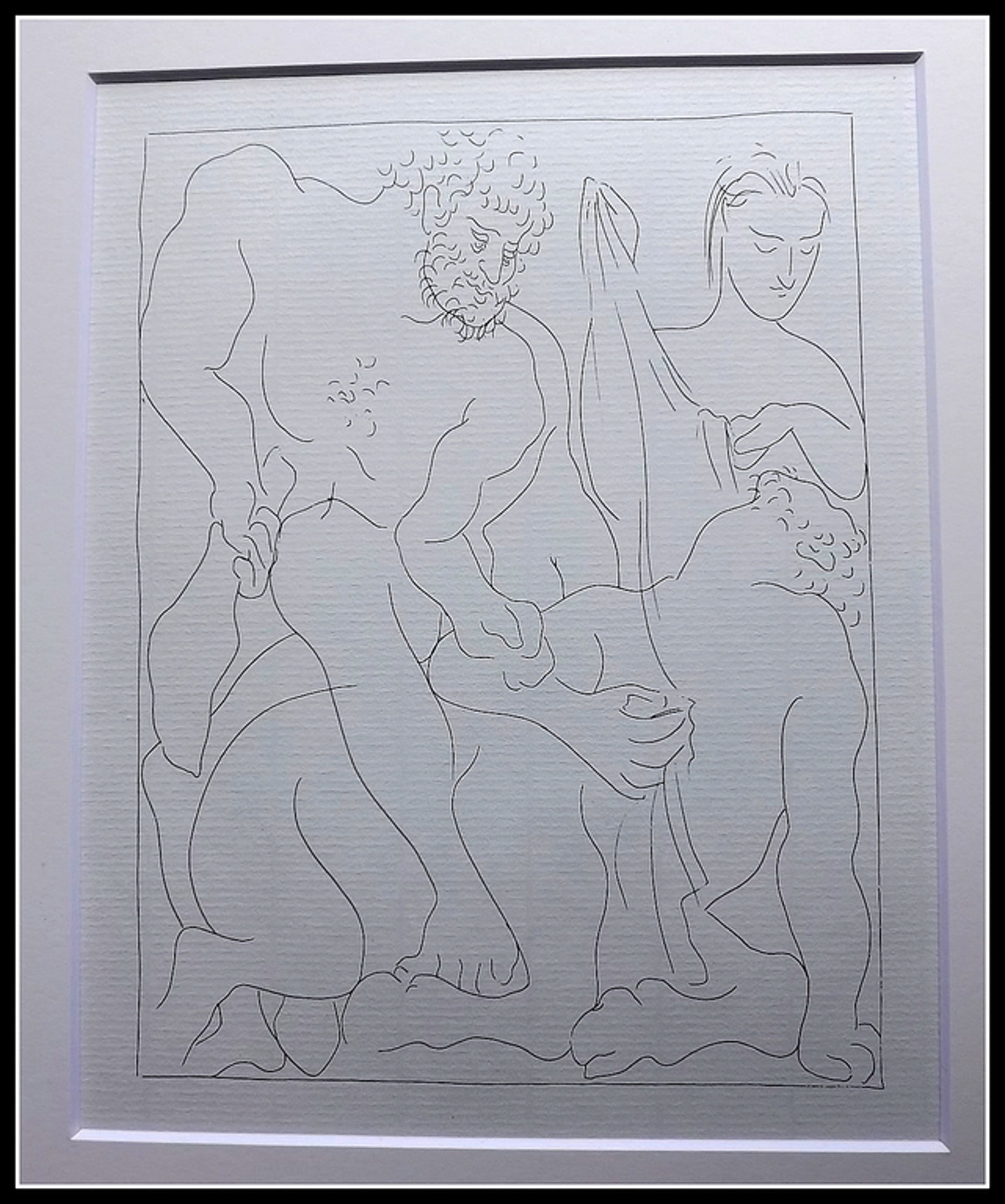 Afgedrukt op "oud" stevig papier 2 afbeeldingen naar de gelijknamige etsen uit Les Metamorphoses - links no 116: Hercule tue le Centaure en rechts no 112 Cephale tue par megarde - betreft een gelimeteerde uitgave van 1200 expl. uit 1971 door Albert Skira.