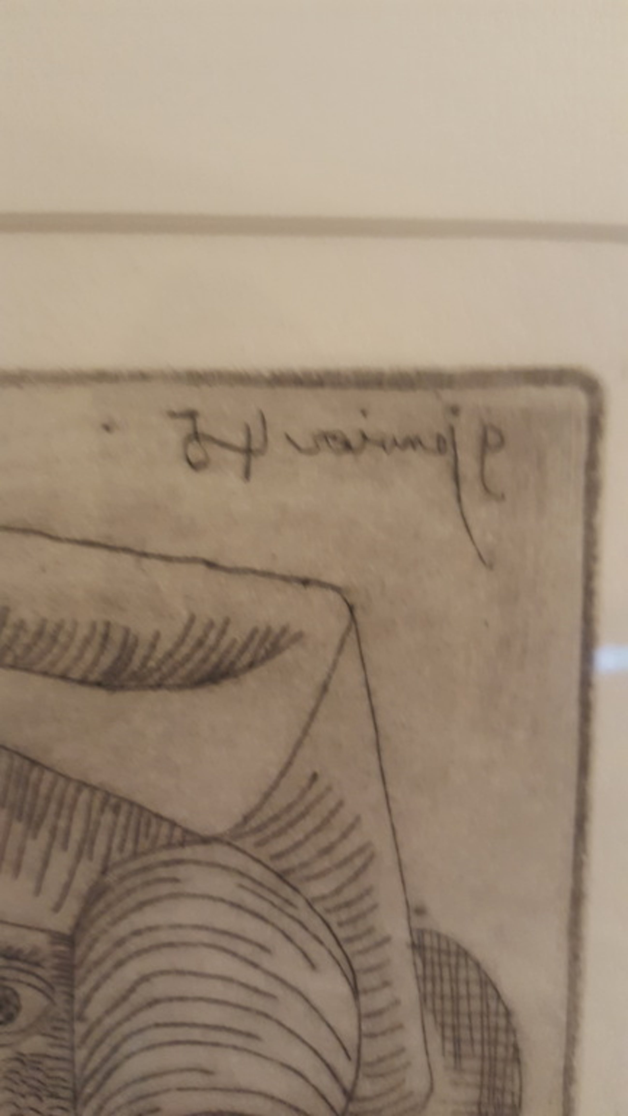 postume herdruk van een ets van Picasso van 1945.gedateerd in spiegelschrift 9 janvier 45