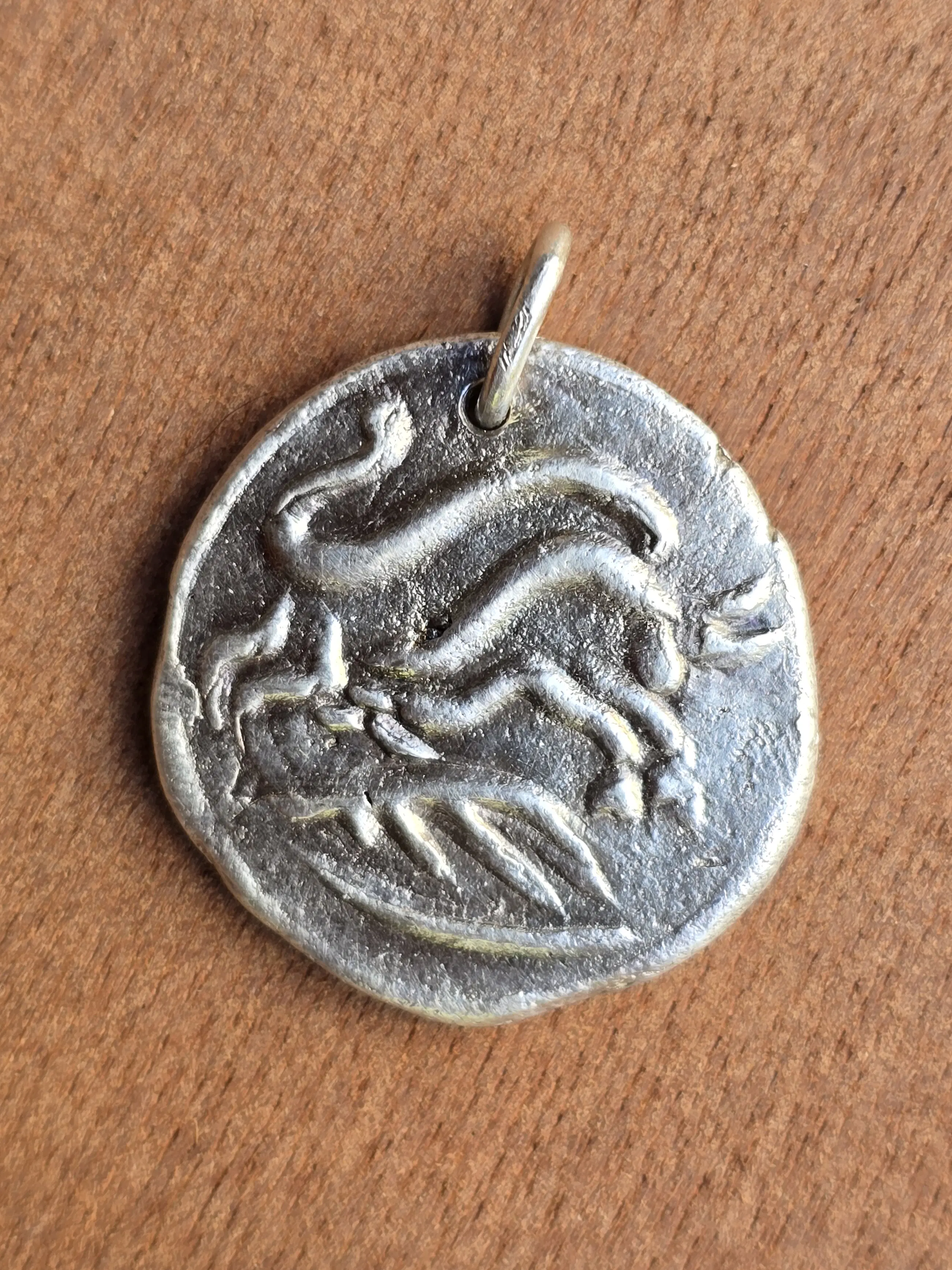 Pablo Picasso - "Taureau attaquant", 1949. Silver medallion, stamped verso "Madoura Empreinte Originale de Picasso".